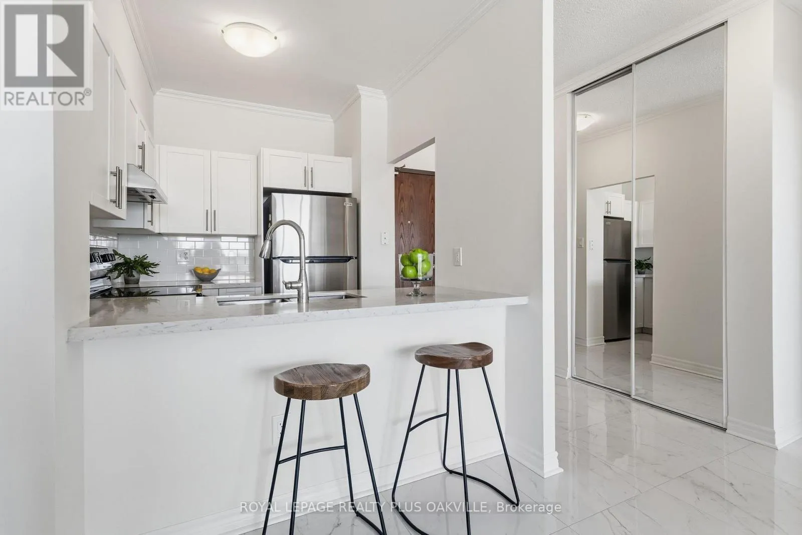 Cross Streets: Lakeshore Rd W & Bronte Rd. ** Directions: West of Bronte Rd, North Side of Lakeshore Rd W. Fabulous Opportunity for carefree condo living in one of Brontes most sought-after locations, Bronte Harbour Club, nestled on the shores of Bronte Creek, with premier 7th floor location within the building and one of most popular unobstructed, panoramic views of Bronte Creek, a natural, tranquil setting where you can enjoy watching paddle boarders and kayaks in the summer, stunning fall colours, and ice skating in the winter right from your own private balcony. Welcoming, bright, fully renovated (2023), plus private balcony, with 2 Beds and 2 Full Baths, 1 Owned Underground Parking (P2-140) and 1 Owned Locker (P2 #86). Features include 9 Ft Ceilings, Living & dining room floor to ceilings windows, 2 balcony walk-outs: from Living / Dining & Primary Bedroom. Hardwood floors, elegant white Kitchen with quartz counters, breakfast bar, and backsplash. Primary Bed with walk-out to private balcony, walk-in closet and 4 Pc Ensuite Bath with vanity. 2nd Bed with views of the Bronte of Creek and trees. Main 3 Pc Bath with walk-in shower. Spacious foyer with large entry closet and convenient spacious walk-in Laundry / Storage room. Enjoy a wonderful community, with the conveniences of all amenities 24/7 concierge/security, smoke-free building, indoor pool/hot tub, sauna, exercise room, games room, woodworking rm, party rm, guest suite, huge outdoor terrace to relax or entertain in stunning setting. Enjoy a carefree lifestyle steps from the shores of Lake Ontario, watch boats at Bronte Marina, enjoy shops, cafes, restaurants from casual pubs, tapas & wine bars to fine dining. Close to transit, GO & QEW. (id:27476)