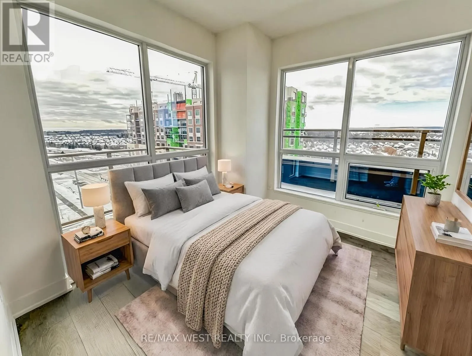 Bronte Road & Khalsa Gate We're excited to present this stunning penthouse at Nuvo Condos. This desirable corner unit offers 2 bedrooms, 2 bathrooms, and a spacious open-concept living area with high ceilings, abundant natural light, and beautiful lake views. Enjoy outdoor living with a private balcony and terrace. Situated on 4.5 acres of resort-style amenities, residents have access to an outdoor putting green, rooftop lounge with pool and spa, pickleball court, multi-purpose court, fully equipped gym with Peloton bikes, pet wash station, and more. Ideally located near excellent parks and dining options, this home offers the best of Oakville living.Stainless steel fridge, stove, dishwasher, microwave, roller shades, washer and dryer.** Virtually staged ** (id:27476)