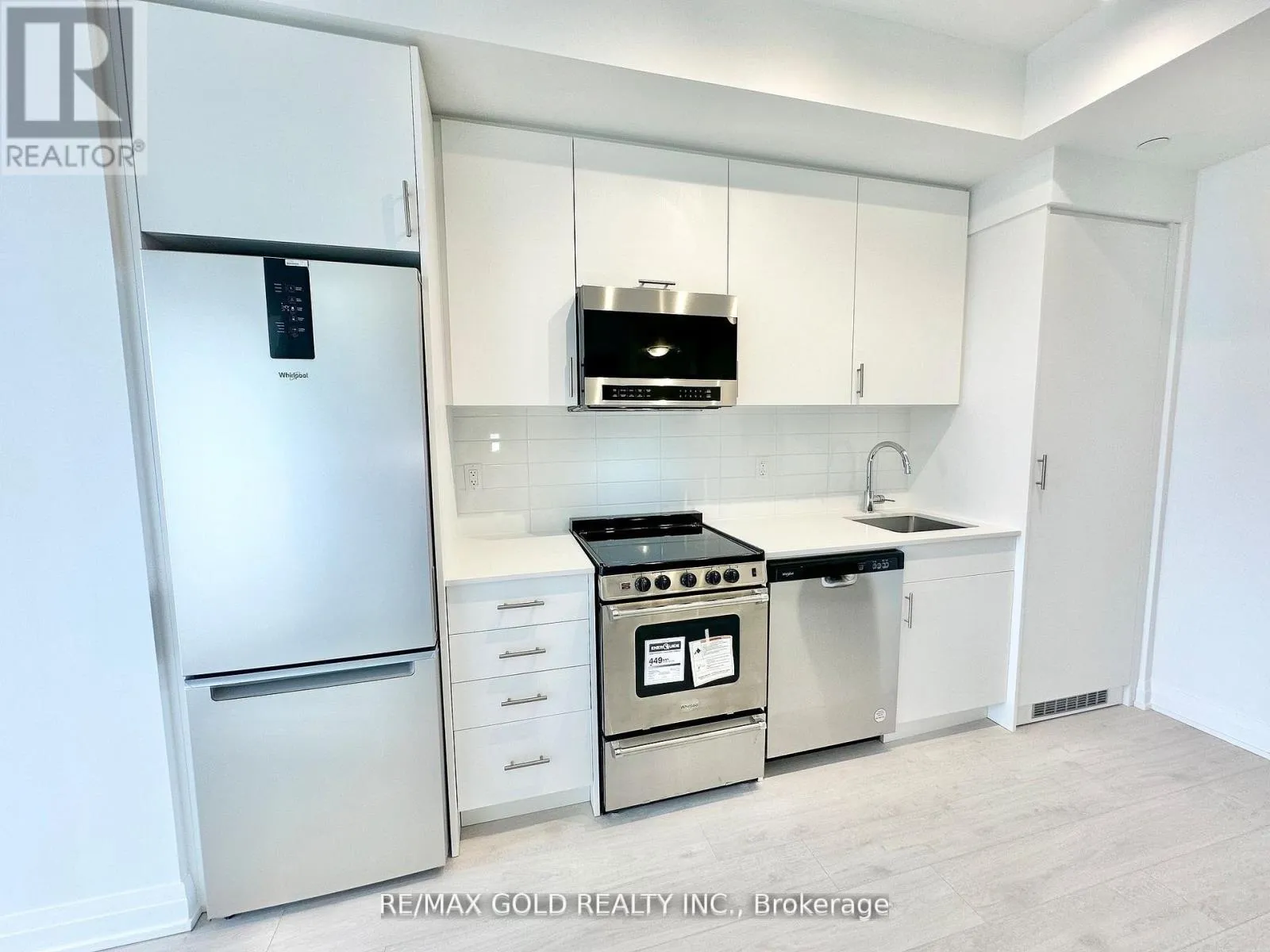 Dundas/Postridge *See 3D Tour* Brand-New Luxury Condo Less Than 1 Yr Old Awaits You! Perfectly Located With Groceries, Shopping Plazas, Restaurants, Parks Within Walking Distance And Public Transit At Your Doorstep, This Stunning Unit Boasts Unobstructed Views, High-End Laminate Flooring Throughout, And A Practical Layout With 9 Ft Smooth Ceilings. The Modern Kitchen Features Extended Tall Cabinets, Quartz Countertops, Stainless Steel Appliances, And A Sleek Subway Tile Backsplash. Enjoy Floor-To-Ceiling Windows Filled With Natural Light And A Step-Out Balcony From The Living Room. The Barrier-Free Design Includes Extra-Wide Doors For Accessibility. Building Amenities Include A Rooftop Patio And Party Room. One Parking Spot And One Locker Are Included. Don't Miss This Gem! (id:27476)