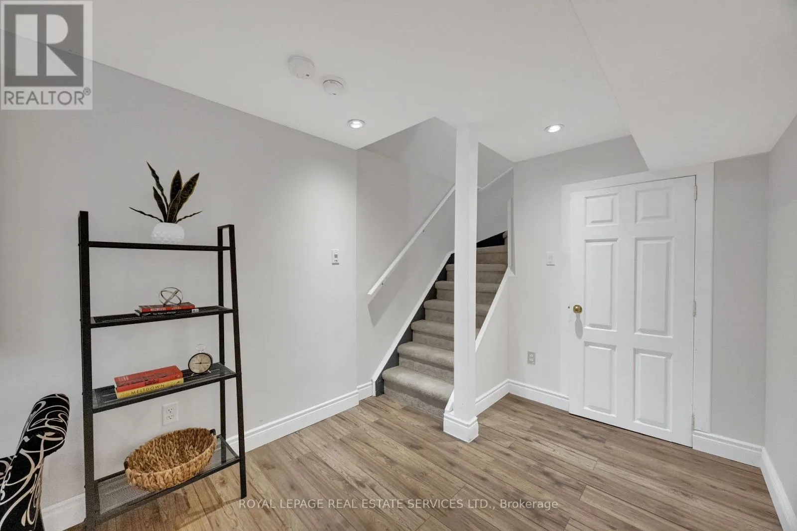 Cross Streets: Munn's / Sixth Line. ** Directions: North on Sixth from Upper Middle, Left on Munn's and Right on Rimmington. Welcome to this beautifully updated 3-bedroom, 1.5-bath semi-detached townhome in the heart of desirable River Oaks, Oakville - set on a larger lot with a private backyard deck, finished basement, and one-car parking. Stylish, turnkey, and thoughtfully upgraded, this home blends comfort with a modern edge. The renovated kitchen is a standout, featuring 40" wall cabinets, elegant Italian quartz countertops, and new appliances including oven + convection oven in 2024 - perfect for everyday living and entertaining alike. Recent improvements provide both peace of mind and elevated design: furnace & A/C (2025), new roof (2020), windows replaced (2023), new patio door (2020), new garage door (2019), and new front door (2025).Inside, the home was extensively refreshed in 2024-2025 with new flooring and baseboards throughout (2024), new interior doors (2025), a stunning hardwood staircase (2025), and sleek smooth ceilings with extensive pot lights (2025) creating a bright, contemporary feel from top to bottom. The finished basement offers versatile bonus space ideal for a rec room, home office, gym, or play area. Located in one of Oakville's most family-friendly communities, River Oaks offers walkable streets, mature trees, and an abundance of parks and trails including the scenic Sixteen Mile Creek trail system. Just minutes to River Oaks Community Centre with fitness facilities, arenas, and year-round programs. Highly regarded schools nearby include River Oaks Public School, Post's Corners Public School, White Oaks Secondary School, and Holy Trinity Catholic Secondary School. Commuters will appreciate quick access to the QEW, 403, 407, Oakville GO Station, shopping, Oakville Place, and Uptown Core amenities. A stylish home in a vibrant, connected neighbourhood - Lifestyle in River Oaks means enjoying nature, community events, shopping ease, excellent schools, and commuter convenience - all in a welcoming neighbourhood that feels like home from day one. (id:27476)