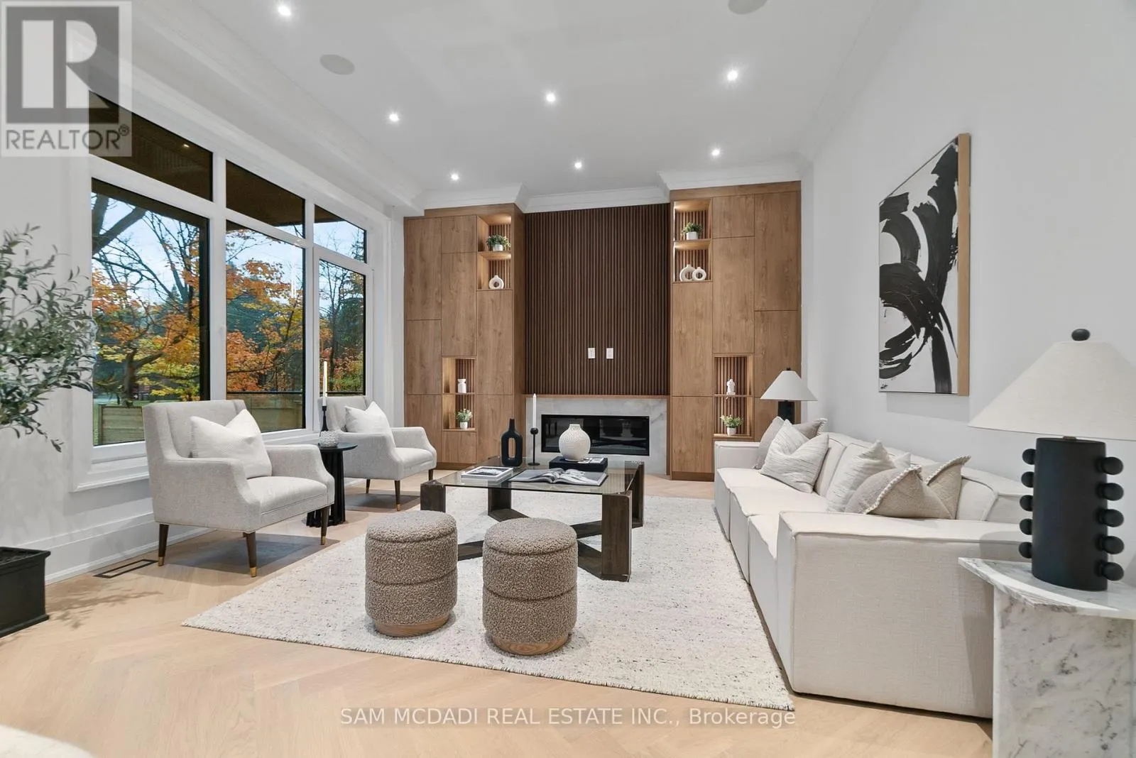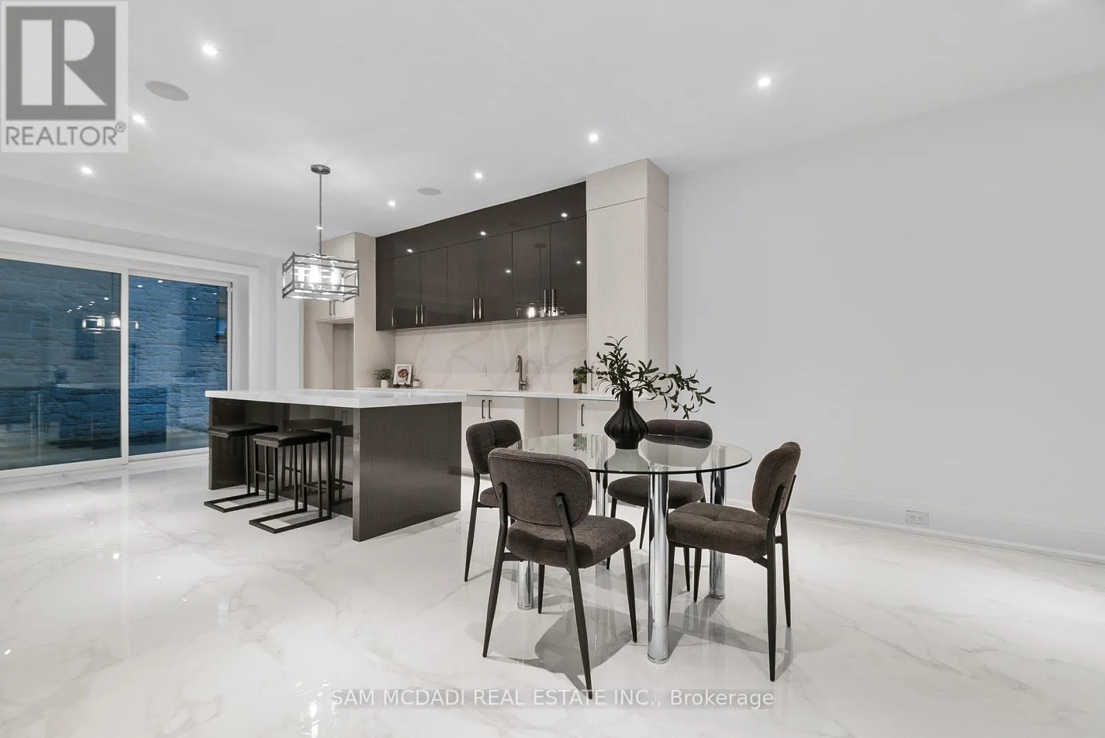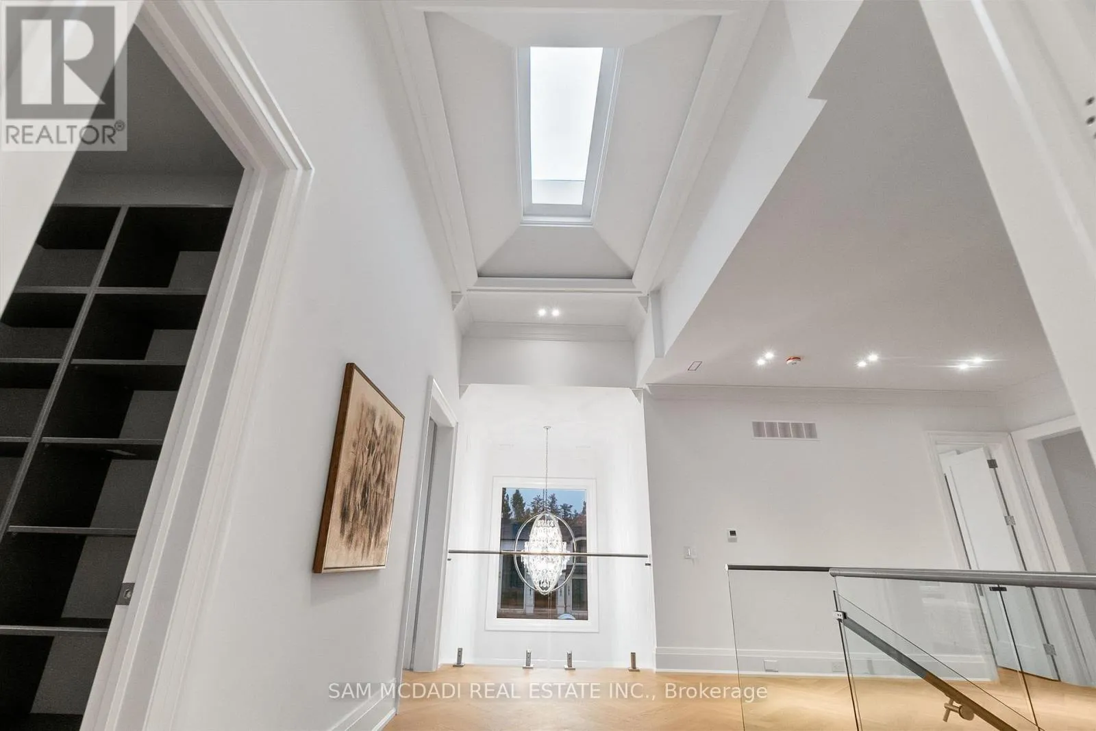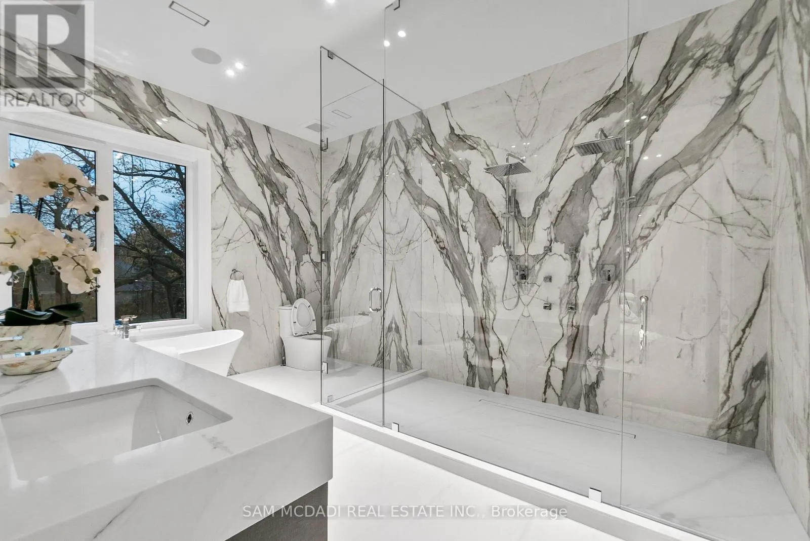 Cross Streets: Lakeshore Rd W / Pebbleridge Pl. ** Directions: Via Lakeshore head towards Pebbbleridge Pl then turn right. Set within one of Oakville's most distinguished enclaves, 84 Pebbleridge Place is a newly built modern estate that epitomizes architectural artistry and offers over 7,000 SF of refined living space. Poised on a private lot, this residence showcases a brick and limestone exterior, full-height glass walls a curated palette of luxurious finishes for the most discerning buyer. A grand double-height foyer introduces the home w/ polished marble-style porcelain and bespoke detailing. Beyond, herringbone hardwood floors flow through expansive principal rooms to a family room defined by a sleek wood feature wall, gas fireplace, and integrated Control4 automation for effortless entertaining. The designer kitchen is both statement and function, featuring an oversized island, full-height custom cabinetry, and Calacatta-style quartz counters w/ a custom backsplash. It opens directly to a covered deck w/ a gas fireplace, perfect for al fresco dining and evenings. An elevator and striking skylit staircase lead to the upper level, where four bedrooms each feature walk-in closets, tray ceilings, and private ensuites finished to spa-like standards. The primary suite is a serene retreat w/ a boutique-style dressing room and five-piece ensuite boasting a freestanding tub, oversized glass shower, full-height stone surrounds, and heated flooring. The lower level continues the theme of luxury and versatility, offering a heated basement w/ large-format porcelain slab flooring throughout. Designed for both relaxation and entertainment, this level includes a secondary kitchen, dining area, expansive living space, fitness room w/ cushioned flooring, an acoustically designed theatre, and three additional ensuite bedrooms, all enhanced by full-size windows and a separate entrance. Additional highlights include: a rough-in sauna, built-in speakers, and recessed lighting elevate comfort and ambiance, while upper-level laundry & a tandem garage w/ epoxy flooring complete this modern masterpiece. (id:27476)