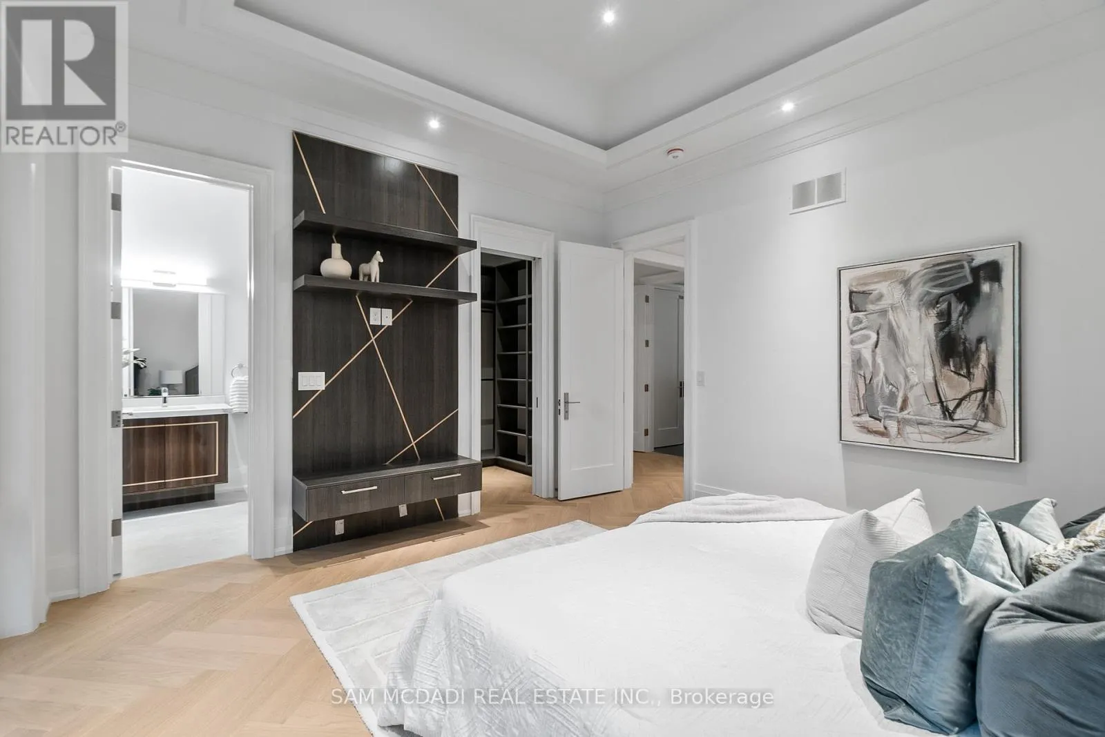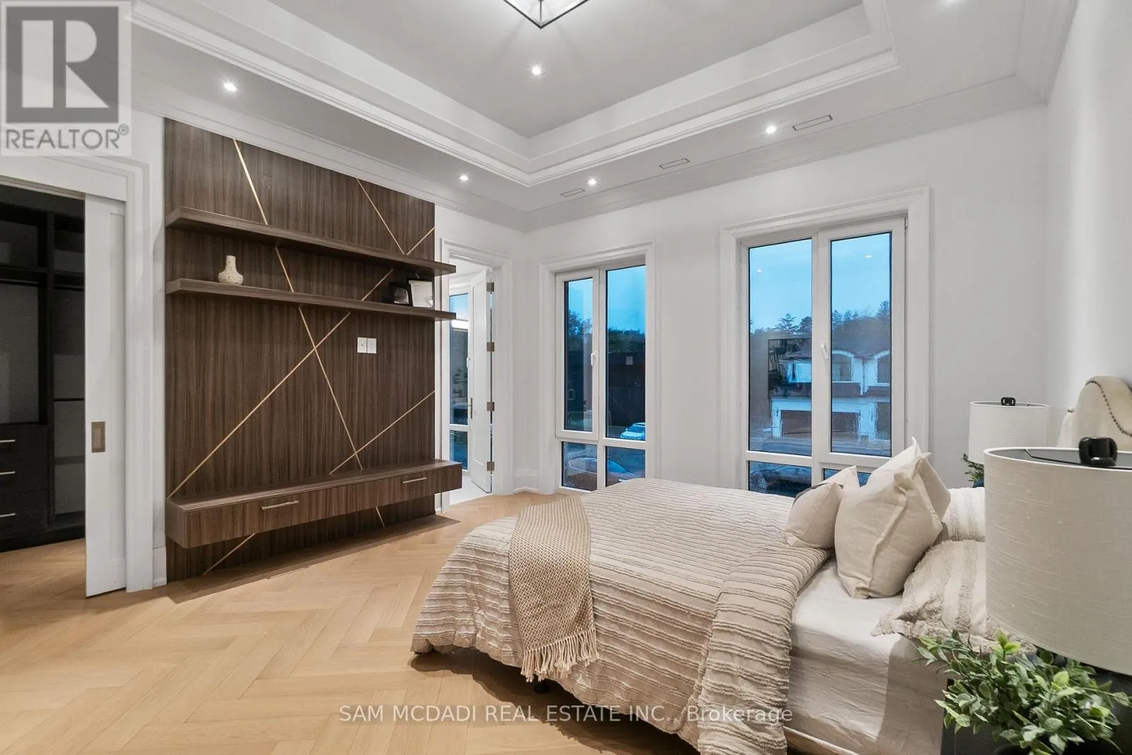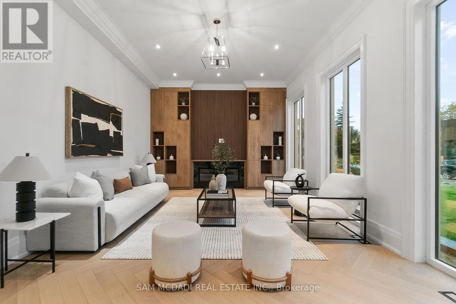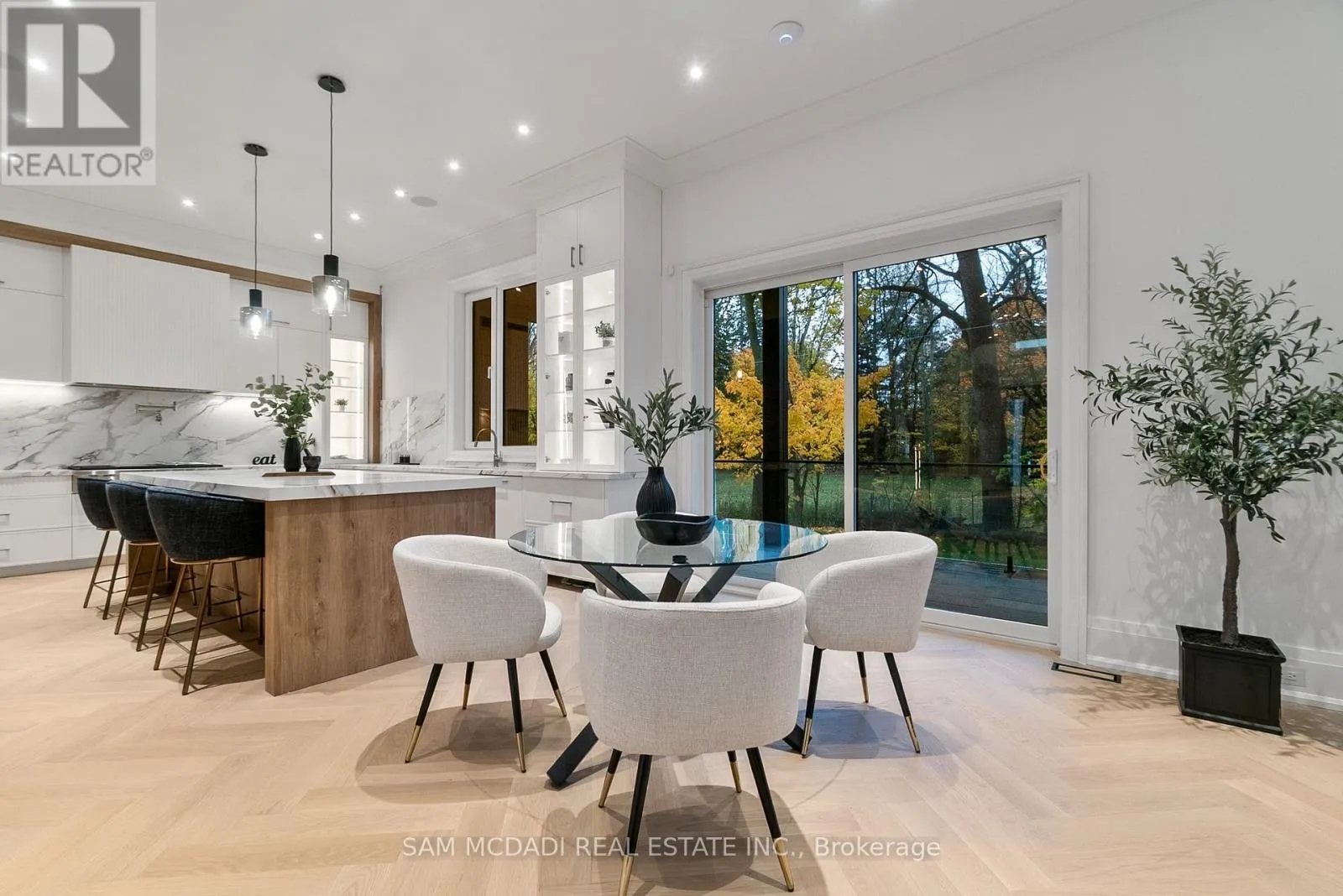 Cross Streets: Lakeshore Rd W / Pebbleridge Pl. ** Directions: Via Lakeshore head towards Pebbbleridge Pl then turn right. Set within one of Oakville's most distinguished enclaves, 84 Pebbleridge Place is a newly built modern estate that epitomizes architectural artistry and offers over 7,000 SF of refined living space. Poised on a private lot, this residence showcases a brick and limestone exterior, full-height glass walls a curated palette of luxurious finishes for the most discerning buyer. A grand double-height foyer introduces the home w/ polished marble-style porcelain and bespoke detailing. Beyond, herringbone hardwood floors flow through expansive principal rooms to a family room defined by a sleek wood feature wall, gas fireplace, and integrated Control4 automation for effortless entertaining. The designer kitchen is both statement and function, featuring an oversized island, full-height custom cabinetry, and Calacatta-style quartz counters w/ a custom backsplash. It opens directly to a covered deck w/ a gas fireplace, perfect for al fresco dining and evenings. An elevator and striking skylit staircase lead to the upper level, where four bedrooms each feature walk-in closets, tray ceilings, and private ensuites finished to spa-like standards. The primary suite is a serene retreat w/ a boutique-style dressing room and five-piece ensuite boasting a freestanding tub, oversized glass shower, full-height stone surrounds, and heated flooring. The lower level continues the theme of luxury and versatility, offering a heated basement w/ large-format porcelain slab flooring throughout. Designed for both relaxation and entertainment, this level includes a secondary kitchen, dining area, expansive living space, fitness room w/ cushioned flooring, an acoustically designed theatre, and three additional ensuite bedrooms, all enhanced by full-size windows and a separate entrance. Additional highlights include: a rough-in sauna, built-in speakers, and recessed lighting elevate comfort and ambiance, while upper-level laundry & a tandem garage w/ epoxy flooring complete this modern masterpiece. (id:27476)