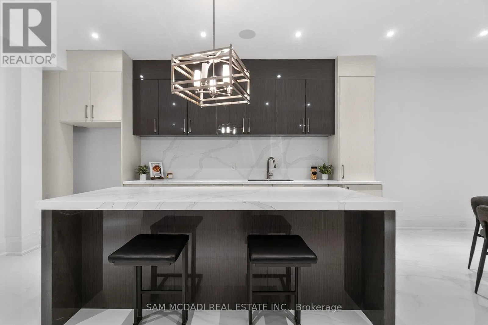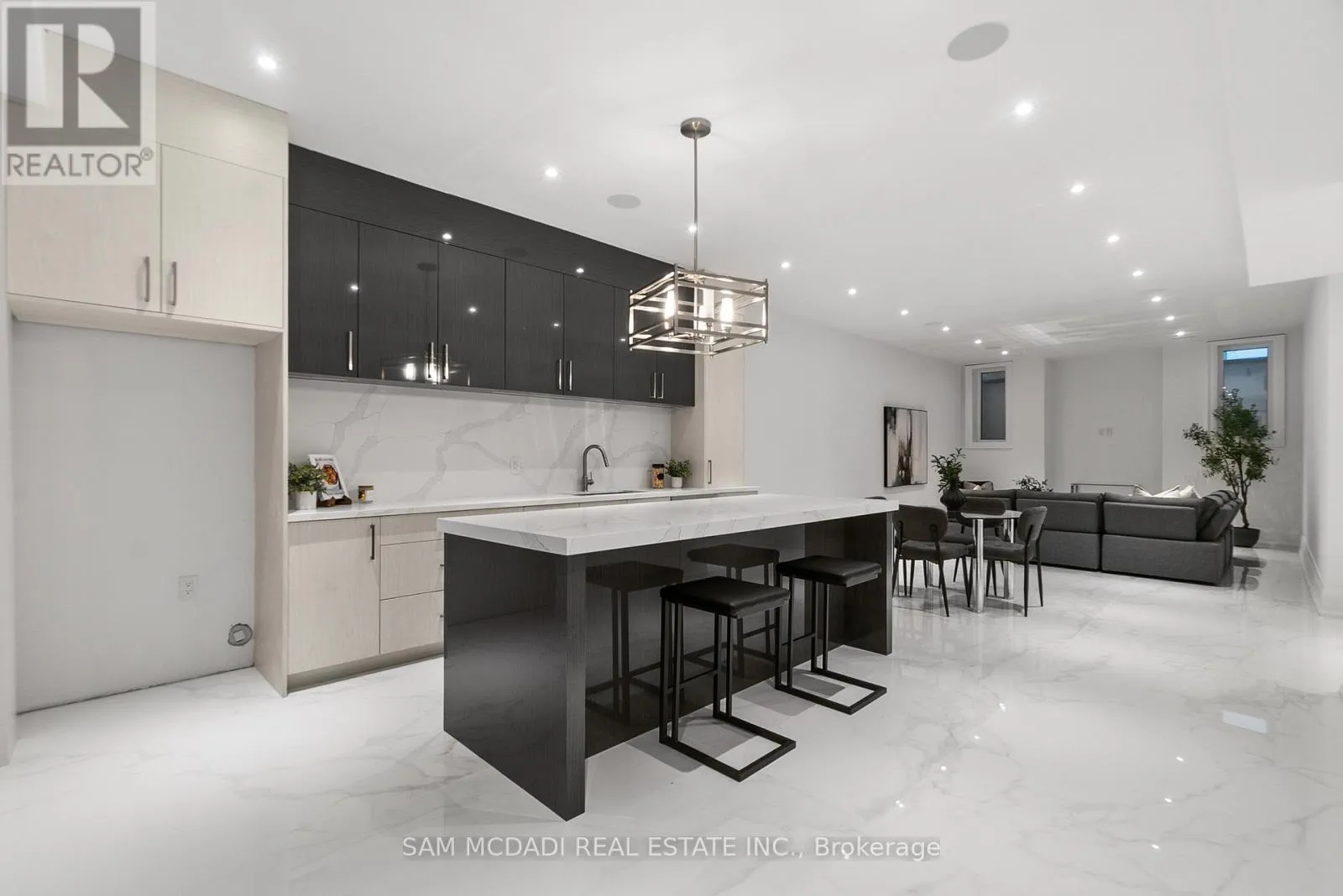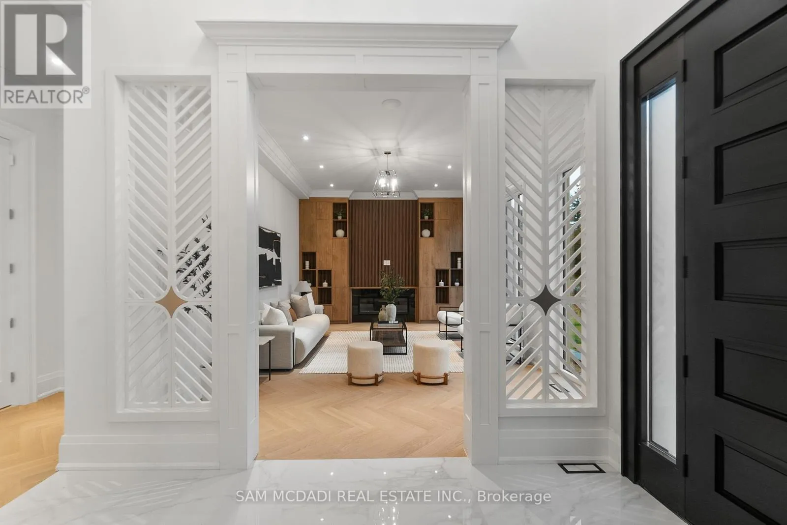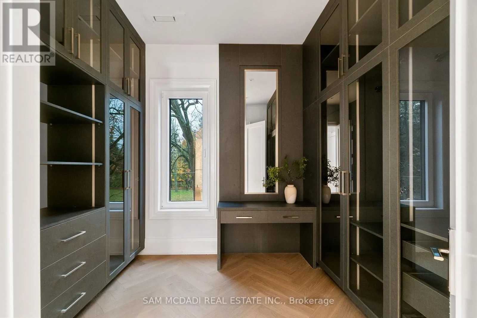 Cross Streets: Lakeshore Rd W / Pebbleridge Pl. ** Directions: Via Lakeshore head towards Pebbbleridge Pl then turn right. Set within one of Oakville's most distinguished enclaves, 84 Pebbleridge Place is a newly built modern estate that epitomizes architectural artistry and offers over 7,000 SF of refined living space. Poised on a private lot, this residence showcases a brick and limestone exterior, full-height glass walls a curated palette of luxurious finishes for the most discerning buyer. A grand double-height foyer introduces the home w/ polished marble-style porcelain and bespoke detailing. Beyond, herringbone hardwood floors flow through expansive principal rooms to a family room defined by a sleek wood feature wall, gas fireplace, and integrated Control4 automation for effortless entertaining. The designer kitchen is both statement and function, featuring an oversized island, full-height custom cabinetry, and Calacatta-style quartz counters w/ a custom backsplash. It opens directly to a covered deck w/ a gas fireplace, perfect for al fresco dining and evenings. An elevator and striking skylit staircase lead to the upper level, where four bedrooms each feature walk-in closets, tray ceilings, and private ensuites finished to spa-like standards. The primary suite is a serene retreat w/ a boutique-style dressing room and five-piece ensuite boasting a freestanding tub, oversized glass shower, full-height stone surrounds, and heated flooring. The lower level continues the theme of luxury and versatility, offering a heated basement w/ large-format porcelain slab flooring throughout. Designed for both relaxation and entertainment, this level includes a secondary kitchen, dining area, expansive living space, fitness room w/ cushioned flooring, an acoustically designed theatre, and three additional ensuite bedrooms, all enhanced by full-size windows and a separate entrance. Additional highlights include: a rough-in sauna, built-in speakers, and recessed lighting elevate comfort and ambiance, while upper-level laundry & a tandem garage w/ epoxy flooring complete this modern masterpiece. (id:27476)