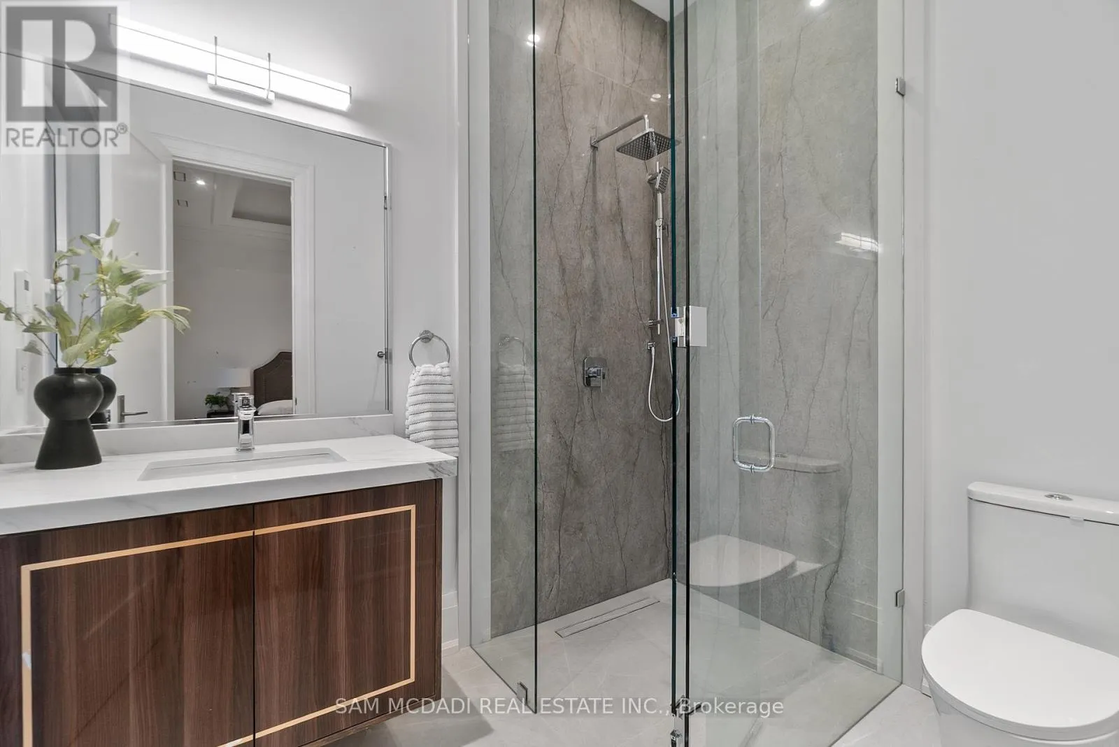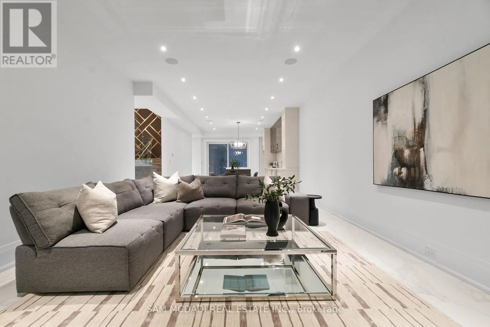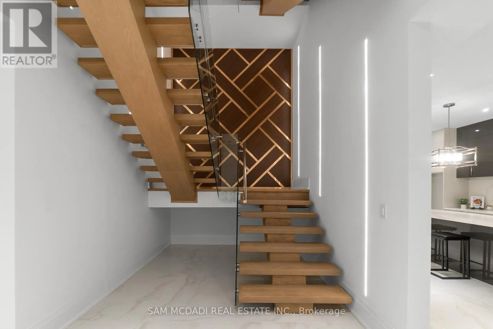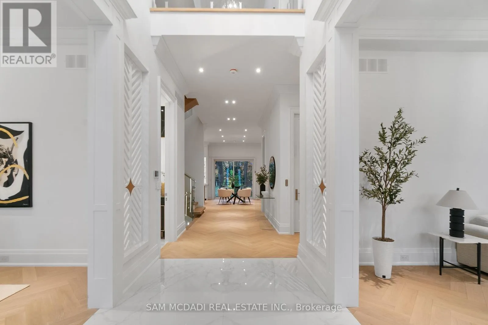 Cross Streets: Lakeshore Rd W / Pebbleridge Pl. ** Directions: Via Lakeshore head towards Pebbbleridge Pl then turn right. Set within one of Oakville's most distinguished enclaves, 84 Pebbleridge Place is a newly built modern estate that epitomizes architectural artistry and offers over 7,000 SF of refined living space. Poised on a private lot, this residence showcases a brick and limestone exterior, full-height glass walls a curated palette of luxurious finishes for the most discerning buyer. A grand double-height foyer introduces the home w/ polished marble-style porcelain and bespoke detailing. Beyond, herringbone hardwood floors flow through expansive principal rooms to a family room defined by a sleek wood feature wall, gas fireplace, and integrated Control4 automation for effortless entertaining. The designer kitchen is both statement and function, featuring an oversized island, full-height custom cabinetry, and Calacatta-style quartz counters w/ a custom backsplash. It opens directly to a covered deck w/ a gas fireplace, perfect for al fresco dining and evenings. An elevator and striking skylit staircase lead to the upper level, where four bedrooms each feature walk-in closets, tray ceilings, and private ensuites finished to spa-like standards. The primary suite is a serene retreat w/ a boutique-style dressing room and five-piece ensuite boasting a freestanding tub, oversized glass shower, full-height stone surrounds, and heated flooring. The lower level continues the theme of luxury and versatility, offering a heated basement w/ large-format porcelain slab flooring throughout. Designed for both relaxation and entertainment, this level includes a secondary kitchen, dining area, expansive living space, fitness room w/ cushioned flooring, an acoustically designed theatre, and three additional ensuite bedrooms, all enhanced by full-size windows and a separate entrance. Additional highlights include: a rough-in sauna, built-in speakers, and recessed lighting elevate comfort and ambiance, while upper-level laundry & a tandem garage w/ epoxy flooring complete this modern masterpiece. (id:27476)