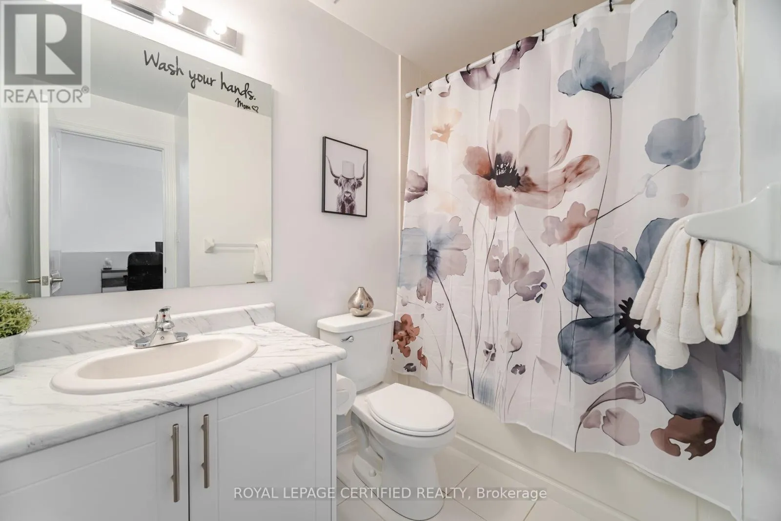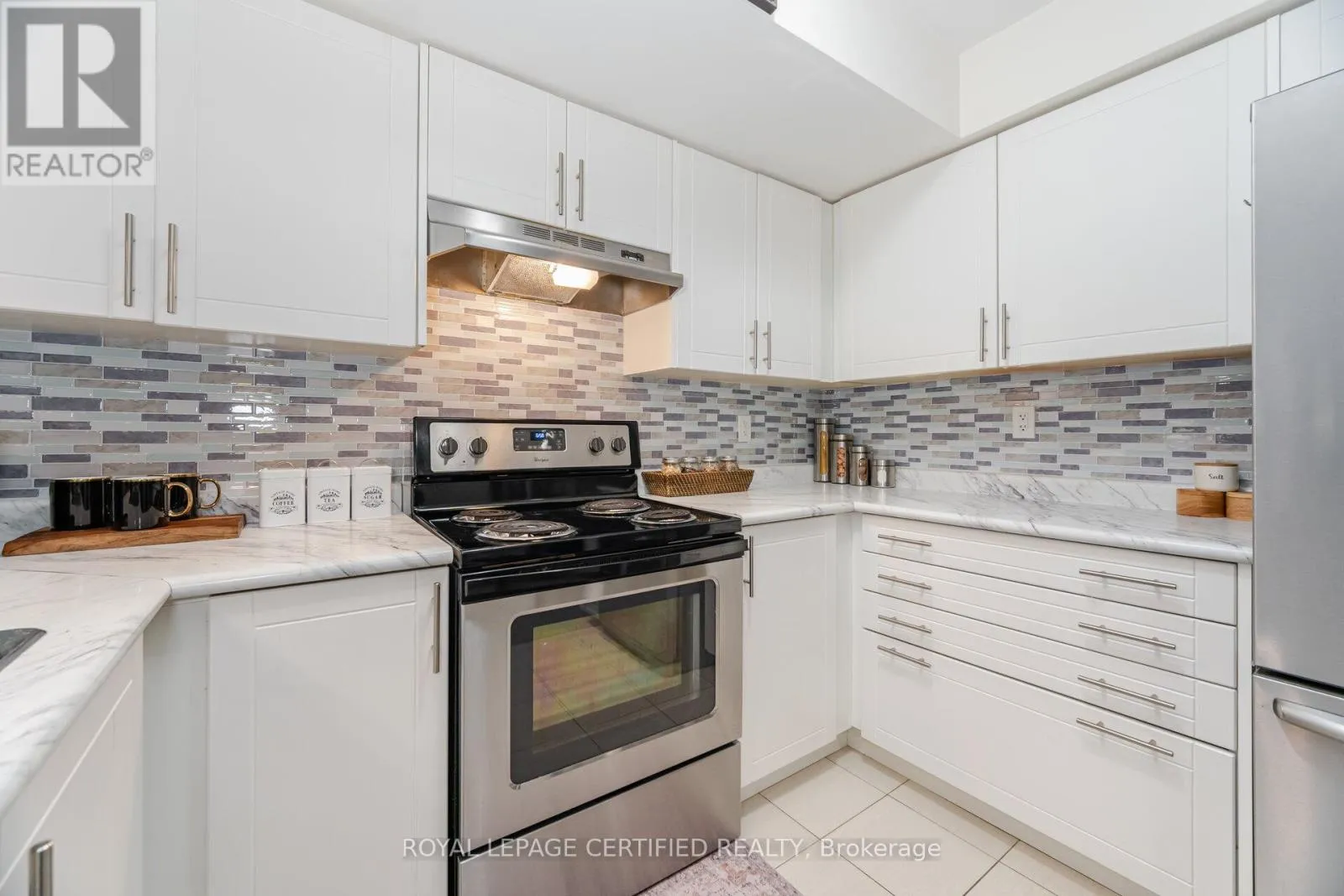 Cross Streets: Bronte Rd/Dundas St. ** Directions: google map. Fabulous and gorgeous 3-Bedrooms Stacked Townhouse in Westmount community! Tucked into a quiet corner, this unit is stunning with modern and chic decor! Main floor open concept living/dining room is spacious and flows into a great size kitchen; Beautiful kitchen has breakfast area that can easily function as a study/office nook; Powder room is gorgeous perfect for that unexpected guest! Walking up to 2nd floor, you will be in awe with high ceiling - 2nd and 3rd bedrooms has over 13' of ceiling height with large windows! Primary bedroom is very private with his and hers closets and an ensuite bathroom with separate soaker tub and stand shower! A bonus room (den) is perfect for work-from-home if needed; This is one of the largest unit in the complex with approximately 1,550 sq ft; Fantastic for a growing family with school-going kids; Unit comes with 2 parking spaces - tandem parking and access to garage is right in front of the unit! Complex is walking distance to Gurudwara Oakville Temple, close To Oakville Trafalgar Memorial Hospital, Highway 407, QEW, Sought After Schools, Public Transport, Trails & Parks. (id:27476)