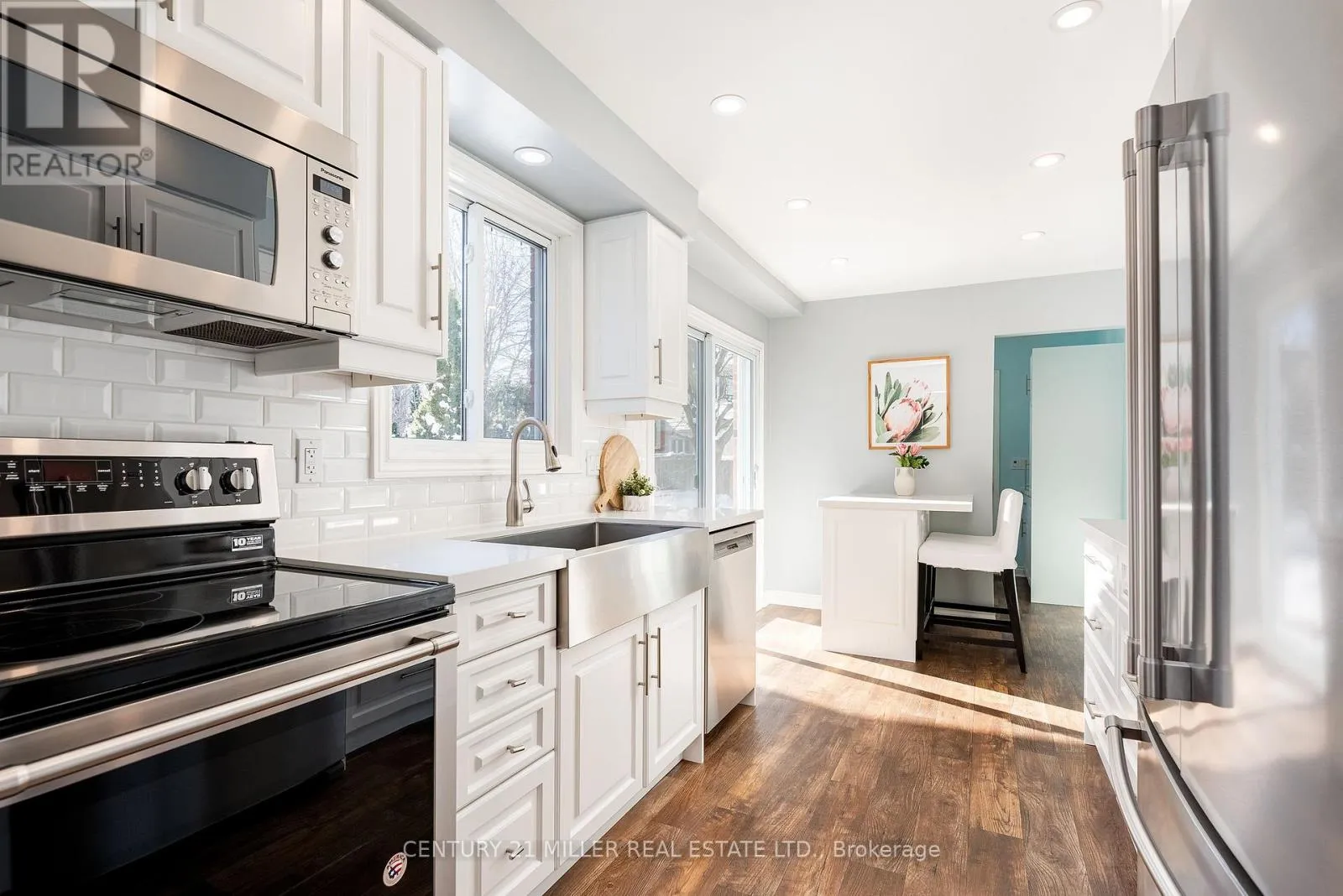 Grand Ave & Grosvenor Street Set on a quiet, tree-lined street in one of Oakville's most established and family-focused neighbourhoods, this beautifully maintained home offers the space, layout, and location that growing families value most. From the moment you arrive, the classic all brick exterior and welcoming covered front porch create a timeless first impression. Inside, the home unfolds with thoughtfully defined yet connected living spaces. The main level features a spacious living room with hardwood floor, ideal for hosting or quiet evenings at home, while the separate family room overlooks the front yard and provides a warm, inviting space. At the heart of the home is the updated kitchen, complete with modern cabinetry, quality appliances, and a generous breakfast area with a walk-out to the rear yard. A rare main-floor laundry room adds everyday convenience. Upstairs, four well-proportioned bedrooms offer flexibility for families. The primary suite features a walk-in closet and private ensuite, while the remaining bedrooms are bright and supported by a full family bath. The finished lower level significantly extends the living space, featuring a large rec room with cozy gas fireplace. An additional bedroom, a powder room, and ample storage complete this versatile level. Outside, the private backyard is framed by mature trees, offering a peaceful setting for outdoor dining or relaxing with friends. Plenty of room to entertain or garden. Living in Falgarwood means enjoying one of Oakville's most sought-after neighbourhoods - known for mature streets, strong community, and exceptional convenience. Walk to top-rated schools, parks, and a network of scenic walking/cycling trails. Everyday amenities are minutes away, with easy public transit access, major highways, and the Oakville GO, making commuting simple and efficient. This is a home that delivers on lifestyle, location, and long-term value, ideal for families looking to put down roots in a neighbourhood they'll love for years to come. (id:27476)
