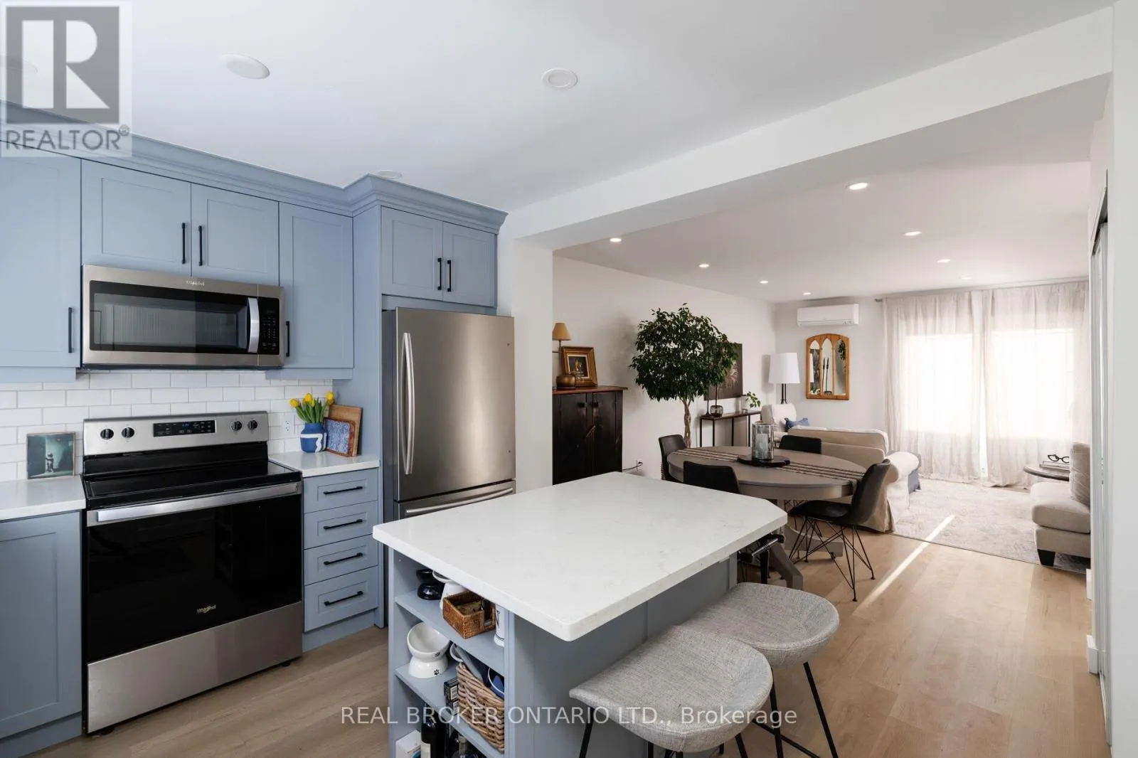 Cross Streets: Lakeshore Road & Third Line. ** Directions: Google Maps. Resort-style living in the heart of Bronte. This beautifully renovated end-unit condo townhouse is tucked into a quiet, green-filled enclave in one of Oakville's most sought-after neighbourhoods. Filled with natural light and western exposure, this home offers 3 bedrooms and 3 bathrooms, including a rare 2-piece ensuite in the primary bedroom-a standout feature for the area. Extensively renovated, the home features 100% waterproof vinyl plank flooring, smoothed ceilings, LED pot lights, upgraded doors and closets, and an efficient 4-zone split heating and air-conditioning system. The redesigned open-concept kitchen includes brand new quartz countertops, a double stainless steel sink, and all new stainless steel appliances-ideal for everyday living and entertaining. All bathrooms have been fully renovated with modern finishes. The spacious basement provides flexible living space and offers direct access to underground parking from just outside the suite. Enjoy outdoor living on the large private deck and fenced patio, perfect for hosting or relaxing in a peaceful setting. Surrounded by abundant green space with ample visitor parking. Updates & Improvements. Just steps to Lake Ontario, Bronte Harbour, parks, schools, walking and biking trails, and everyday conveniences including Farm Boy, Metro, LCBO, and local restaurants. Enjoy year-round lakeside living with summer concerts, festivals, kayaking, canoeing, and a walkable city-run outdoor pool. Turnkey living in an unbeatable lakeside community. (id:27476)