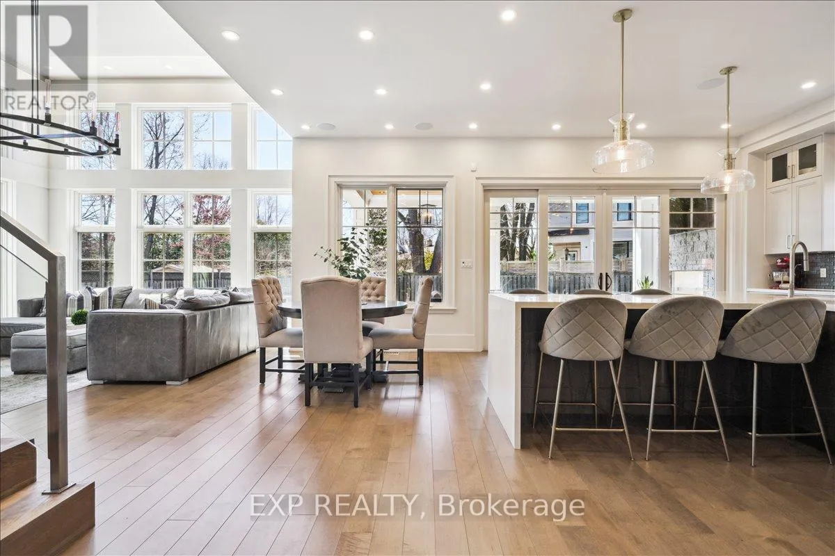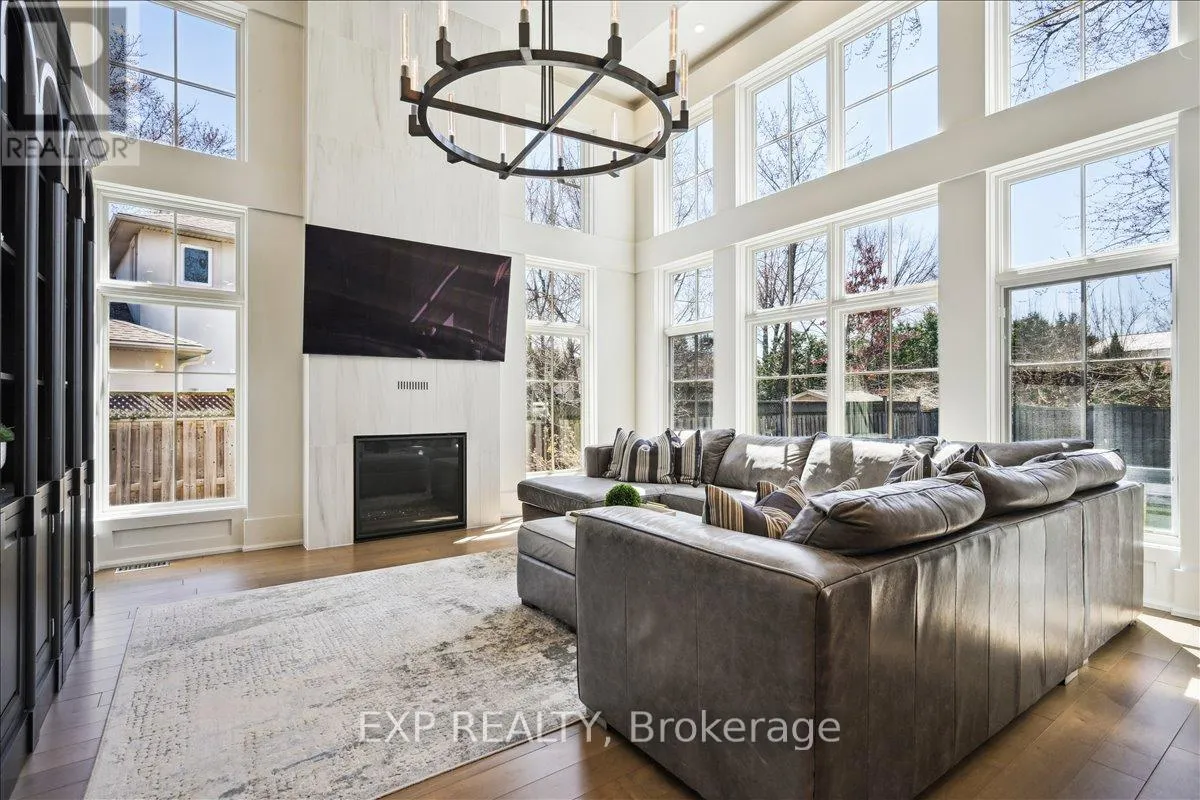Cross Streets: Wellington/Maplehurst. ** Directions: See google maps. Experience the pinnacle of West Oakville living in this custom-built architectural triumph designed by local luminary Joris Keeren. Sited on a rare, pie-shaped lot widening to 97 feet at the rear, this residence offers over 6,000 square feet of light-filled luxury that perfectly balances grand scale with intimate family comfort. The drama begins in the soaring 20-foot foyer, which leads to a culinary masterpiece anchored by a massive T-shaped island, professional-grade appliances, and a walk-in pantry with a dedicated servery. The Great Room is a showstopper, featuring 18-foot ceilings that open onto a cedar-lined covered porch-a true four-season oasis equipped with a built-in BBQ, task sink, and double-sided gas fireplace for year-round alfresco dining. The upper level hosts four expansive bedrooms, including a primary retreat that rivals the world's best hotels with a bespoke walk-in closet and a spa-inspired 5-piece ensuite, plus a laundry room equipped with a steam styler. The lower level is an entertainment sanctuary featuring radiant in-floor heating, a wet bar with wine display, and a state-of-the-art home theatre fully equipped with Control4 automation, a projector, and included seating. Located minutes from Appleby College, top-rated schools, and the lake, this is more than a home; it is a lifestyle statement for the discerning family. (id:27476)