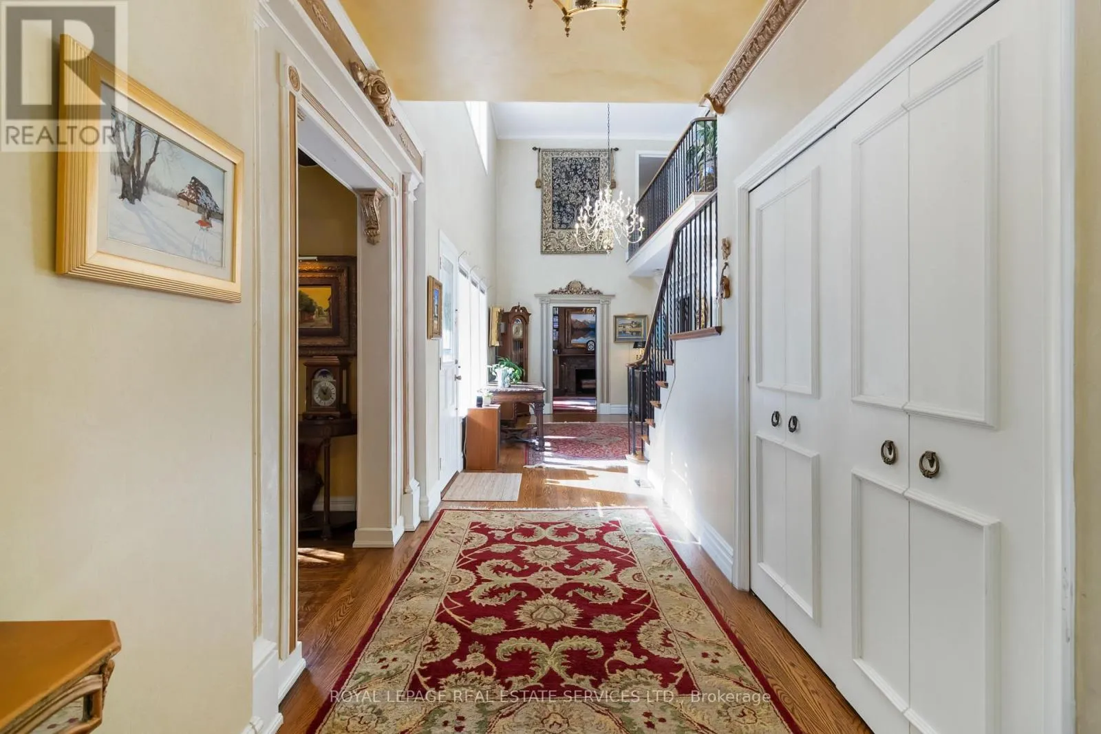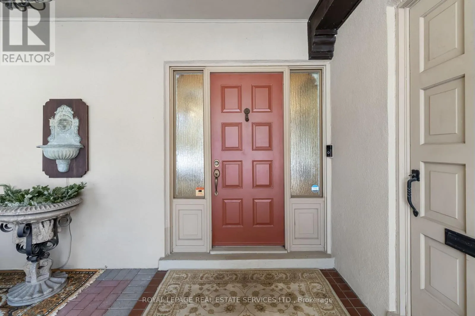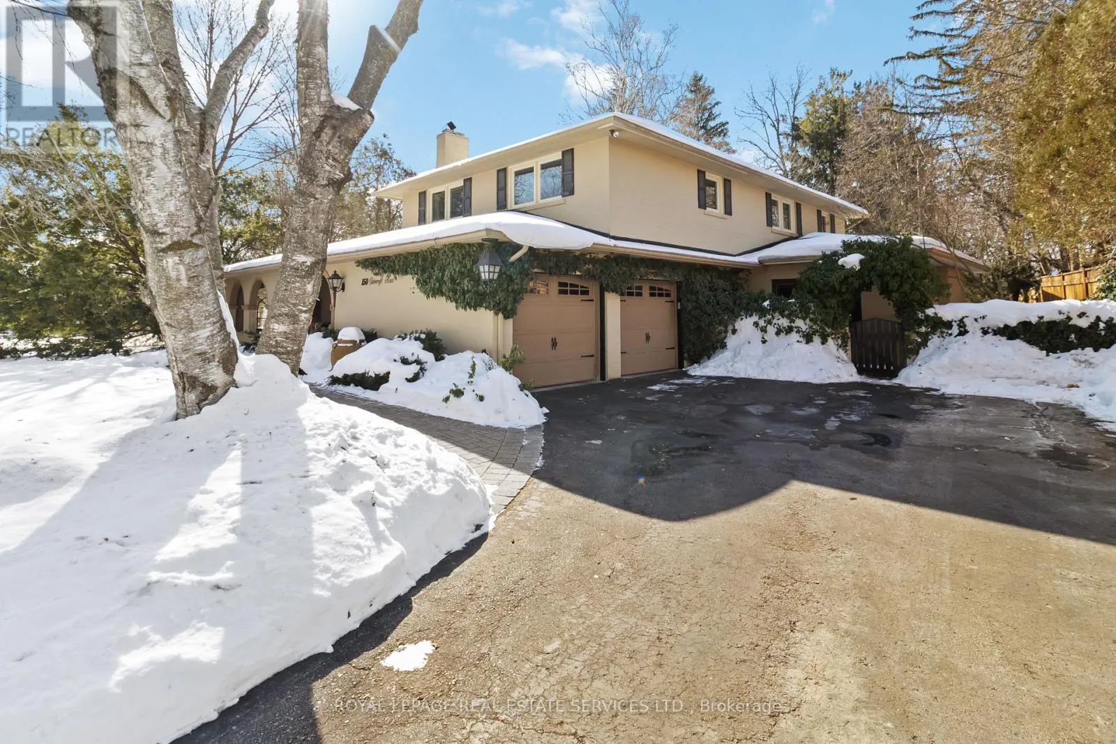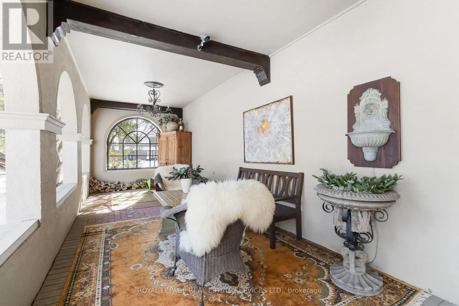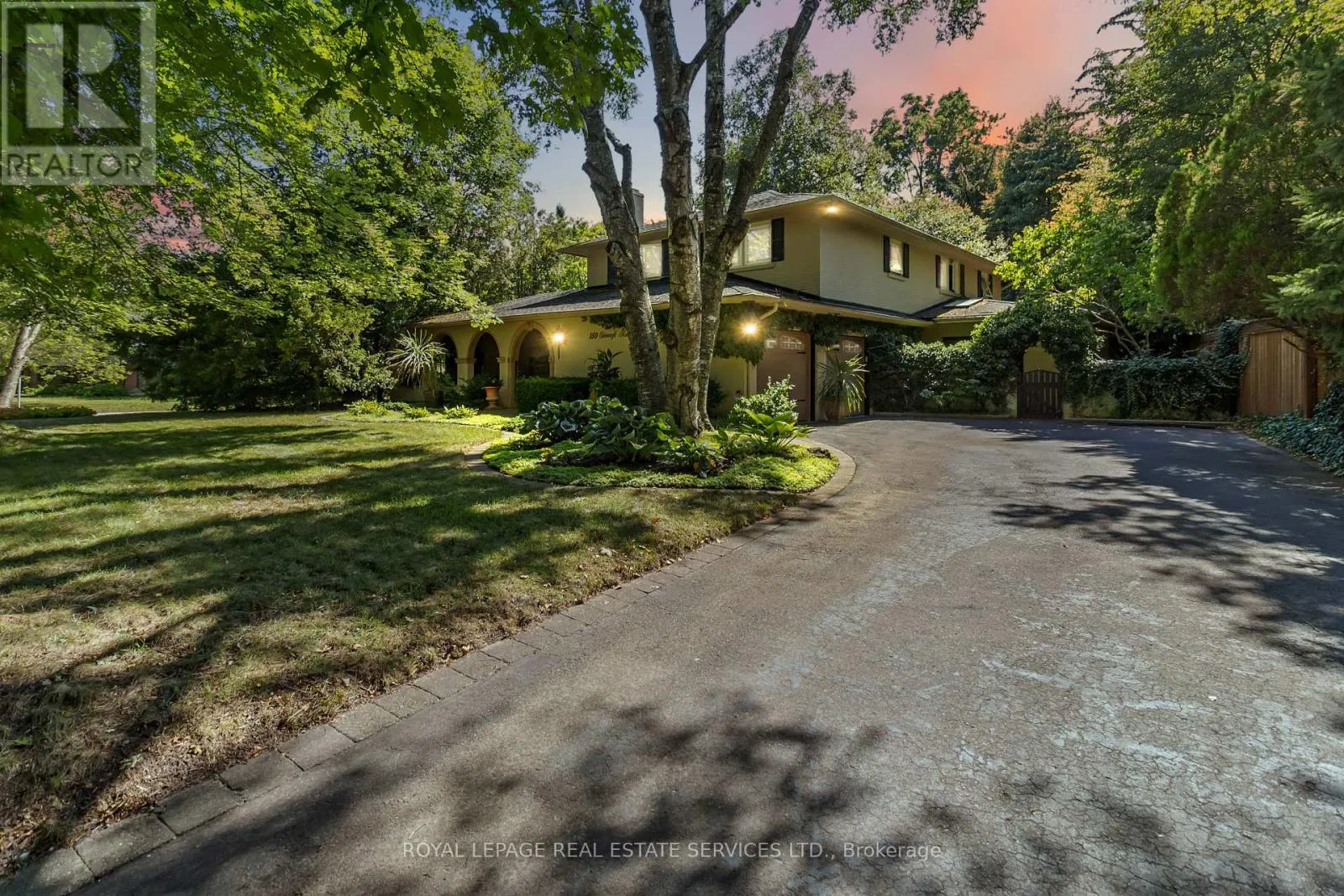 Lakeshore Rd E & Cairncroft Rd Welcome to 150 Cairncroft, a rare opportunity to own a distinctive property in one of Oakville's most coveted neighbourhoods. Nestled on a stunning 0.4 acre (17,416 sq ft) corner lot, this charming 3,052 sq ft residence is enveloped by mature trees and lush landscaping, offering the perfect blend of privacy and prestige. Set just steps from the lake and picturesque Gairloch Gardens, the location is unparalleled for those seeking an upscale lifestyle surrounded by nature, yet within easy reach of top-rated schools, downtown Oakville, major commuter routes & transit. Whether you're looking to move right in, renovate, or build your custom dream home (RL1-0 zoning), this property delivers exceptional potential. The existing home is rich in character and warmth with its Mediterranean-inspired façade and design, offering 4 bedrooms + den, and 2.5 bathrooms. The living room showcases exposed structural beams set amongst 1 of this home's 4 cozy fireplaces, lending a rustic allure and architectural interest. While the soaring two-storey foyer also offers captivating views of the inviting yet secluded courtyard-style patio - ideal for entertaining or relaxing under the canopy of greenery. Properties of this caliber and location are exceedingly rare. Don't miss your chance to secure a premium foothold in a neighbourhood known for luxury homes, timeless appeal, and rare public lakefront access only steps away! (id:27476)