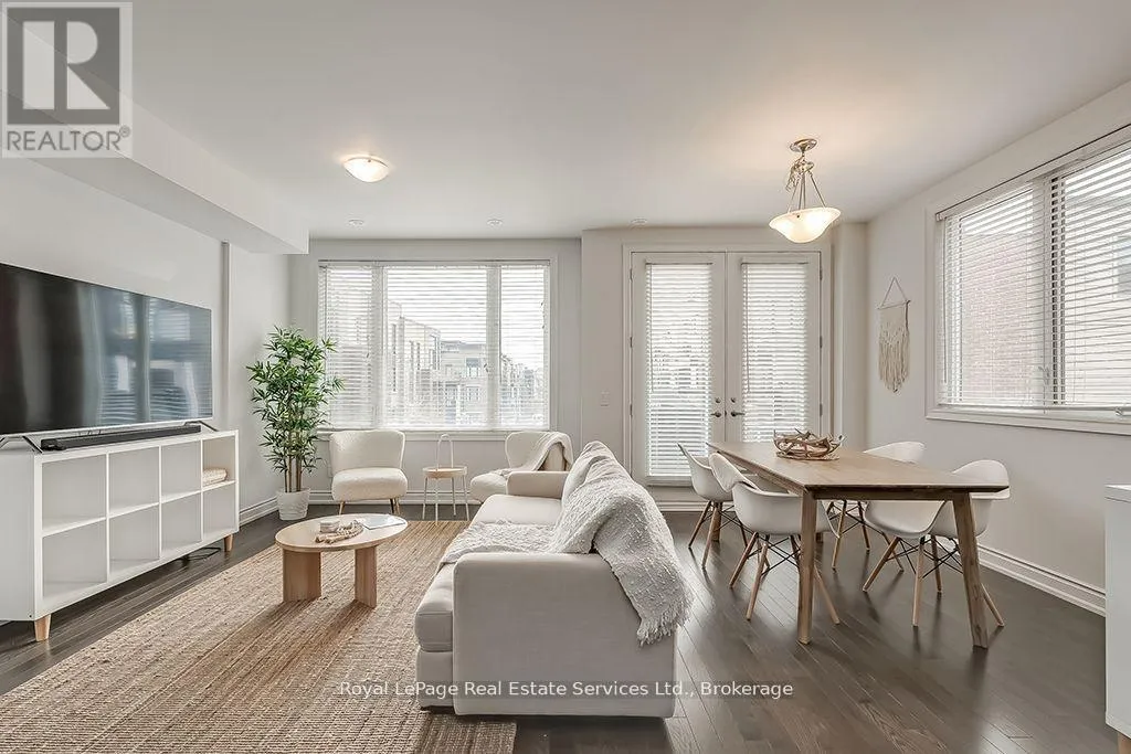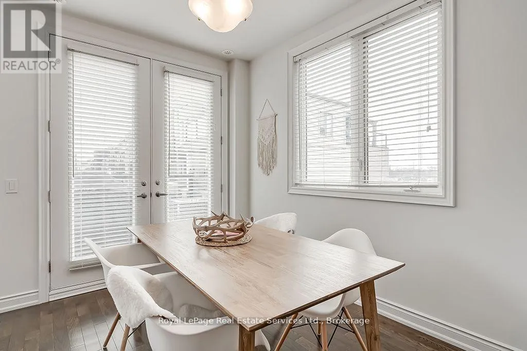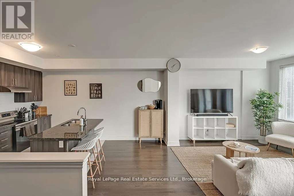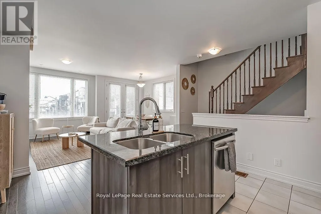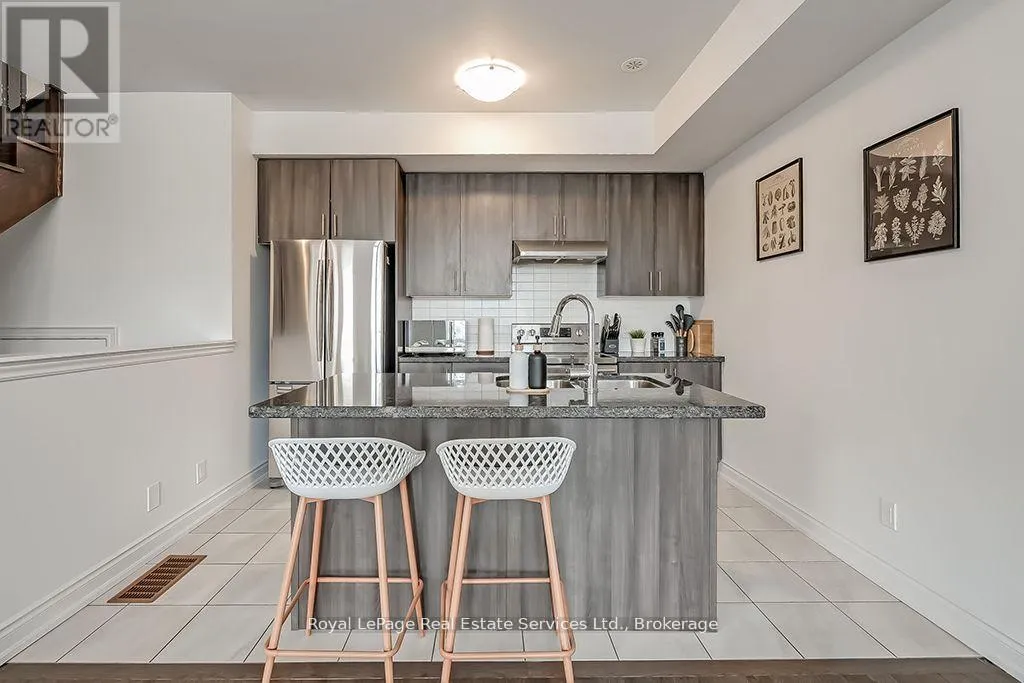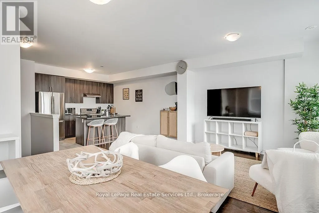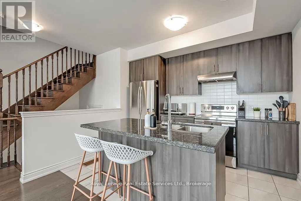 Cross Streets: Dundas/Postridge. ** Directions: Dundas to Postridge to Cascade Common. Stunning 3 Storey End Unit Townhome in Desirable Joshua Meadows. Impeccably maintained 2 Bedroom 2.5 Bath home boasting over 1500 Sq Feet of living space with hardwood flooring + large windows providing ample natural light. Front porch leads to a large foyer with ample storage space and direct access to garage. Bright open concept main living space with 9 ft ceilings. Modern kitchen featuring dark cabinetry, SS appliances, tile backsplash, granite counters, centre island with breakfast bar + undermount sink. Spacious great room with separate dining room with a walk out to balcony + 2 pc bath. The 3rd level features primary bedroom with his/her closets + 4 pc ensuite, 2nd Bedroom with barn door entry, 4 Pc Main bath + Convenient bedroom level laundry. Walk up to the roof top deck with beautiful views. Amazing location close to all Amenities, Schools, Shops, Trails, Transit + minutes to major HWYs. Perfect for commuters + executives - this townhome is sure to impress! (id:27476)
