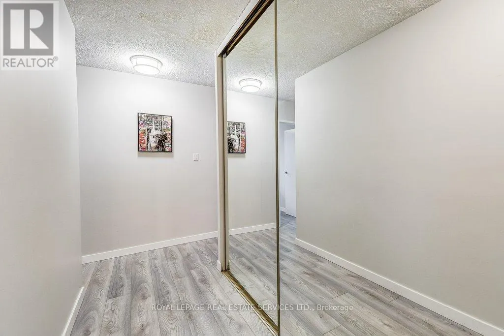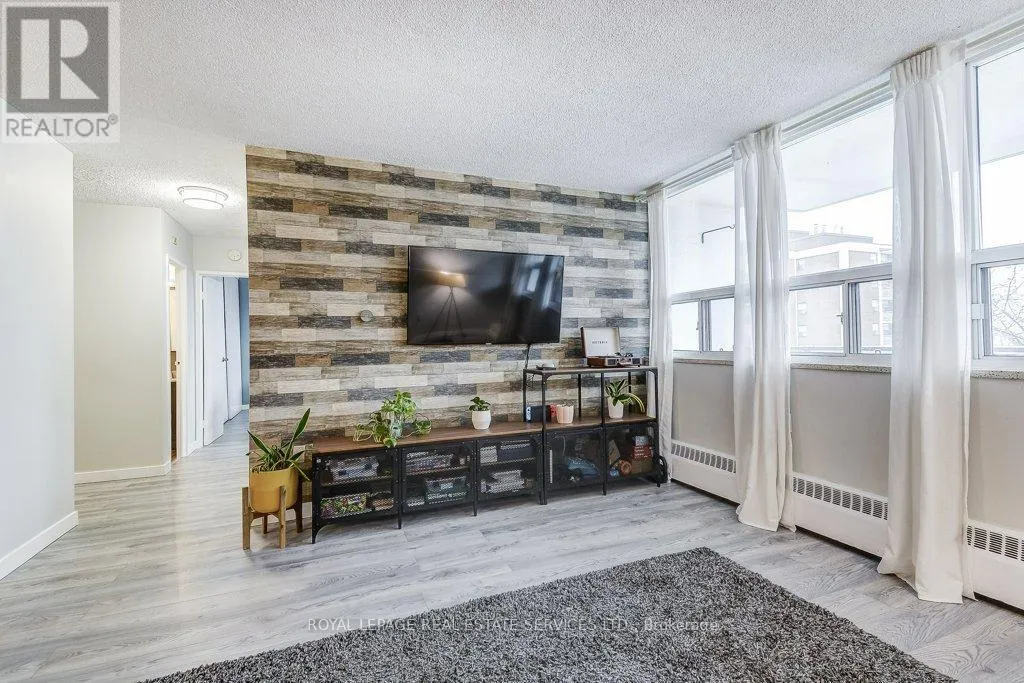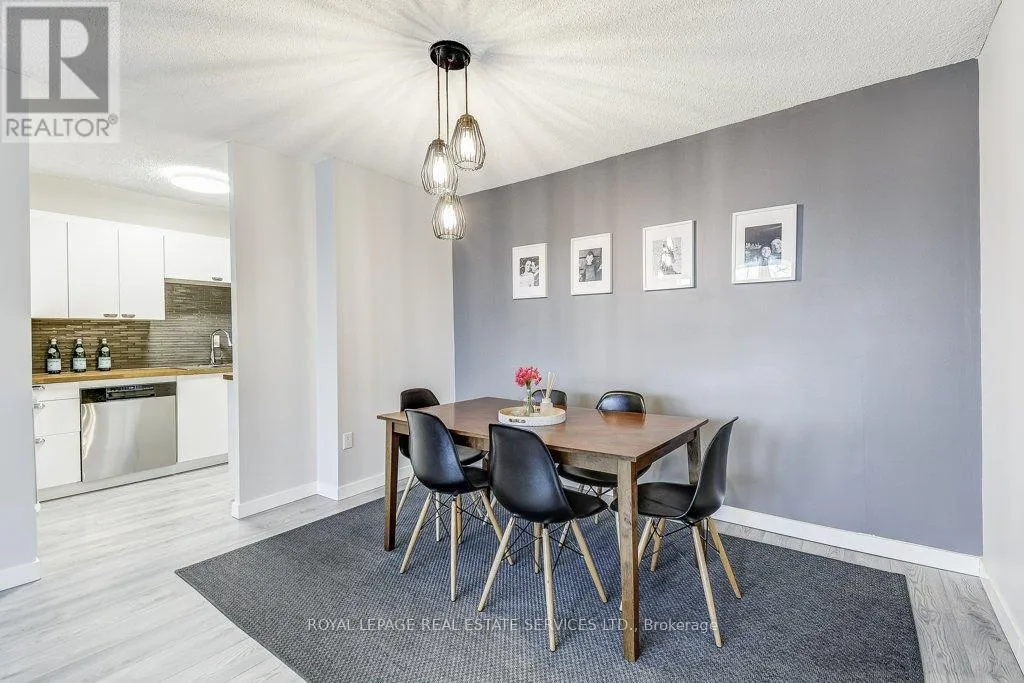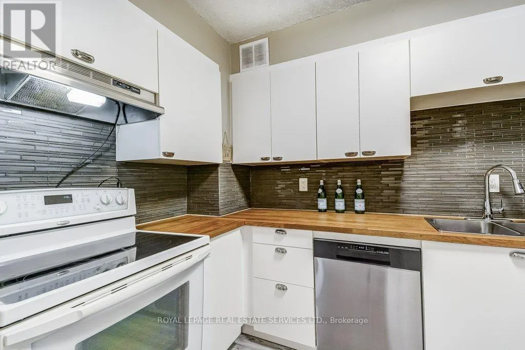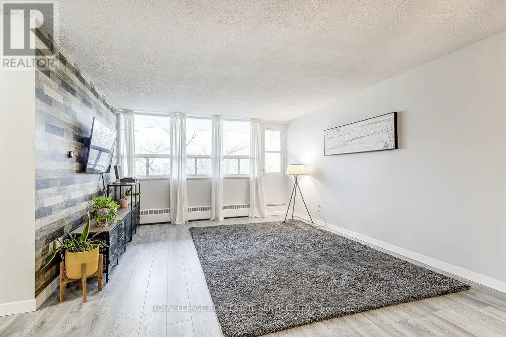 Cross Streets: Kerr St and Rebecca St. ** Directions: Long driveway to building is on Kerr St and Bond St, but on the west side. Welcome to Arbour Glen, a quietly set-back building in the heart of Kerr Village. This bright, inviting, 960 square foot, 2 bed, 1 bathroom condo offers well-proportioned living space with a warm, updated interior and desirable south exposure overlooking lush green grounds. Set back from the street, the unit enjoys a peaceful, private feel rarely found in such a central location. Recent renovations include a modern kitchen, updated bathroom, open concept living and dining room with feature wall, and quality laminate flooring throughout, creating a clean, move-in-ready space that reflects pride of ownership. Smart home feature of a Nest thermostat integrated with the Google Home app controlling kitchen and living room lighting, select switched outlets, and heat and A/C unit. Walk to Kerr Village shops and restaurants, downtown Oakville, Old Oakville, and the lakefront, with transit highways and daily amenities just steps away. Ideal for downsizers or buyers seeking comfort, convenience, and exceptional walkability in one of Oakville's most established neighbourhoods. Public Open House Sunday Feb 22, 2-4 pm. (id:27476)