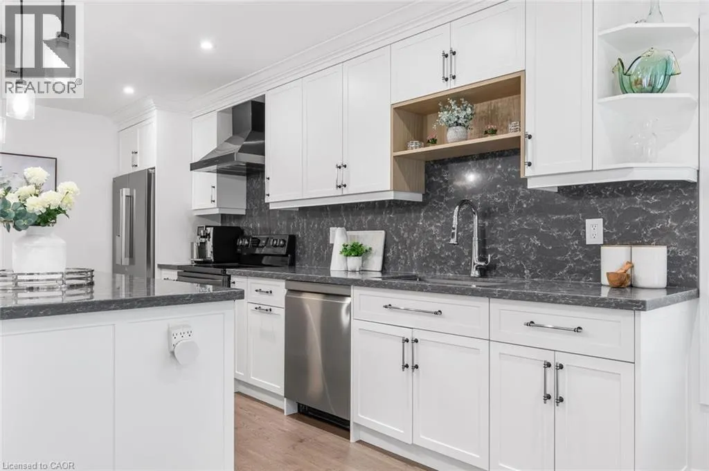 Nottinghill Gate/Birchcliff Dr This Stunning 4+1 bedroom, 4-bath home is located in Oakvilleâs highly sought-after Glen Abbey community. Bright, airy interiors are filled with natural light, highlighting wide-plank hardwood flooring, graceful staircases, natural gas fireplace and an inviting foyer finished with timeless elegance. At the center of the home is a contemporary kitchen crafted for both everyday living and effortless entertaining. Complete with stainless steel appliances, sleek countertops, generous cabinetry, and ample storage, it flows seamlessly into a private outdoor retreat. Spend summer afternoons by the sparkling inground saltwater pool, relax on the expansive deck, and enjoy the soothing touch of a tranquil water featureâcreating a true resort-style escape. Upstairs, the primary suite offers a serene sanctuary with an electric fireplace and a spa-inspired ensuite. Three additional bedrooms are spacious, sun-filled, and perfect for family or guests. The finished lower level adds exceptional flexibility, featuring an additional bedroom and the ideal space for a home office, gym, or recreation area, complemented by a modern three-piece bathroom. Perfectly positioned near top-rated schools, scenic trails, Monastery Bakery, and everyday conveniences, with quick access to major highways and Bronte GO for seamless commuting. (id:27476)