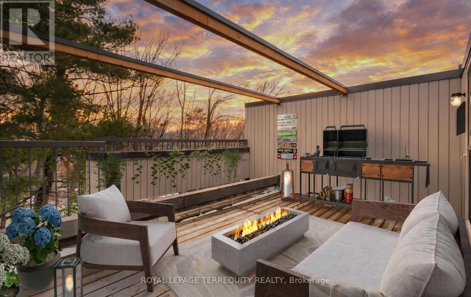 Cross Streets: West of Trafalgar, North of QEW. ** Directions: Trafalgar & Marlborough. Prime Location with Natural Surroundings! Welcome to this hidden gem in The Treetop Estate! A small executive complex set on 5 lush acres, backing onto the McCraney Valley Trail and adjacent to the Morrison Creek Ravine. Enjoy Muskoka in the City... an everyday vacation at home! This end-unit condo townhouse features a unique and versatile layout, offering outstanding potential for buyers to reimagine and create their dream home. With generous living spaces, it's a rare opportunity to personalize in an exceptional setting. Enjoy direct access to nature from the ground-floor patio, unwind on the main-floor balcony, or take in the serene, tree-lined views from the amazing rooftop terrace. As an end unit, it benefits from added privacy and a bright, open feel. Ample guest parking for added convenience. Located in a family-friendly community just minutes to Downtown Oakville, top-rated schools, Sheridan College, shopping, major highways, public transit, and the GO Train, with a quick commute to the airport and Downtown Toronto. Total square footage 1800+ (1425 sq.ft. per MPAC + approx 380 sq.ft. ground floor + approx 70 sq.ft. loft).A rare combination of nature, convenience, and opportunity - Don't miss it! Updates: natural gas bbq connection, garage concrete slab lifted 2022, new upper/lower roof & fully insulated 2023, new skylight 2023, partial window replacement 2024, new driveway 2025. Note: Non vacant photos are virtually staged. (id:27476)