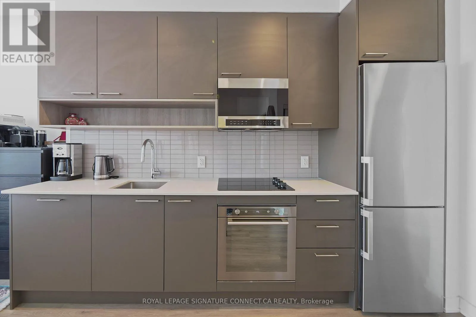 Old Bronte Rd/Dundas St Experience fresh and bright urban living in this south-facing one-bedroom suite at the highly anticipated Bronte Condos in Oakville. Spanning 540 square feet of thoughtfully designed open-concept space, this residence is flooded with natural light through nearly a full wall of windows in the sizeable bedroom, which also features a generous walk-in closet. The sleek, modern kitchen is accented with high-end finishes, and the living area transitions seamlessly to a spacious balcony offering stunning, unobstructed views of the city skyline and surrounding lush greenery. For added convenience, the suite comes complete with custom window coverings and a dedicated storage locker.Life at 3005 Pine Glen Road extends beyond the suite with an exceptional array of building amenities designed for every lifestyle. Residents have access to a state-of-the-art gym, a quiet library, and a sophisticated lounge and party room for entertaining. The outdoor experience is equally impressive, featuring a terrace with lounge seating, a cozy fire pit, and dining areas. With additional perks like a multi-purpose room and a dedicated pet spa, this building offers a premier living experience in a vibrant community. This is a perfect opportunity to enjoy a sophisticated, turn-key home in one of Oakville's most desirable new developments. includes all existing furniture (id:27476)
