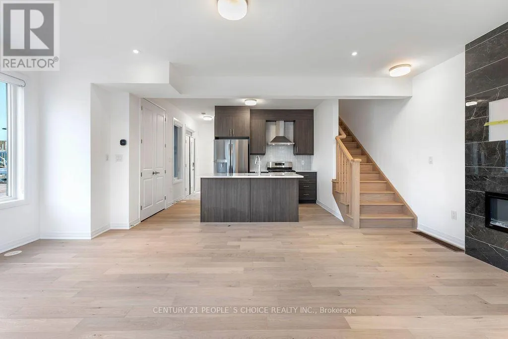 Sixth Line & Dundas St. E. Premium luxury living with over 4,000 sq. ft. of beautifully finished space, available for immediate occupancy! This new built corner two-storey townhome offers 9-ft ceilings on both levels and a modern open-concept layout with upgraded finishes throughout, including an elegant electric fireplace in the living area. The contemporary kitchen features quartz countertops, a spacious breakfast bar, and a large pantry providing ample storage. The finished basement includes one bedroom and one full bathroom - ideal for guests or extended family. The second floor offers a versatile Media /entertainment area with walk-out to a large private balcony, easily convertible into a second oversized bedroom. The stunning primary suite boasts a luxurious ensuite bath and walk-in closet. Conveniently located just minutes from schools, parks, shopping, Trafalgar retail amenities, transit, and more. Quick access to QEW, Hwy 403, and 407 makes commuting effortless. (id:27476)