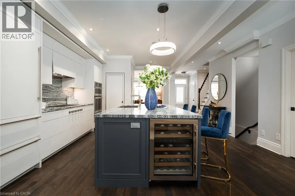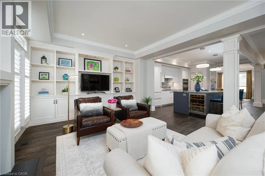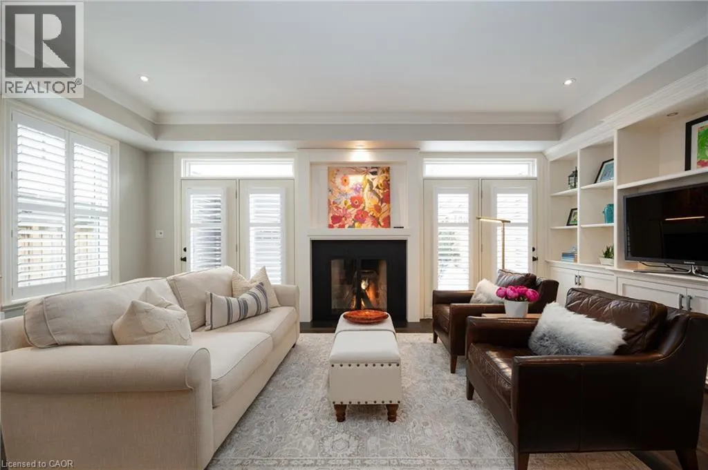 Head and Chisholm Nestled in the heart of downtown Oakville, this exceptional custom-built Cochren home offers an enviable lifestyle just steps from boutiques, fine dining, the marina, cafés, and performing arts venues. With every amenity within walking distance, it perfectly captures the charm and sophistication of downtown Oakville living. Built in 2006 with meticulous attention to detail, the residence showcases timeless finishes and refined craftsmanship throughout. Its exterior reflects the classic architectural character of the neighbourhood, blending seamlessly with its historic surroundings. A covered front porch welcomes you into a warm interior featuring rich hardwood floors and a thoughtful layout. The semi open-concept dining room is ideal for both intimate dinners and elegant entertaining. At the heart of the home, the gourmet kitchen flows into the family room with a cozy fireplace and custom built-ins. Cambria countertops, a centre island with seating for four, premium appliances, and a walk-in pantry combine beauty and function. French doors open to a private rear patio, perfect for summer evenings. A side entrance provides access to the driveway, ample parking, and a garage with extra storage. Upstairs offers three spacious bedrooms and two bathrooms, including a serene principal suite with a walk-in closet and spa-inspired ensuite. The finished lower level adds a fourth bedroom, full bath, and versatile recreation spaceâideal for guests, extended family, or a home office. (id:27476)
