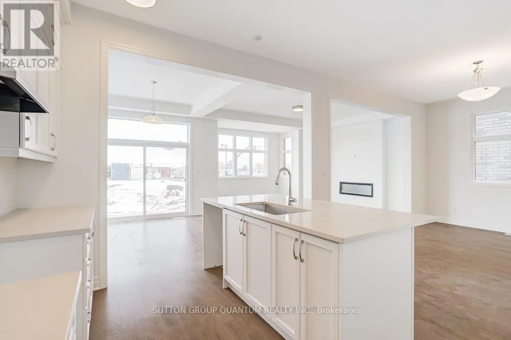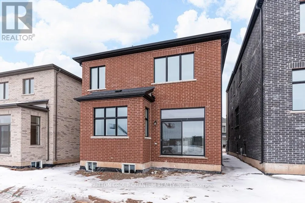 Cross Streets: Dundas St East btw Trafalgar and Ninth Line. ** Directions: Dundas Street East - North on John McKay Blvd -RH on Pelican Pass-LH on Wolverine Path -First RH turn is Black Bear Trail. Located at Dundas St. E. and Trafalgar in Joshua Creek, this Mattamy "Reign" model (English Manor elevation) offers 2,758 sq. ft. including 70 sq. ft. open to below, with geothermal energy for long-term efficiency and comfort. Solid brick with stone skirt exterior and single car garage. The main floor features a welcoming foyer open to above, a spacious front walk-in closet to keep daily life organized, and a mudroom with direct garage access. A main floor office/den provides flexibility for work or study. The principal living area is beautifully open and connected - kitchen, dining and family room combined for bright, airy everyday living and easy entertaining. The kitchen is finished in timeless neutral tones with white cabinetry, chrome accents and linen cream quartz counters. Bathrooms are finished in white with Blanco Maple quartz counters and 12" x 24" white floor tiles. Hardwood flooring runs throughout the principal rooms in a neutral Lauzon Talpa finish. Upstairs, the large 14' x 14' primary bedroom comfortably accommodates full bedroom furniture and features a thoughtfully designed "quiet wall" - a clean, uninterrupted wall ideal for anchoring the room and creating a calm focal point. The laundry room is ideally located between the bedrooms for everyday convenience. A Home Office Package is available in select bedrooms and dens (please speak to the Design Consultant for details). Interior doors are Carrara style with two square panels, adding a clean, transitional touch throughout. **Eligible First Time Home Buyers may be able to receive up to an additional 13% savings on the purchase of this home through the proposed Government FTHB Rebate Program** (id:27476)
