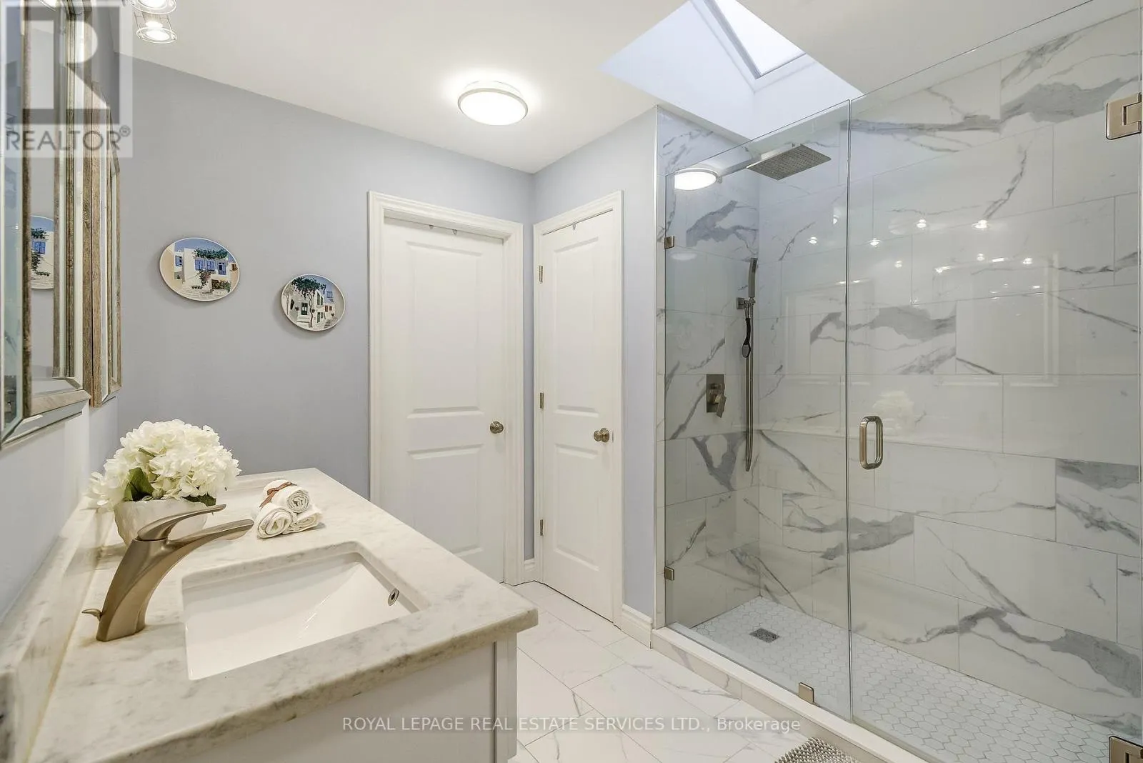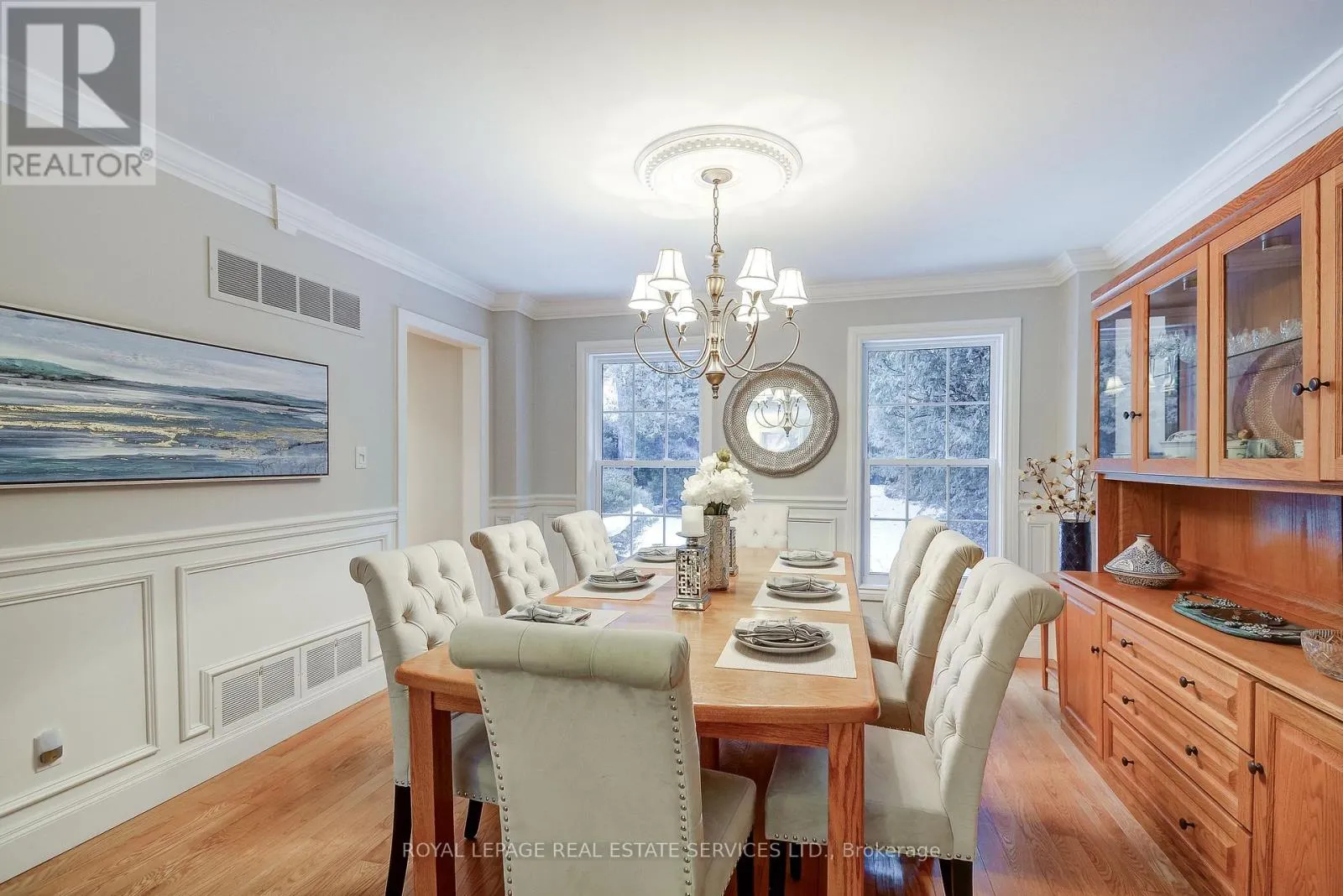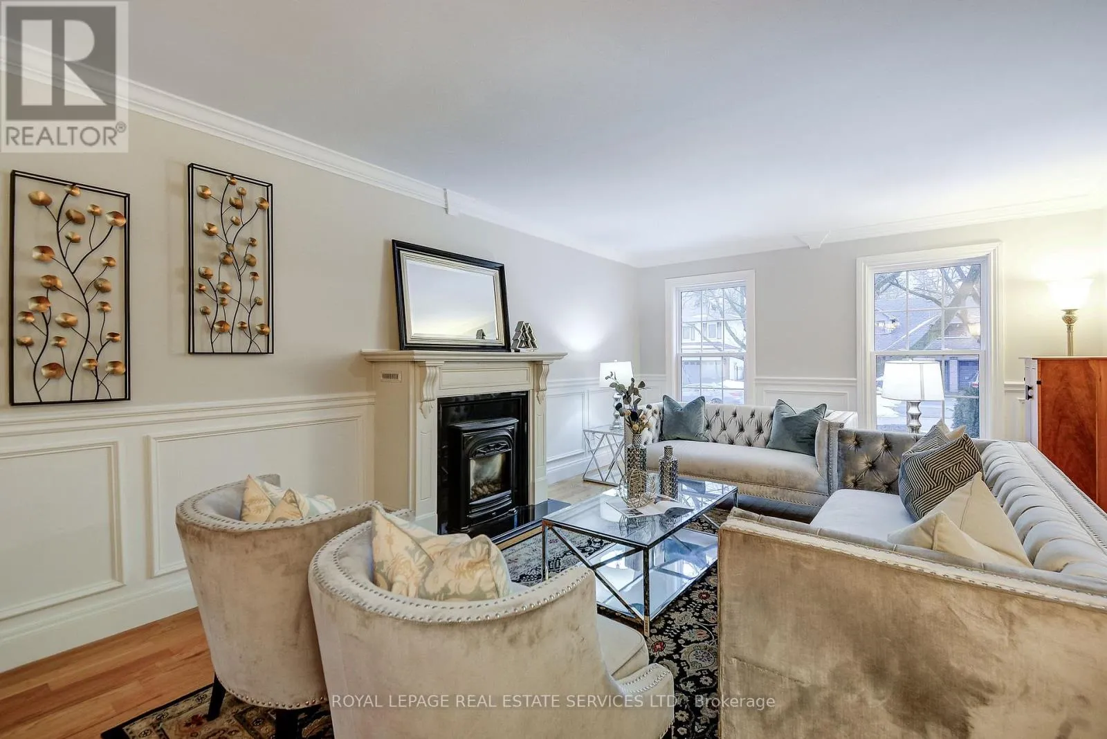 Cross Streets: Lakeshore Rd E & Ford Dr. ** Directions: Lakeshore Rd E to Devon Rd to Canso Rd to Digby Rd. Nestled on a picturesque tree-lined street in highly sought-after South Oakville, this beautifully updated 4-bedroom family home offers exceptional convenience just minutes to the QEW, 403, 407, GO Train, Downtown Oakville and Lake Ontario parks. The main level features a welcoming foyer, formal living and dining rooms with hardwood flooring, crown molding, chair rail and upgraded baseboards. The renovated kitchen is equipped with built-in appliances, gas cooktop, built-in oven and microwave, custom cabinetry, stone counters, ceramic backsplash, pot lights and a Centre island with breakfast counter. The kitchen overlooks the family room with hardwood floors, wood-burning fireplace and French doors leading to the rear yard and patio. A practical mudroom with slate floors, double closet, garage access and 2-piece bath completes the main level. Upstairs offers hardwood throughout, California shutters and four spacious bedrooms. The primary suite includes a walk-in closet plus additional closets and a renovated 4-piece ensuite with double sinks and large walk-in shower. The main bath has been fully updated with double sinks, separate tub and walk-in shower. The finished basement features enlarged upgraded windows for added natural light, a spacious recreation room with pot lights and wood flooring, walk-down staircase, potential 5th bedroom or storage space, and a large laundry area with additional storage. An exceptional opportunity in one of Oakville's most desirable neighbourhoods. (id:27476)