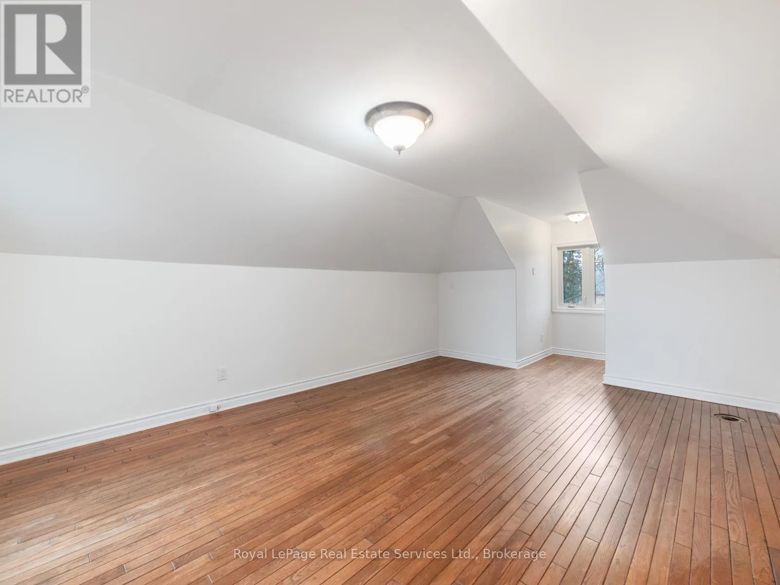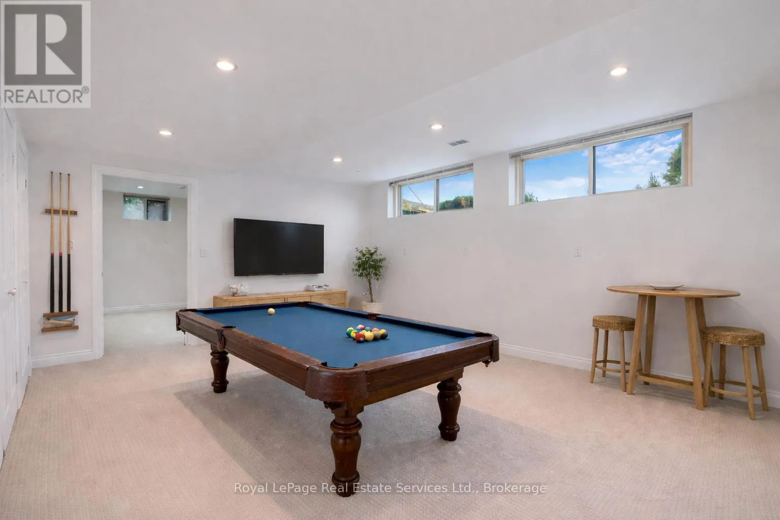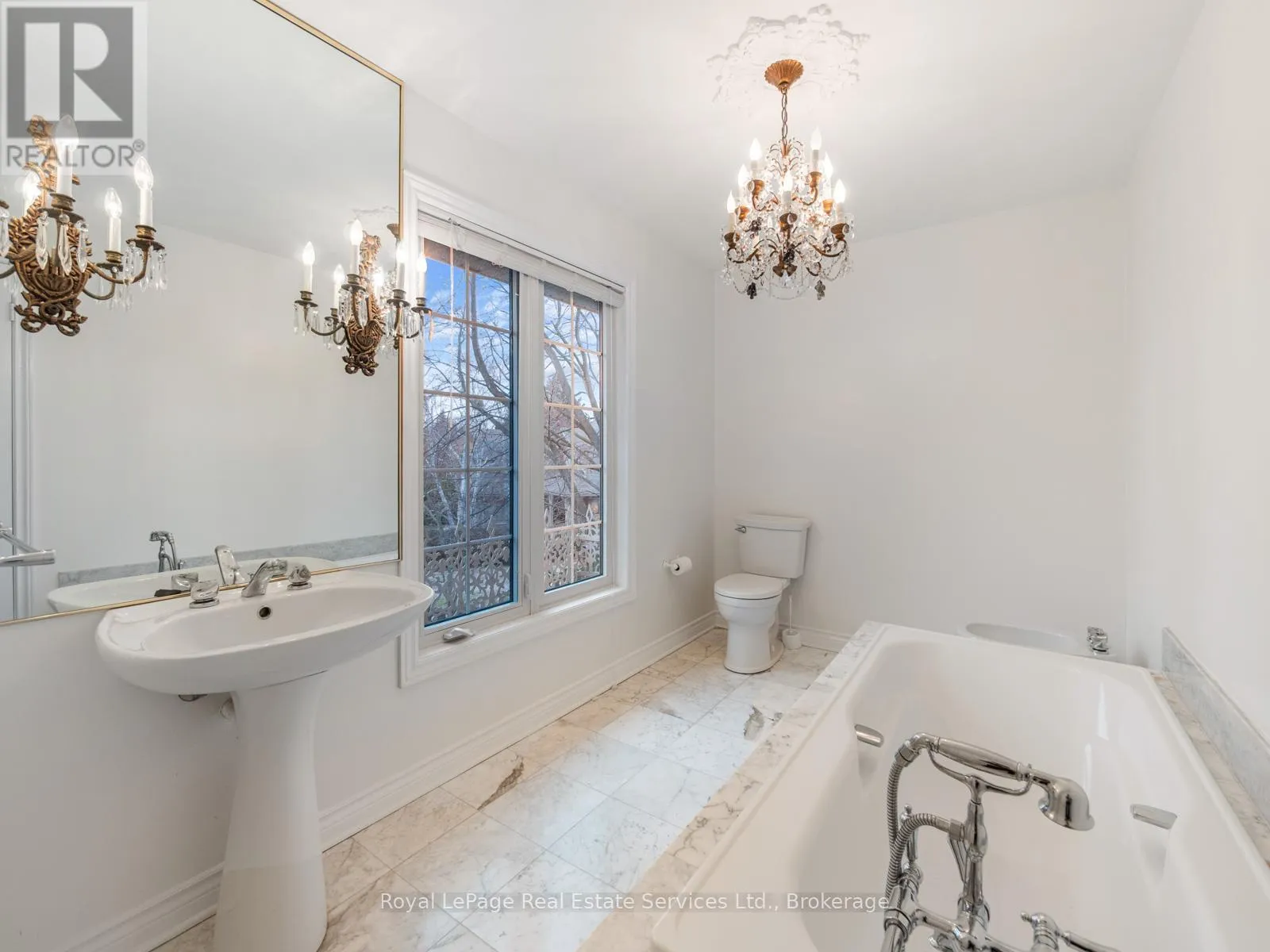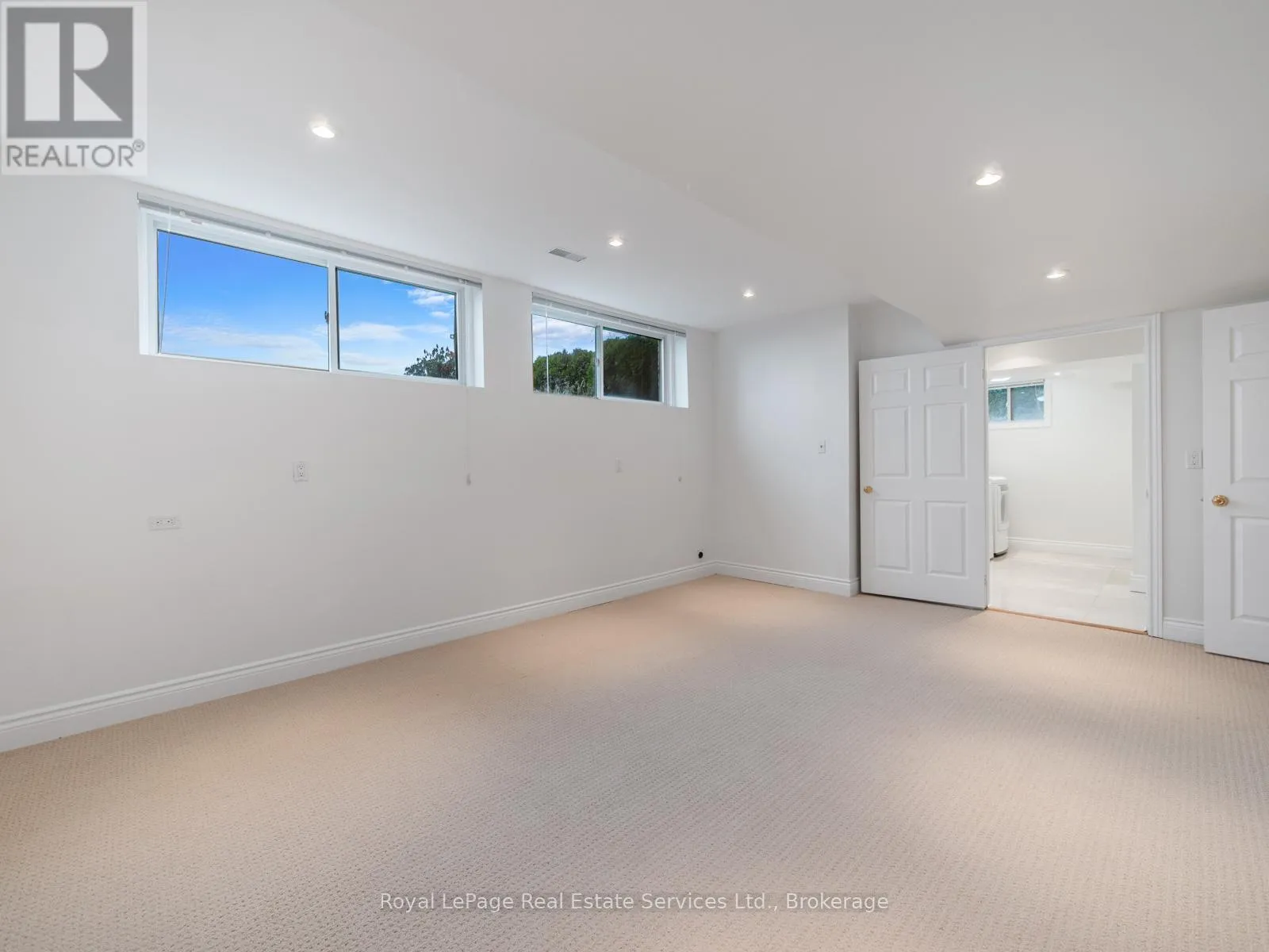 Lakeshore Road W to Shelburne Pl. Spectacular lakefront property with 93' frontage on Lake Ontario. Located on a quiet, mature cul-de-sac, this custom built, family home offers 4+1 Bedrooms, 3.5 Baths with over 2800SF above-grade + 1400 SF Finished Lower Level. Architecturally designed with wall-to-wall windows overlooking the lake, solid brick construction with clay tile roofing, this home was built to last. 9 and 10 ceilings on the main floor. Oak hardwood floors throughout both levels. Grand entrance foyer with oak staircase. Beautiful Living Room with fabulous antique marble fireplace surround with gas insert open to Dining Room with wall to wall patio doors to the terrace with incredible lake views. Fabulous Kitchen/Breakfast Room is a blank canvas with the perfect space to install the waterfront Kitchen of your dreams. Walk-outs to both decks and open to the the Family Room with stunning marble fireplace with gas insert. The main floor features a mudroom with side entry and inside entry from full-sized two-car garage. The Primary suite features oversized windows and a walk-out to second floor balcony with outstanding lake views, luxury ensuite bathroom and walk-in closet. Two more Bedrooms overlook the lake with oversized windows. The front Bedroom opens to a bonus room above the garage which could be handy as a Den or quiet retreat. The Lower Level has excellent ceilings height, good windows and features 1Bedroom, 3-Piece Bathroom, Recreation Room, Den, Laundry Room, storage and more. Beautifully landscaped and maintained property fully fenced with wrought iron gate access to the lake. Cobblestone driveway accommodates 4 cars. Outstanding value on Lake Ontario. A must see (id:27476)