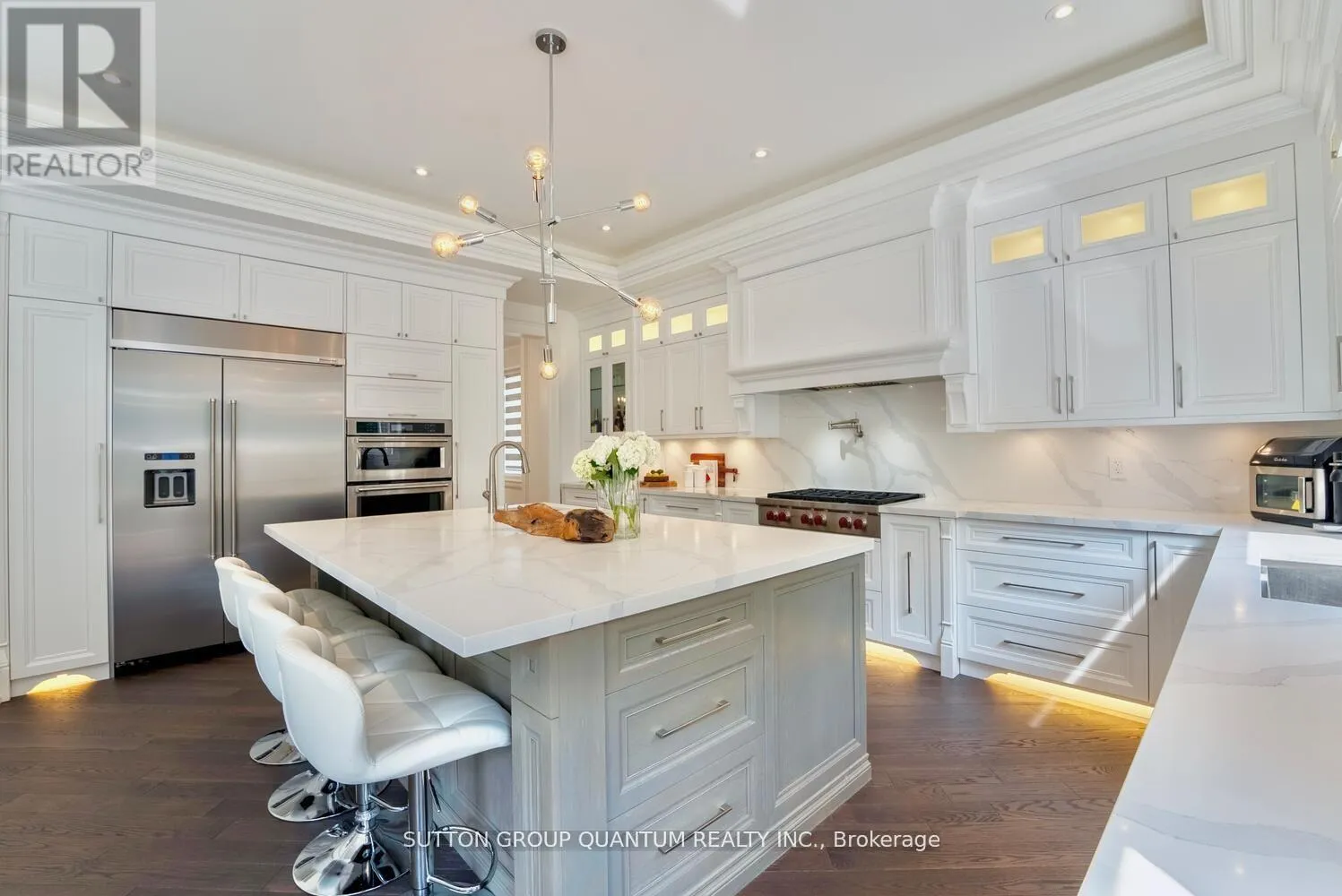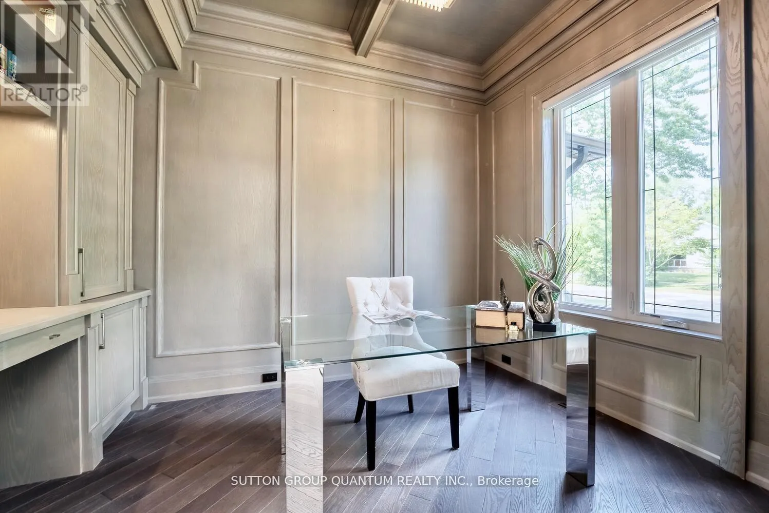 Upper Middle Rd W/Pembroke Dr Experience unparalleled luxury in this exquisite custom-built home, completed in November 2020. Spanning around 5,000 sq ft, this residence features soaring 10-foot coffered ceilings and a unique walk-up basement apartment with its own kitchen and laundry perfect for an in-law or nanny suite. Step inside to a welcoming 24-foot foyer filled with natural light, complemented by elegant glass railings and rich hardwood flooring. The gourmet kitchen, equipped with premium appliances and a large island, seamlessly connects to the inviting family room, complete with an electric fireplace. Upstairs, the luxurious primary suite offers a tranquil escape with a spa-inspired ensuite and a spacious walk-through closet. Each additional bedroom is designed with comfort and privacy in mind, featuring its own ensuite and walk-in closet. The lower level is an entertainers dream, with a dedicated theatre room/gym equipped with a projector, and smart home technology for lighting, sound, and climate control. High end speaker system throughout including outdoor. Smart sprinkler system front and backyard. 10ft ceilings all three levels. Central vacuum throughout & complete security system. The private backyard is an oasis, featuring an above-ground swimming pool and two expansive patio areas perfect for hosting memorable gatherings. Located on a quiet street, this beautiful home offers a peaceful setting away from busy highways and school traffic, providing added privacy and reduced noise while still maintaining convenient access to nearby amenities. Don't miss out! (id:27476)