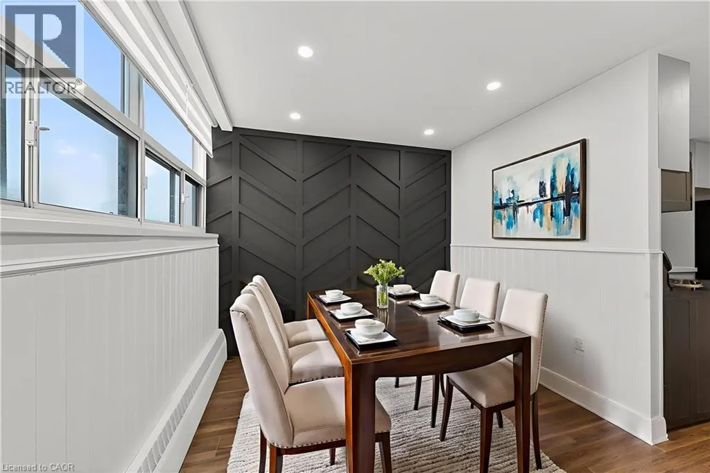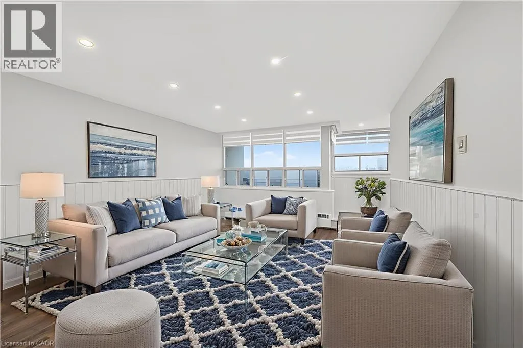 At the intersection of Kerr Street and Bond Street (traffic lights), look for the long driveway on the west side of Kerr. Enter there and proceed to 212 Kerr Street. Visitor parking is located at the front of the building â please park there upon arrival. Corner Unit Renovation, Steps to the Lake. Kerr Village Living. Imagine your morning: coffee from Kerr Street Cafe, then a 5-minute walk to the Lake Ontario shoreline at Tannery Park. Your evening: dinner at Pasqualeâs Trattoria or Narenj, two of dozens of independent restaurants lining Kerr Street, all within steps of your front door. This is what Kerr Village living actually feels like, and this immaculate 2-bedroom corner unit is your front-row seat. Completely reimagined in 2026. Quartz countertops meet a slab backsplash and custom cabinetry in a kitchen that doesnât announce itself, it performs. Bosch stainless steel appliances stay the course. Wide plank engineered hardwood floors flow seamlessly through living and bedrooms. The marble-style bathroom feels like a sanctuary, not an afterthought. Light doesnât just enter this unit; it lives here. South/east-facing windows mean natural light from sunrise to sunset. The corner layout means minimal shared walls, so your space actually breathes. The private balcony extends your living space outdoors and becomes your third room by summer. The Kerr Village advantage: Oakville GO is a short bus ride or quick drive away. Lakeside Parkâs trails and beaches anchor your weekends. Independent coffee roasters, a farmersâ market, and a culinary scene spanning Italian, Persian, and beyond. Itâs that rare neighbourhood where you know your café owner by name. Condo fees cover heat, hydro, water, party room, and secure underground parking. Status certificate available upon request. This wonât wait. Schedule your private showing today. (id:27476)