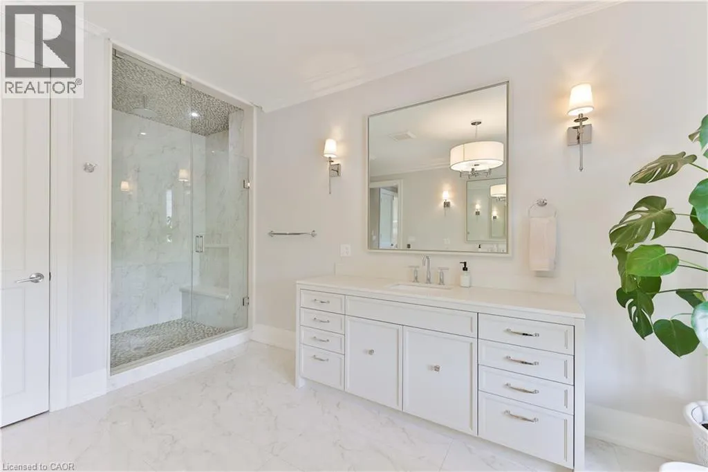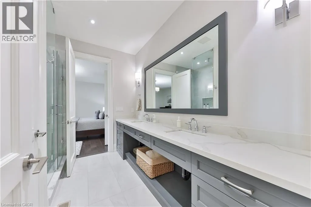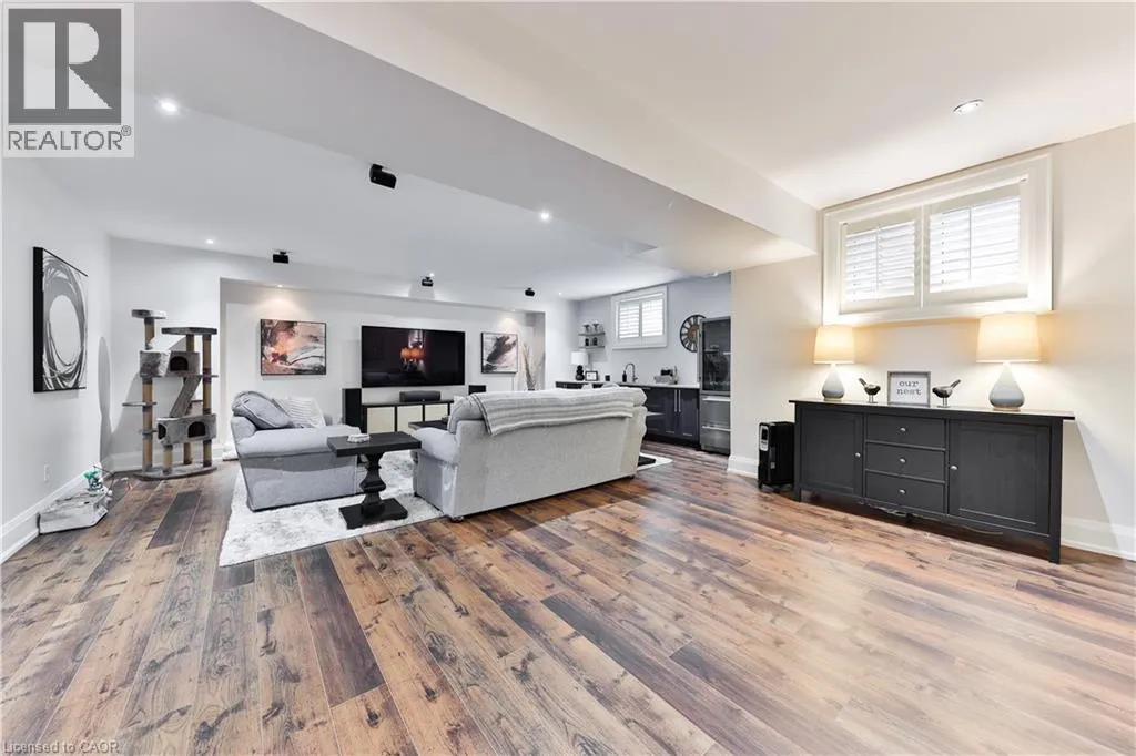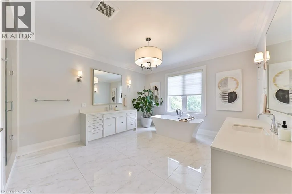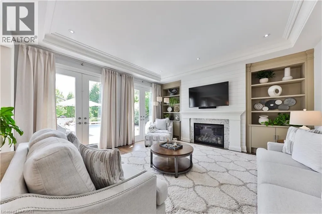 West of 3rd at Tansley A landmark custom residence of exceptional scale and architectural presence, gracefully set back on a quiet West Oakville crescent just 2 km to the lake and a short walk to Bronte Village. Its beautifully composed façade creates striking curb appeal, while coveted south facing rear exposure floods the home with natural light from morning through sunset, offering over 6,100 sq. ft. of refined, open living space. Built in 2018 and impeccably maintained, the home presents as pristine inside and out. Wide plank hardwood flooring flows throughout, while extensive custom millwork adds architectural depth. At its heart, the open concept kitchen, breakfast area, and family room span the rear of the home, framed by expansive windows and French doors overlooking the private gardens. A well appointed mudroom with rear access and adjoining powder room adds convenience, ideal for poolside living. The result is a bright, airy space designed for entertaining and comfortable family life. Beyond the main living area, the level includes a formal dining room, sitting room, and private office, offering flexibility and separation. Upstairs, the primary suite is a serene retreat with a spa inspired ensuite and generous dressing area. Three additional bedrooms are served by a spacious second floor laundry room. The finished lower level offers recreation space with wet bar, gym, sauna, additional bedroom, and full bath, ideal for guests or multigenerational living. Outdoors, south facing gardens enjoy uninterrupted sunlight. Premium composite decking, a heated saltwater pool with waterfall, tiered lounging areas, mature hedging, ambient lighting, and multi zone in ground irrigation create a private setting for long summer evenings. A true double garage with tandem depth accommodates two SUVs plus a third vehicle or substantial storage. (id:27476)