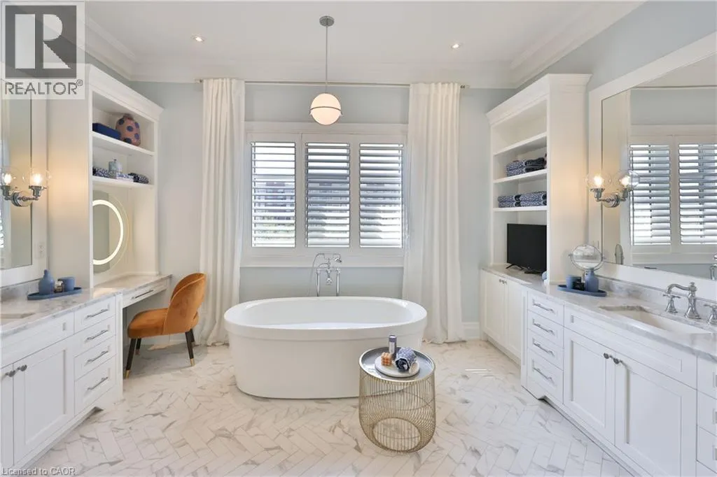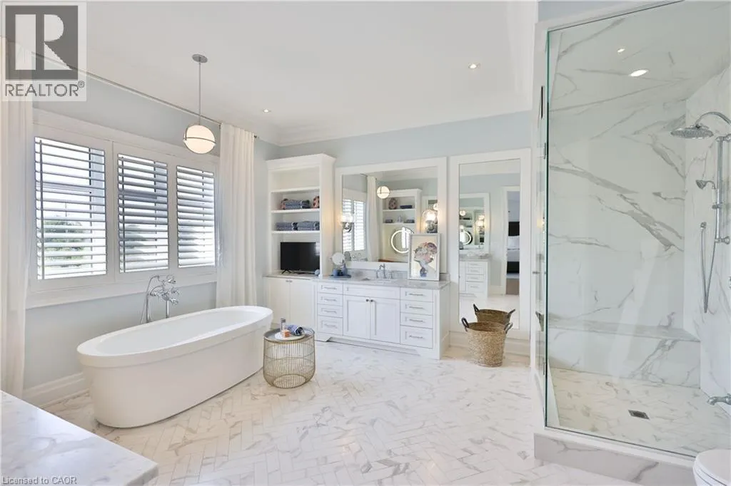Wheat Boom Dr / Daniel Way Welcome to 3100 Daniel Way, The Rockefeller, Fernbrookâs largest model in the coveted SevenOaks community. Magazine featured and enhanced with over $500,000 in curated upgrades, this architectural statement offers 3,650 square feet above grade plus 1,782 square feet in the finished lower level on a premium lot backing onto lush green space. Influenced by a design professional known for bold yet harmonious interiors, the home reflects rare material cohesion and intentional detail. The main level showcases dramatic 12 foot ceilings creating gallery like scale, framed by Italian porcelain flooring in the foyer and wide plank engineered hardwood flowing through the principal spaces with refined transitions in service areas. Custom millwork and layered wall detailing introduce formal living and dining rooms before opening to the family room, where a gas fireplace with illuminated built ins anchors the space. The chefâs kitchen features Italian Carrara marble, top tier Thermador appliances, tailored cabinetry, cohesive hardware and statement lighting over an oversized island connecting to the sunlit breakfast area with walkout to the stone patio. Elaborate yet restrained wall features elevate each room, while bathrooms present bespoke tile work and spa inspired finishes that feel curated rather than upgraded. The finished lower level delivers a bold and confident aesthetic with rich tones and texture, extending the design narrative with a fifth bedroom, recreation lounge with wet bar, three piece bath and climate controlled wine cellar. Natural stone patio with built in BBQ overlooks tranquil green space. EV outlet in garage. Quiet street near top schools, parks, shopping and highways. Architectural, cohesive and unforgettable. (id:27476)