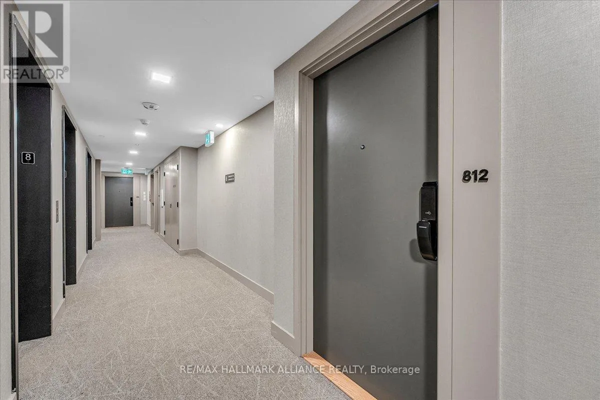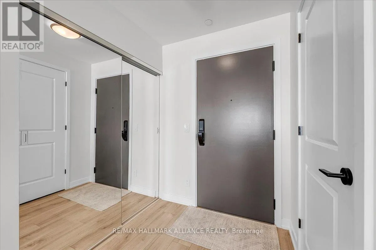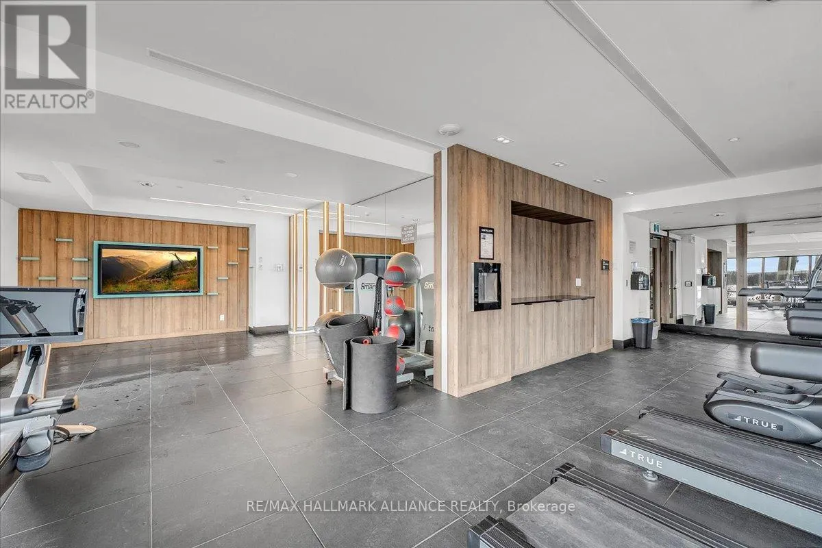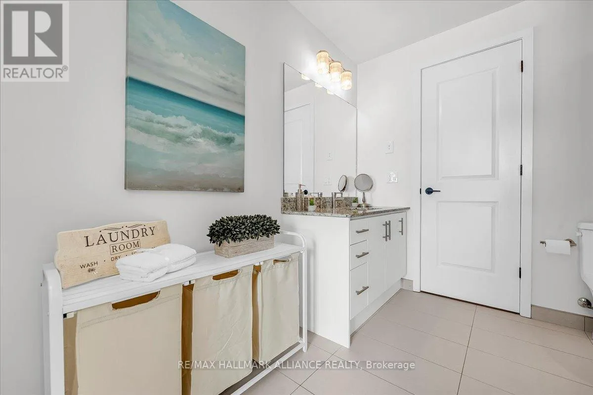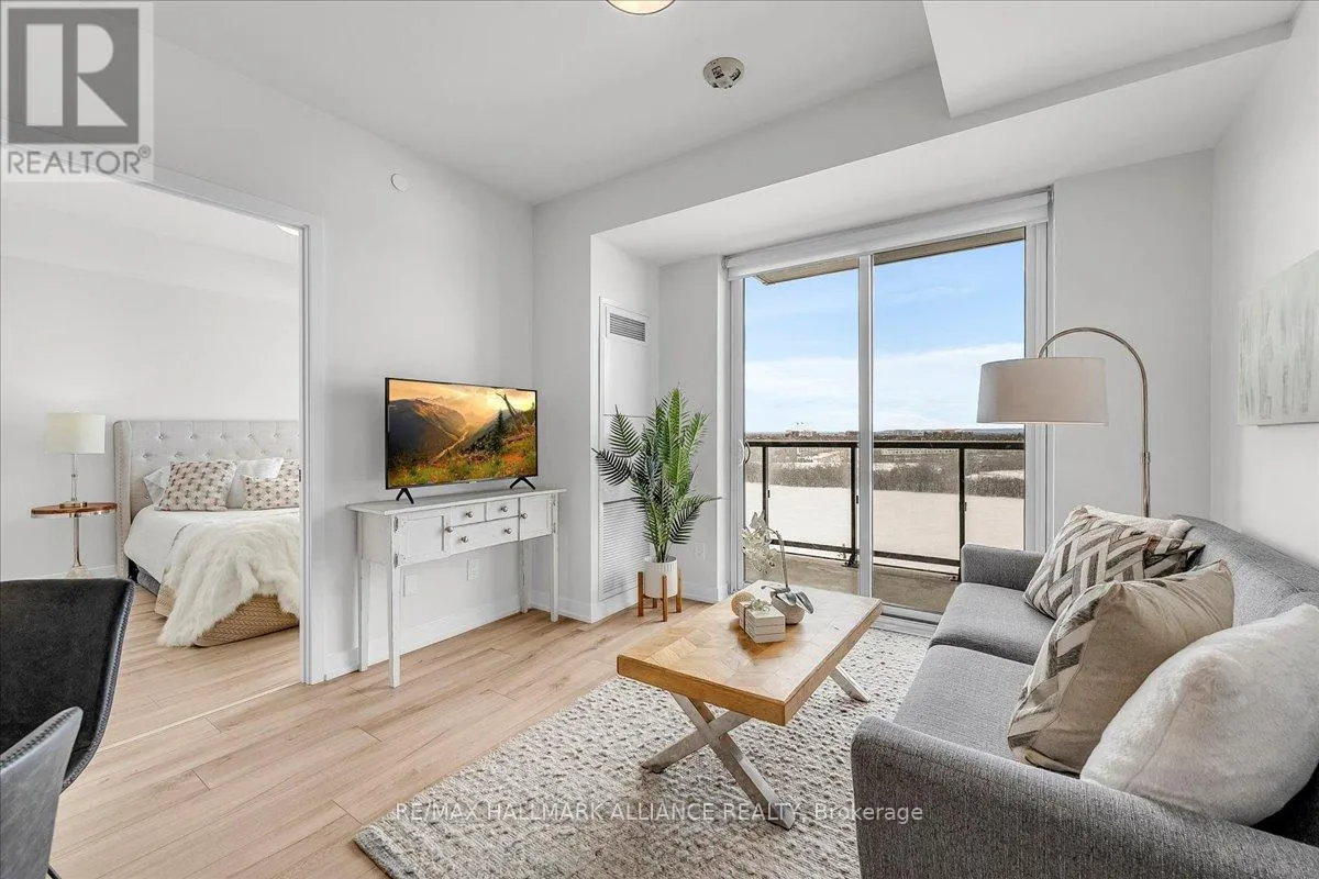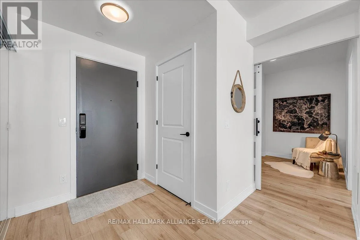 Cross Streets: Trafalgar & Dundas. ** Directions: Off Trafalgar, north of Dundas. Countryside & water views await in this gorgeous, newly upgraded residence, the LARGEST 1+Den suite in the building, offering an expansive, functional *accessible* layout with 34" doors that lives like a true 2-bdrm. Set on a higher floor with unobstructed panoramic views, this rare offering boasts almost 700 sqft of beautifully upgraded interior space plus a 55 sqft sun-soaked balcony (745 sqft total). Enjoy breathtaking Niagara Escarpment sunsets, tranquil greenspace, southern water views, & sweeping vistas over Oakville from home. Flooded with natural light through floor-to-ceiling windows and complemented by 9 ft ceilings, the open-concept living, dining & kitchen area exudes warmth and modern style. The white kitchen features a breakfast island with bar seating, quartz countertops, designer backsplash, soft-close cabinetry, built-in microwave & stainless-steel appliances, ideal for daily living and entertaining. Rare for a 1+Den, this suite fits a full dining and living room setup in addition to island seating, creating excellent flow for hosting and family meals. Luxurious flooring, decorative fixtures & upgraded window coverings, including blackout treatments in the primary and light-filtering shades in living areas, enhance comfort throughout. The queen-sized primary offers stunning views, an oversized walk-in closet with organization & semi-ensuite access to the upgraded oversized bath. The generous den (10'3" x 8'6"), the largest in the building, includes a custom sliding barn door & semi-ensuite access, perfect as a home office, guest suite, or easily converted 2nd bdrm. Located in luxurious Oakvillage by Minto, enjoy premium amenities: gym, party room & rooftop terrace with BBQs & skyline water views. Steps to restaurants, shops, Walmart, Superstore, Longo's, Starbucks, banks, parks, trails, top-ranked schools & transit; minutes to Highways 403/407 & GO. A rare opportunity to own one of the building's best layouts with exceptional views, it's a must-s (id:27476)