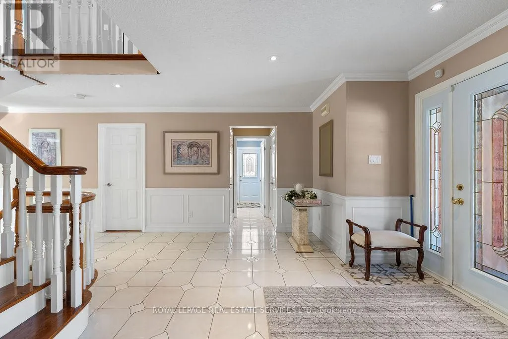 Cross Streets: Upper Middle Rd E & Grosvenor St. ** Directions: Valleybrook Dr & Creekside Dr. Welcome to Creekside Dr in the prestigious Wedgewood Creek community. Situated on a premium ravine lot beside a catwalk, this beautifully renovated detached home offers over 4,000 sqft of finished living space. Enjoy breathtaking unobstructed views of Valleybrook Park from your living room. A walk-out basement provides seamless access to the backyard for exceptional indoor-outdoor living. The bright main level has a welcoming foyer with double closet, formal living and dining rooms with bay windows and new hardwood flooring. A spacious eat-in kitchen features granite countertops, a peninsula island, custom cabinetry, and stainless steel appliances. Off the kitchen, a generous balcony with composite decking (2001) overlooks the professionally landscaped yard with interlock walkway and back garden - a perfect space to entertain or enjoy the tranquil ravine setting. Equipped with hydro, the garden shed is ready for projects or outdoor work. The adjoining family room offers a cozy gas fireplace and peaceful backyard views. A private office, convenient laundry room with garage and exterior access and a powder room complete this level. No compromises here - a full two-car garage ensures ample space for vehicles and storage. Upstairs, the large primary retreat comfortably fits a king sized bed and features a walk-in closet. Unwind after a long day in the 5-piece ensuite with an air bath tub, heated towel rack and walk-in shower. Three additional well-sized bedrooms, two with walk-in closets and a full main bath accommodates a family. New hardwood stairs and railings add elegance throughout. The finished walk-out basement with direct patio access to the backyard includes a large rec room with gas fireplace, second kitchen, bedroom, and 3-piece bath-perfect for extended family. Close to parks, trails, schools, shops, restaurants, transit and recreation facilities, this home offers convenience in one of Oakville's most sought-after neighbourhoods. (id:27476)