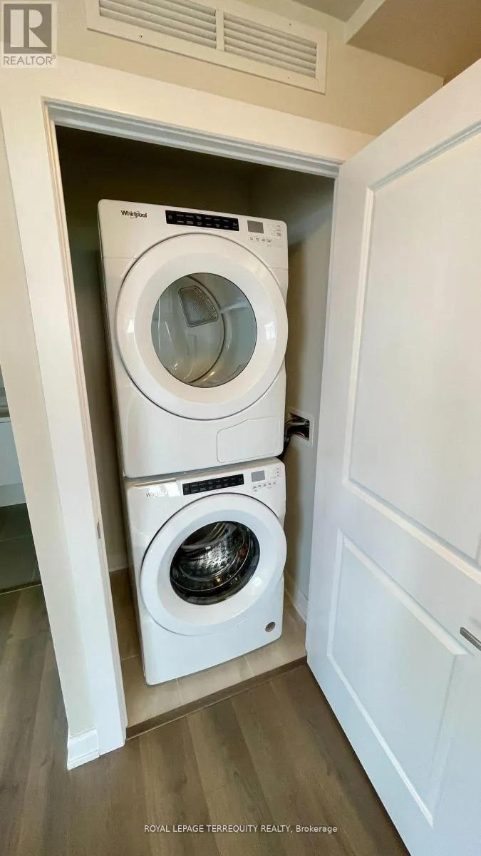 Cross Streets: Trafalgar & Dundas. ** Directions: Head North on Dundas & East On Threshing Mills Blvd. Exceptional Corner Suite at Upper West Side Condos by Branthaven - Joshua Meadows. Step into contemporary elegance with this bright and spacious 960 sq. ft. corner unit, thoughtfully designed for modern living. Located in the highly sought-after Upper West Side Condos, this 2-bedroom, 2-bathroom residence offers a rare combination of functionality, style, and comfort. This open-concept suite features 9-foot ceilings, large South East facing windows that flood the space with natural light, and a private balcony, perfect for relaxing or entertaining. The timeless white kitchen boasts generous cabinetry, stainless steel appliances, and a sleek, modern aesthetic that complements any décor. Full-sized in-suite laundry adds everyday convenience. Equipped with SmartONE home technology, enjoy features such as keyless digital entry, integrated smart locks, and a geothermal heating and cooling system-offering energy efficiency and year-round climate control for peace of mind. Included with the unit: TWO (2) side by side underground parking spaces. One secure storage locker. Residents have access to resort-style amenities, including: Stylish social lounge with an entertainment kitchen, Yoga studio and a fully equipped fitness centre, Impressive 11th-floor chef's kitchen and rooftop terrace with panoramic views. Perfectly situated in the heart of North Oakville, this condo is just steps away from shopping centres, restaurants, grocery stores, parks, and public transit-offering a truly walkable, connected lifestyle in a serene and upscale community. This is an ideal opportunity for discerning buyers seeking a turn-key home that blends convenience, smart design, and elevated urban living. (id:27476)