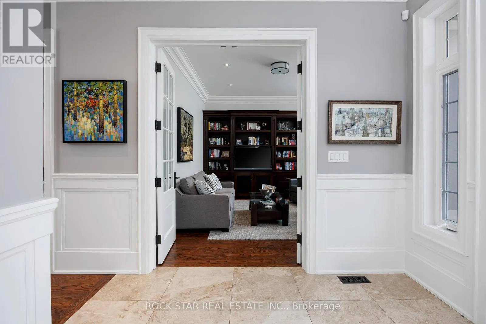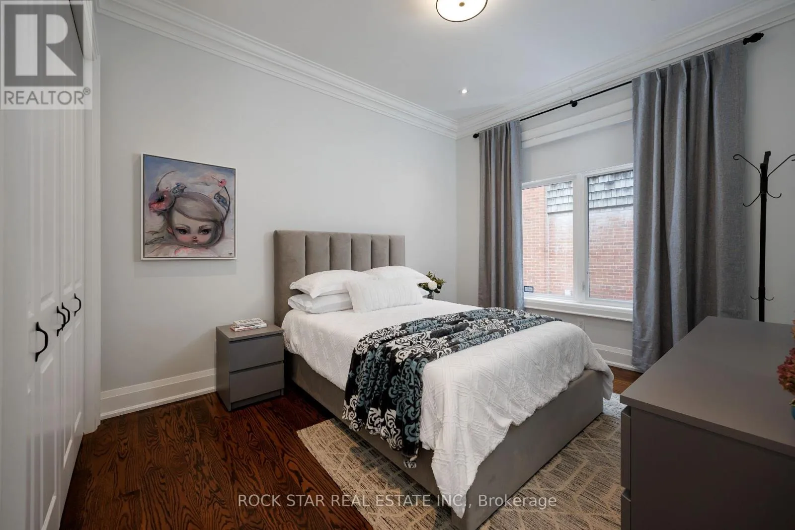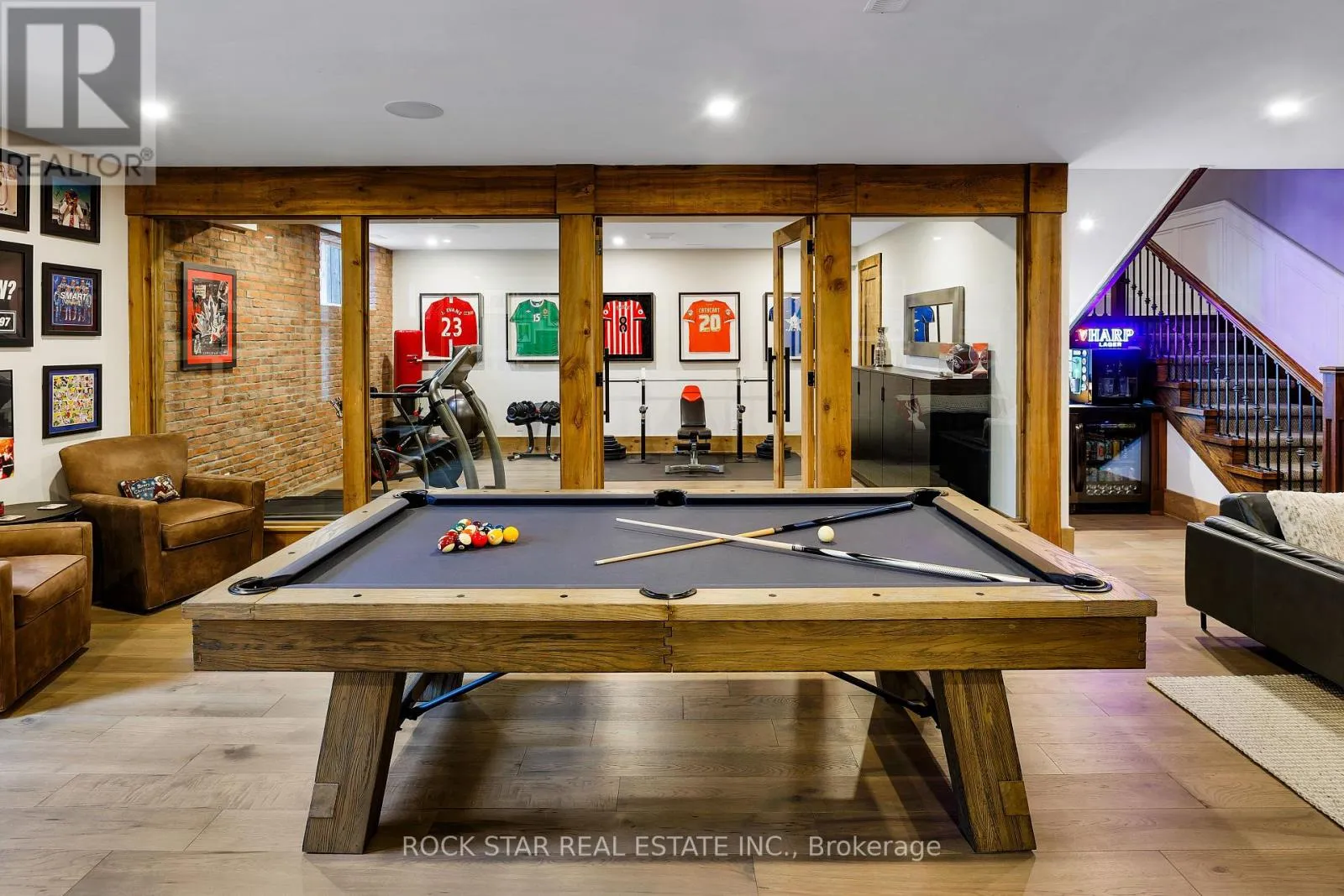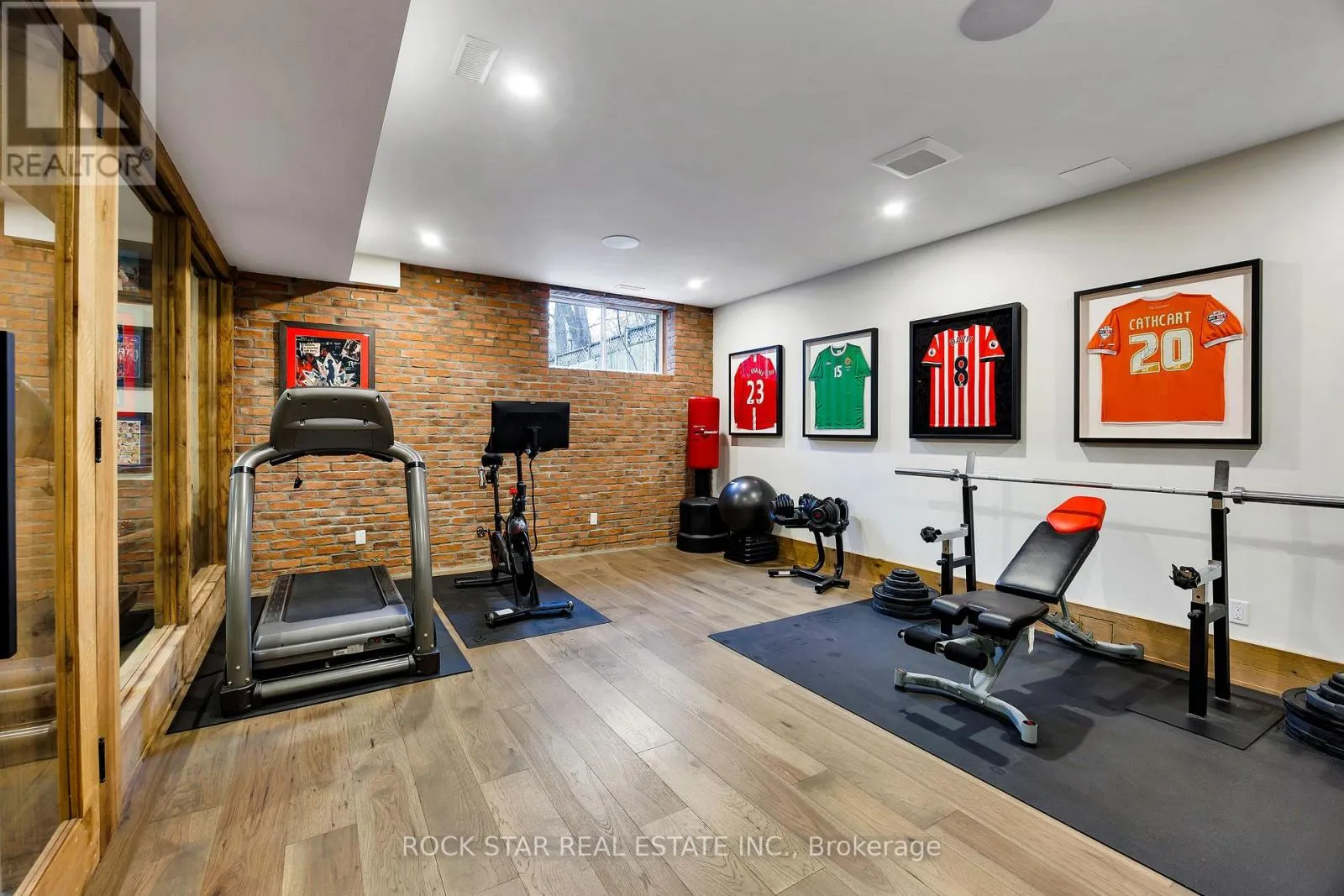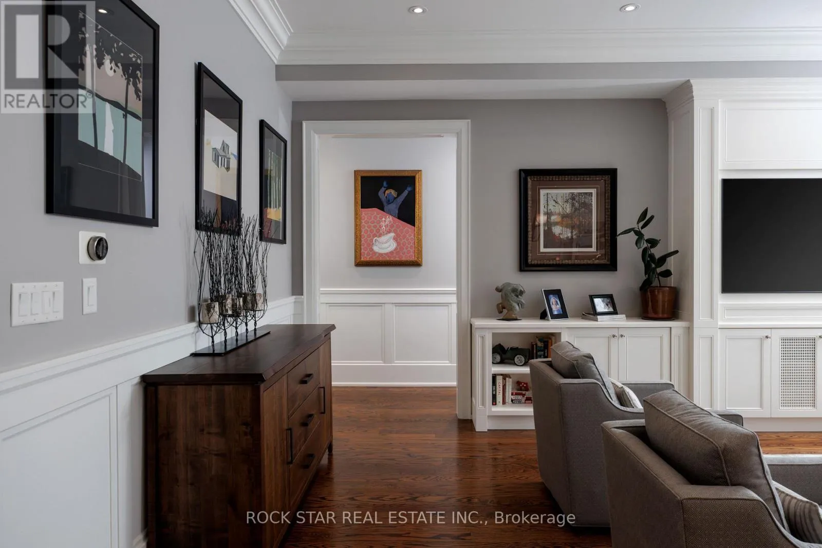 Rebecca / Queen Mary / Highland Experience the pinnacle of refined easy living. This custom-built Bungaloft feels like your own private sanctuary steps from the heart of town. Set on a sun-filled 60x145 ft south-facing lot within walking distance of Downtown Oakville, this residence boasts over 5,850 sq ft of finished living space designed for today's evolving family. Lofty 10ft ceilings, rich hardwood floors, and gorgeous millwork define the open-concept main level, where a chef-grade kitchen and Great Room seamlessly connect to a covered porch. Unique to this floor plan are two main-floor bedrooms, including a sumptuous primary retreat and a second guest suite with ensuite, offering rare accessibility and convenience. The lower level is a showstopper-a "Distillery" inspired entertainment haven featuring exposed brick, a wine cellar, gym, and an 18-speaker home theatre, all flooded with light from the walkout to the backyard. With extensive hardscaping and unmatched proximity to shops, restaurants, and lakeside promenades, this is where timeless luxury meets vibrant urban living (id:27476)