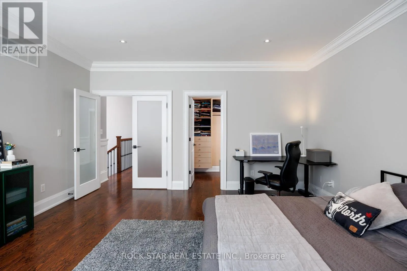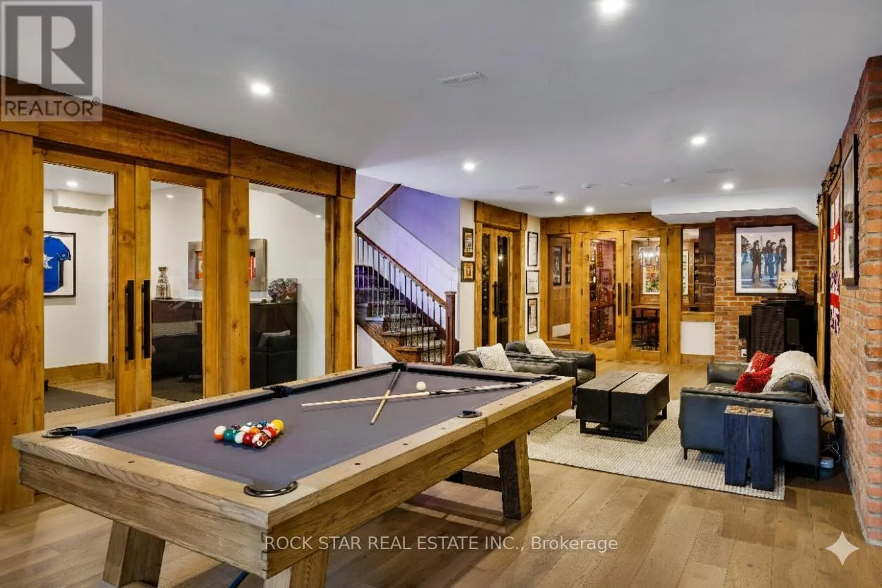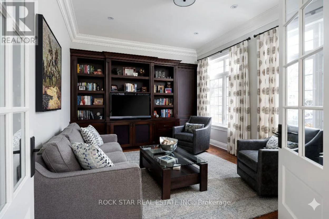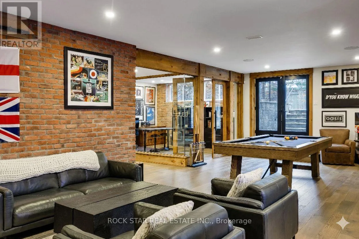 Rebecca / Queen Mary / Highland Experience the pinnacle of refined easy living. This custom-built Bungaloft feels like your own private sanctuary steps from the heart of town. Set on a sun-filled 60x145 ft south-facing lot within walking distance of Downtown Oakville, this residence boasts over 5,850 sq ft of finished living space designed for today's evolving family. Lofty 10ft ceilings, rich hardwood floors, and gorgeous millwork define the open-concept main level, where a chef-grade kitchen and Great Room seamlessly connect to a covered porch. Unique to this floor plan are two main-floor bedrooms, including a sumptuous primary retreat and a second guest suite with ensuite, offering rare accessibility and convenience. The lower level is a showstopper-a "Distillery" inspired entertainment haven featuring exposed brick, a wine cellar, gym, and an 18-speaker home theatre, all flooded with light from the walkout to the backyard. With extensive hardscaping and unmatched proximity to shops, restaurants, and lakeside promenades, this is where timeless luxury meets vibrant urban living (id:27476)