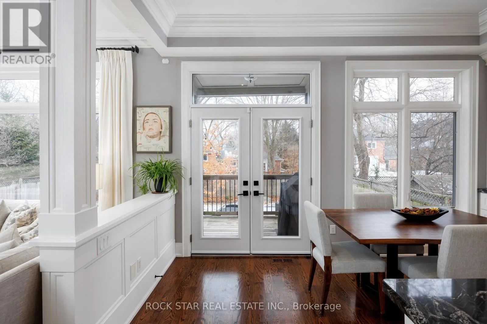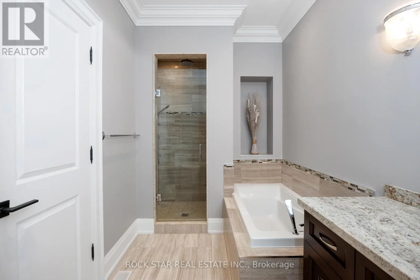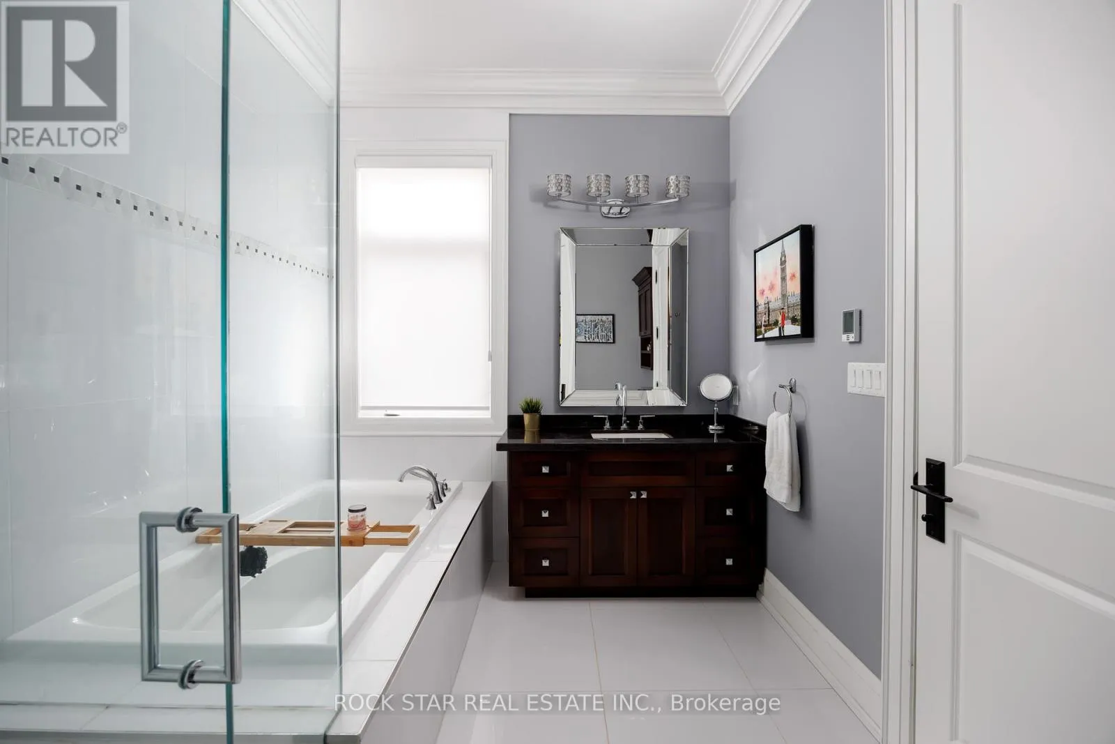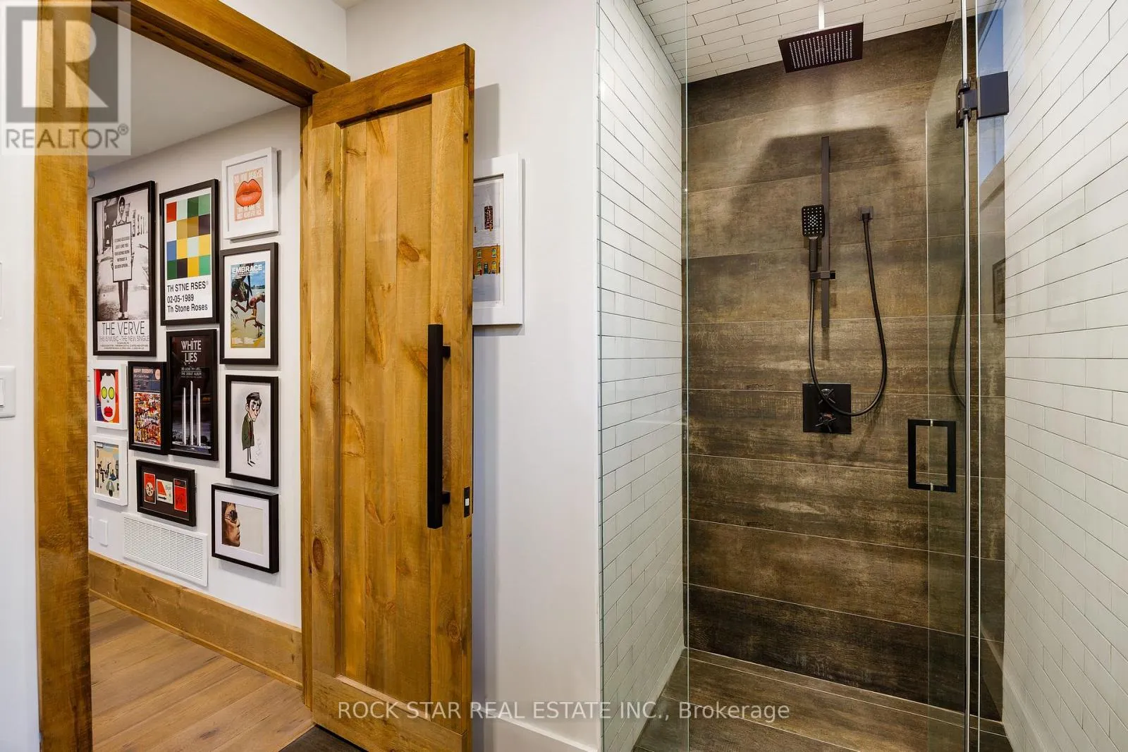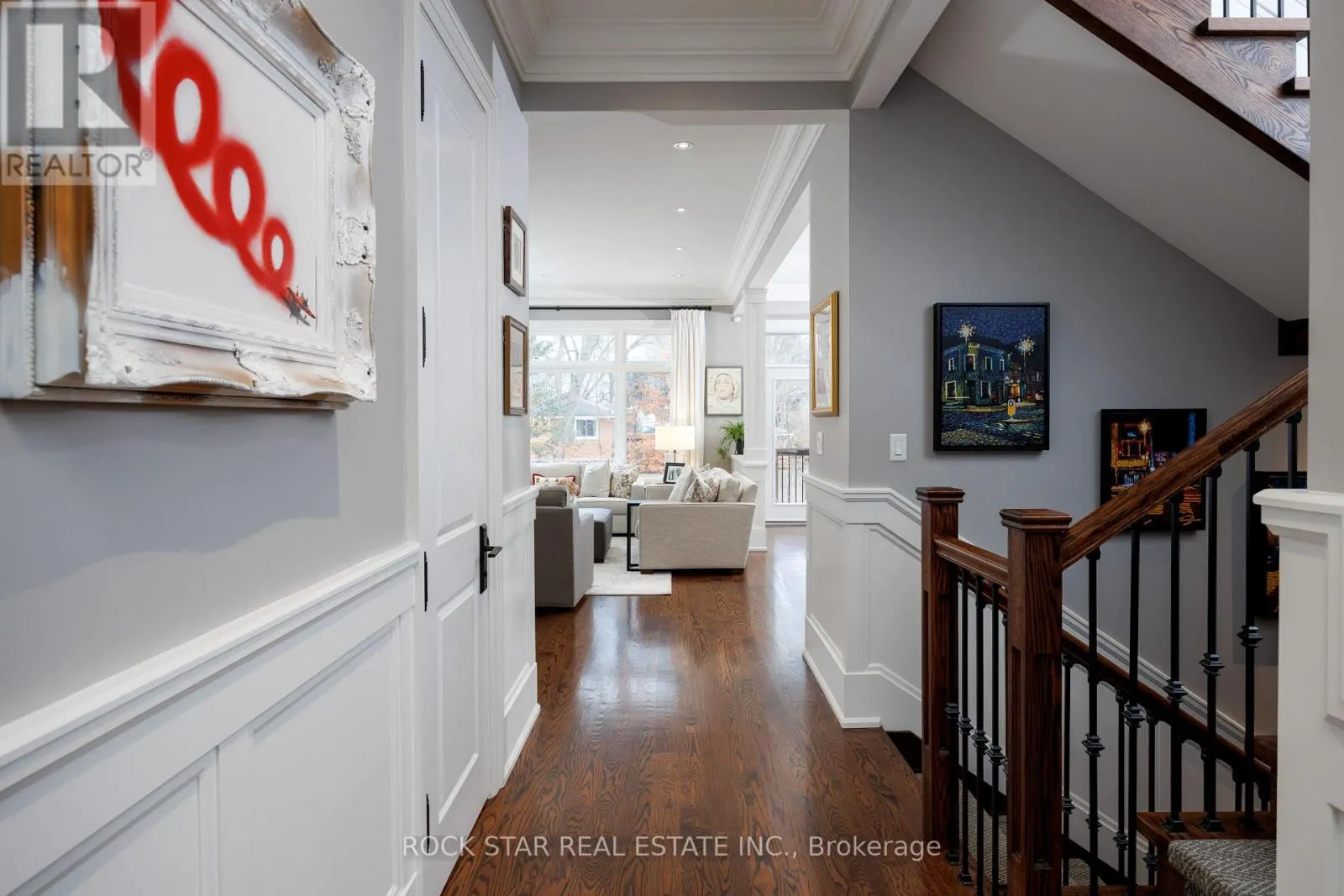 Rebecca / Queen Mary / Highland Experience the pinnacle of refined easy living. This custom-built Bungaloft feels like your own private sanctuary steps from the heart of town. Set on a sun-filled 60x145 ft south-facing lot within walking distance of Downtown Oakville, this residence boasts over 5,850 sq ft of finished living space designed for today's evolving family. Lofty 10ft ceilings, rich hardwood floors, and gorgeous millwork define the open-concept main level, where a chef-grade kitchen and Great Room seamlessly connect to a covered porch. Unique to this floor plan are two main-floor bedrooms, including a sumptuous primary retreat and a second guest suite with ensuite, offering rare accessibility and convenience. The lower level is a showstopper-a "Distillery" inspired entertainment haven featuring exposed brick, a wine cellar, gym, and an 18-speaker home theatre, all flooded with light from the walkout to the backyard. With extensive hardscaping and unmatched proximity to shops, restaurants, and lakeside promenades, this is where timeless luxury meets vibrant urban living (id:27476)