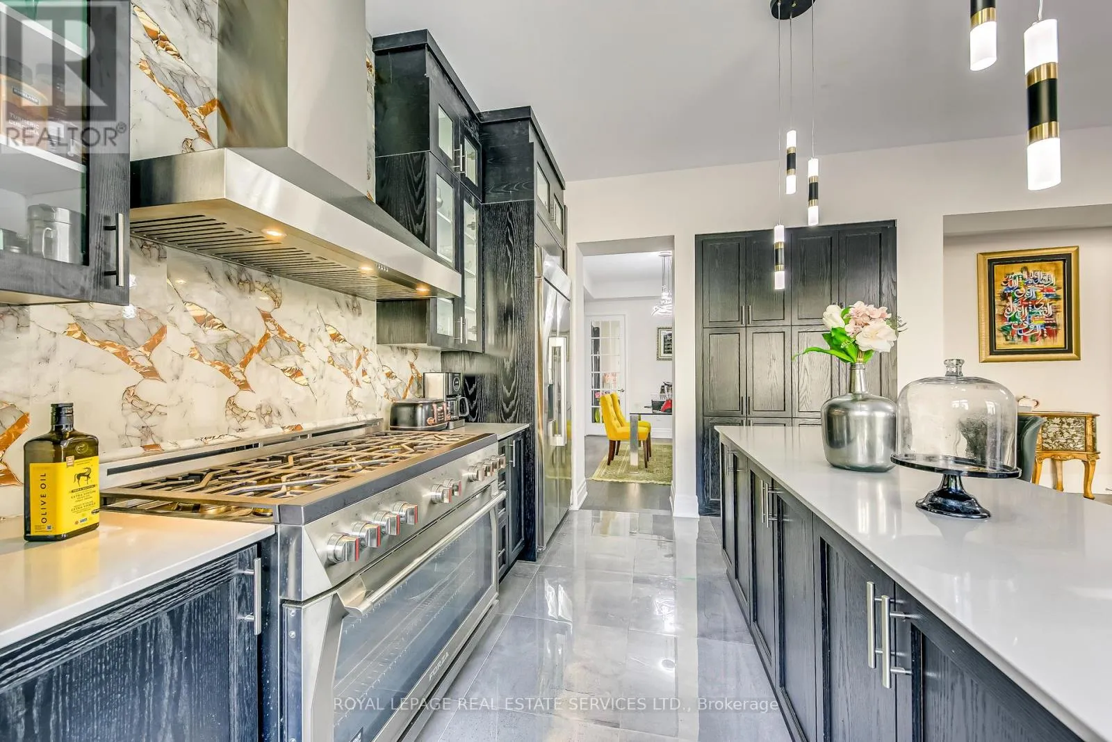Dundas & William Cutmore Blvd Luxurious 5+2 Bed, 6 Bath Home in Joshua Creek Montage by Valery Homes. This modern masterpiece is designed for both effortless living and entertaining, offering over $250K in custom interior upgrades. Features include a separate backyard entrance and a fully legal 2-bedroom basement suite. The meticulously crafted family room boasts coffered ceilings, 10' ceilings on the main floor, upscale engineered oak hardwood floors, large picture windows, wainscoting, and stunning designer light fixtures and pot lights throughout. The opulent living room is flooded with natural light and features a custom-built Regency fireplace. The gourmet chefs kitchen is equipped with top-of-the-line appliances, quartz countertops, an oversized center island, and plenty of cabinetry for storage. The spacious primary suite offers a spa-like 5-piece ensuite, complete with his-and-hers sinks, a separate glass shower, and a freestanding tub. The upper level features 9' ceilings and four additional large, sun-filled bedrooms, each with luxurious upgraded baths. There is also a convenient upstairs laundry room with a walk-in linen closet. The fully finished basement, with a separate entrance from the backyard, offers 9' ceilings and large windows. It includes two additional bedrooms, a 4-piece bathroom, and another fully designed kitchen. Nestled in Oakville's highly sought-after Joshua Meadows, this home is conveniently close to schools, parks, shopping centers, trails, and major highways, offering both accessibility and a tranquil lifestyle. Don't miss your chance to experience this ultra-modern detached home that perfectly balances luxury, comfort, and practicality. Book your viewing today! (id:27476)