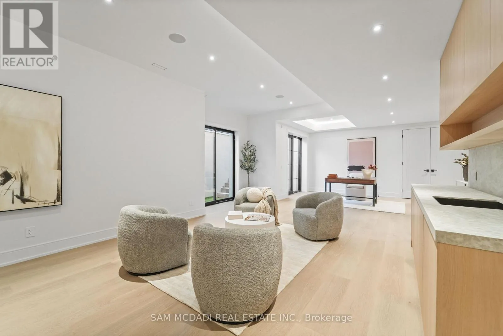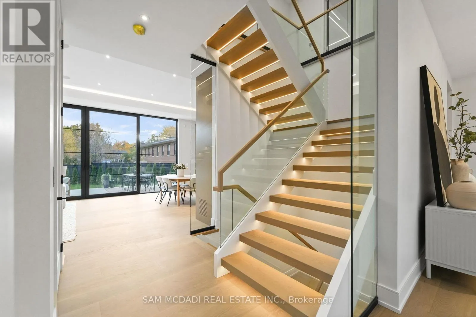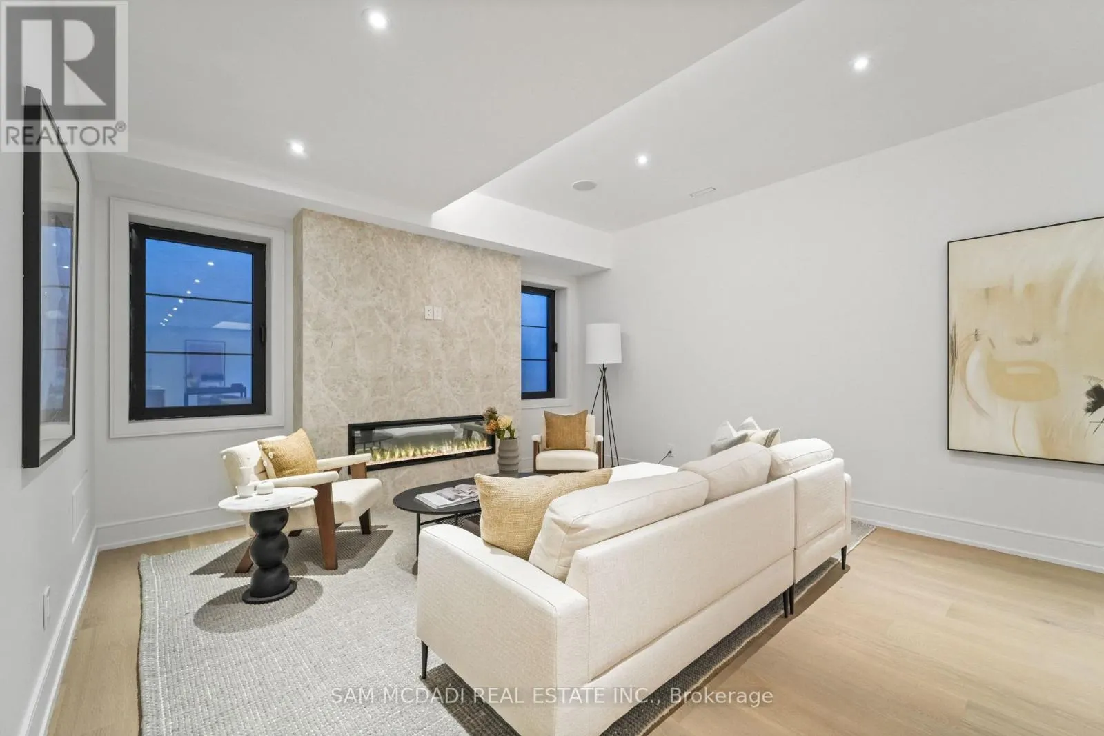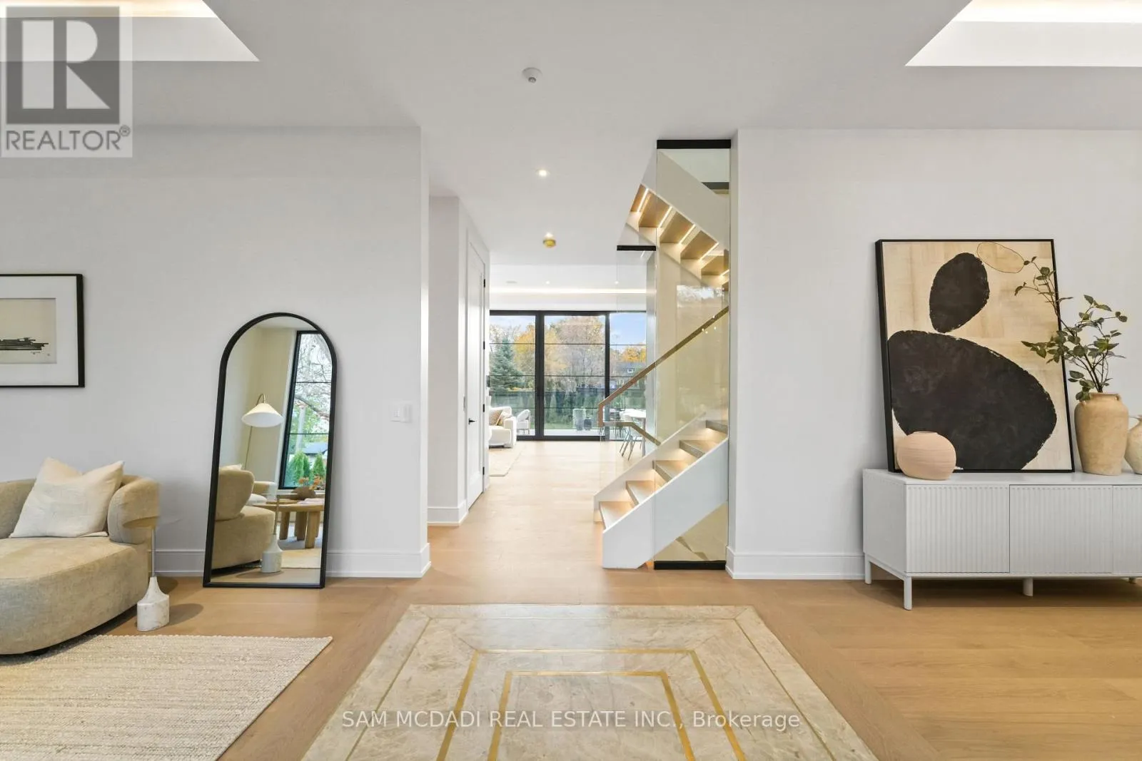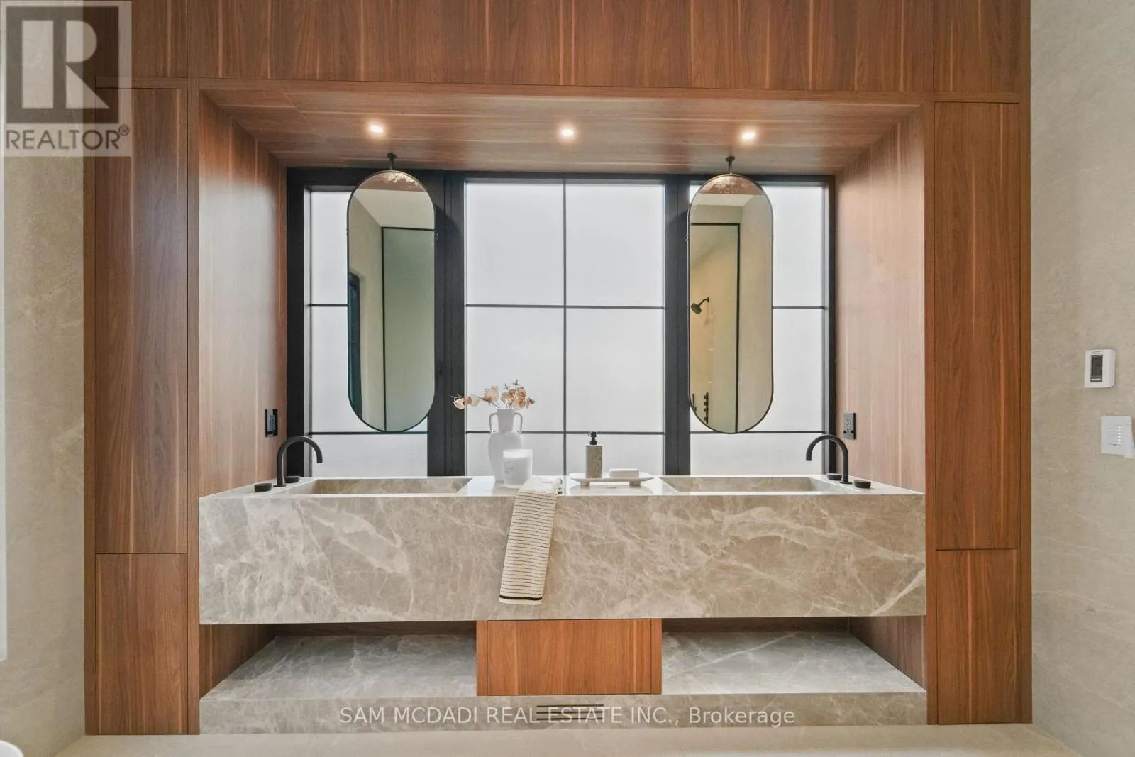 Cross Streets: Lakeshore Rd W & Third Line. ** Directions: If heading westbound on Lakeshore Rd W, turn right onto Third Line. If heading eastbound on Lakeshore Rd W, turn left onto Third Line. The property will be on your left side. Welcome to 152 Third Line, an architectural masterpiece in Oakville's prestigious Bronte neighbourhood. Set on a 75 x 140 ft lot, this newly built custom home offers over 5,500 sqft. across three levels, blending modern sophistication with timeless craftsmanship. The striking limestone stucco exterior with clean lines and expansive windows creates elegant curb appeal. Inside, a grand foyer with Taj Mahal marble flooring and brass inlay leads to light-filled living spaces with 9" white oak floors and a dramatic book-matched marble fireplace. Two kitchens impress: a show kitchen with Sub-Zero and Wolf appliances and oversized island, and a secondary chef's kitchen with bespoke cabinetry, Taj Mahal marble counters and matching backsplash. A solid oak staircase with glass railings and step lighting connects all three levels, complemented by a private elevator. The 641 sqft. primary suite features a meticulously crafted 5-star hotel-inspired ensuite and custom walk-in closet. Three additional bedrooms have private ensuites and built-in closets. Bathrooms are finished in a curated selection of exquisite marbles, with coordinating stone vanities and niches for a seamless, luxurious look. The finished lower level includes a home theatre, den, recreation room, home office, bar, and walk-out to the rear yard - perfect for entertaining or relaxing. Year-round comfort is ensured with a zoned HVAC system, heat pump, furnace, tankless water heater, HRV, humidifier, and smart thermostat. Control4 smart home integration, integrated audio, smart lighting, and security cameras provide effortless modern living. Outdoors, a 375 sqft. raised patio offers a stylish entertaining space or a private retreat. Sophisticated, functional, and beautifully executed, 152 Third Line redefines modern luxury in one of Oakville's most sought-after communities. (id:27476)