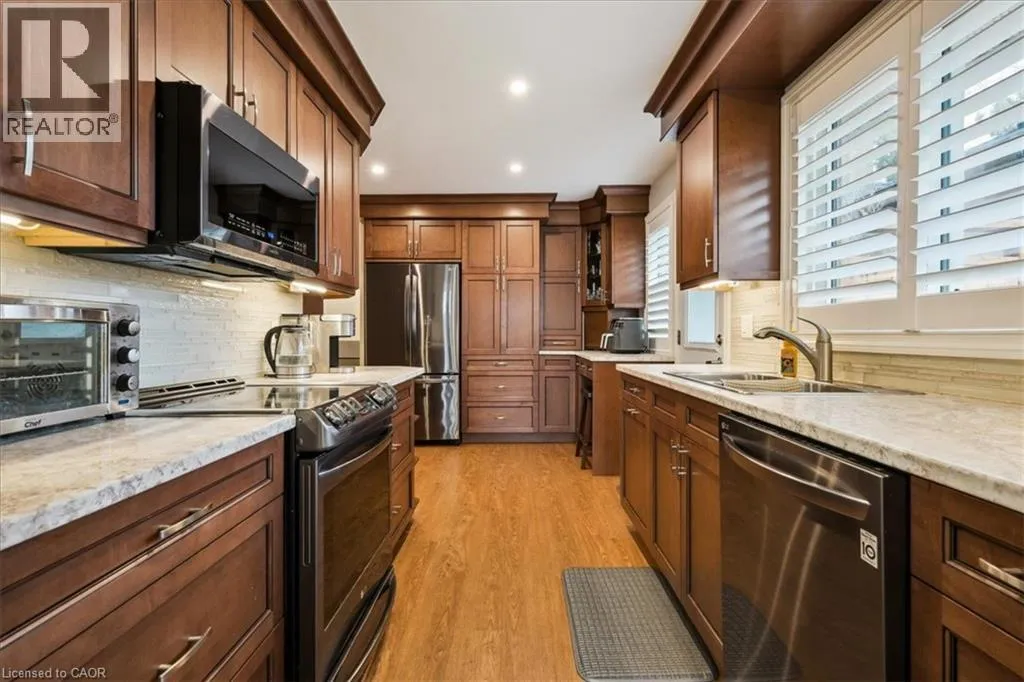 Bridge Rd to Seaton, North on Seaton to Swann, Swann to Saxon Seize this rare opportunity to acquire a beautifully updated 4-level backsplit complete with a full basement and a genuine double car garage. Discover 2033 Saxon Road, nestled on a tranquil, family-oriented street in the highly coveted West Oakville community. Boasting over 2200 sq ft, this spacious residence offers abundant living space for families, ensuring everyone has room to grow. The main floor showcases a sleek kitchen with modern cabinetry, stainless steel appliances, extra pantry storage, and convenient access to the backyard. The open living and dining areas lead out to the rear patio, gazebo, and yardâperfect for entertaining. Upstairs, thereâs a large primary bedroom, two additional bedrooms, and a refreshed main bathroom. On the lower level, enjoy a comfortable family room with a gas fireplace, a 3-piece bath, and a laundry/utility room with its own walk-up entrance to the backyard. The basement provides flexibility with a fourth bedroom, recreation area, and office/gym space suited for teens or extra living needs. Step outside to a backyard oasis featuring a spacious gazebo, ample patio space, beautifully landscaped flower beds with a water feature, and an above-ground pool for summer enjoyment. This home is ideally located close to transitâincluding Bronte Go Stationâtop schools, Queen Elizabeth Community Centre, shopping, restaurants, and local amenities. Walking distance to Bronte Harbour and Bronte Creek Lands Park, situated on a quiet crescent in a friendly neighbourhood, this property is not to be missed! (id:27476)