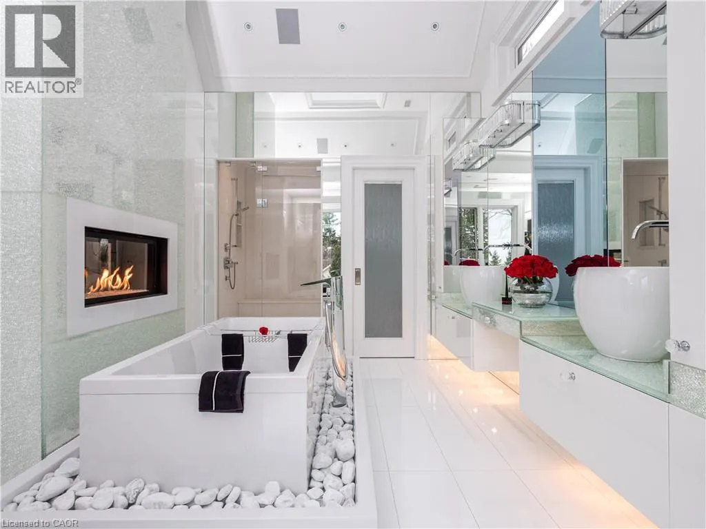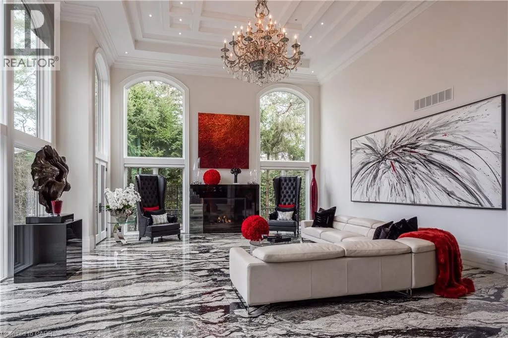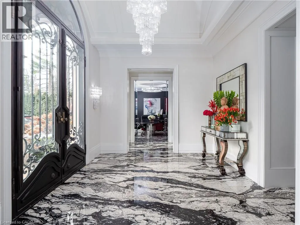Lakeshore Road E, South on Chartwell Road 15 Chartwell Rd offers a lifestyle of unparalleled luxury.Drive through the gates & discover the grandeur of this palatial estate.South of Lakeshore,1 door from the lake on a half acre lot.Painstakingly curated, the contemporary limestone masterpiece youâve been waiting for. Solid iron doors lead to a grand foyer revealing the opulent book matched marble floors.Floor to ceiling windows & French doors flood the house with light. Cascading waterfalls flank the hall.The Dining Room has statement lighting & servery making hosting a breeze.Soaring 18ft ceilings & a grand gas f/p are focal points of the Great Room,w/captivating views of the resort style yard.Experience culinary excellence in the black lacquer & glass kitchen by NEFF that features top of the line appliances & a B/I coffee machine & butlers pantry.The intimate Living Room w/ f/p is the ideal retreat.A main floor office w/built-in cabinetry.2 powder & 2 laundry rooms.The backyard oasis has a gunite pool,waterfalls,fire bowls,covered terrace & outdoor kitchen & f/p.The pool house has a change room,3-pc bath & servery.Towering trees surround the home & are positioned to create privacy.A stone driveway,circular fountain & lush gardens create a breathtaking landscape.Floating marble stairs divide the 3 levels of this home or, you can take the elevator.Skylights make the upstairs airy & bright.The principal suite has nearly 13ft ceilings, an exquisite 6-pc ensuite &2 walk-in closets. A private balcony overlooks the yard.3 add'l bedrms have 10-ft ceilings,private ensuites & walk-in closets.The LL caters to all family members.A 5th bedroom/ensuite makes an ideal guest suite.Gym,R/I Golf Simulator,home theatre,Wine Cellar & doggie Spa.The Games & Rec Rooms have a 2nd kitchen & walkout.Heated garage,baths & LL floors.Automation.Designed by Bill Hicks & features the artistic creativity of the KT Design Group. Located on Oakvilleâs Street of Dreams,this is an iconic living space designed to impress. LUXURY CERTIFIED (id:27476)