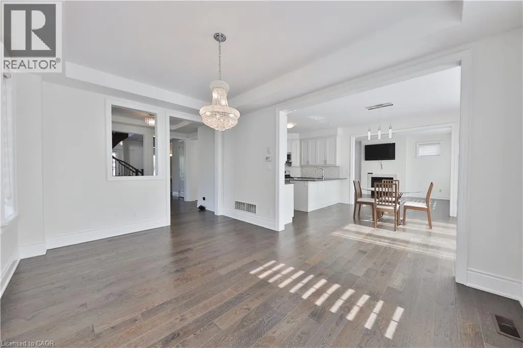 River Oaks Blvd E & Namron Gate Experience refined elegance in this stunning family home built by Biddington Homes, offering 5,001 sq. ft. of exquisitely finished living space across 3 levels. Nestled in the vibrant family friendly community of River Oaks in Oakville, this 6-bedroom (4+2), 5-bathroom (4+1) residence showcases quality craftsmanship and luxurious upgraded finishes throughout. With 3,409 sq. ft. above grade and 1,592 sq. ft. below, the bright, and spacious open concept layout features engineered hardwood floors and soaring min. 9-ft ceilings on all levels. The main floor impresses with elegant formal living and dining rooms, a cozy gas fireplace in the family room, and a gourmet eat-in kitchen with quartz counters, stainless steel appliances, and a large breakfast area with walkout to the rear deck. A stunning open circular staircase unites all three levels, while the main level laundry/mudroom adds everyday convenience. Upstairs, find 4 generously sized bedrooms including two with ensuite baths and two sharing a semi-ensuite. The private primary retreat offers a vaulted 13â ceiling, sumptuous spa-like 5-piece ensuite and a spacious dressing room. The fully finished lower-level features 9-ft ceilings, a large recreation room with fireplace, a stylish bar or kitchenette ideal for multi-generational living, 2 bedrooms, a full bath, and ample storage. Pride of ownership by the original owners is evident with the freshly painted interiors throughout and a new roof. Set on a private, fully fenced corner lot with an irrigation system, this home is close to top-rated schools, trails, parks, shopping, highways 403 & 407, and Sheridan College. A true gem and a rare opportunity not to be missed in one of Oakvilleâs most sought-after neighbourhoods. (id:27476)