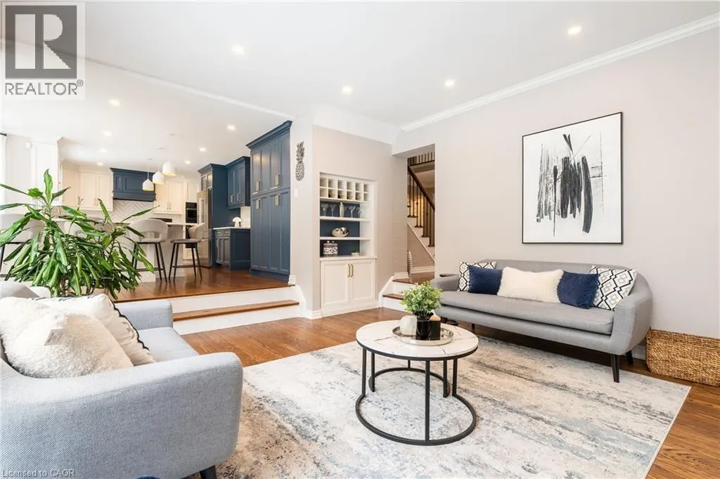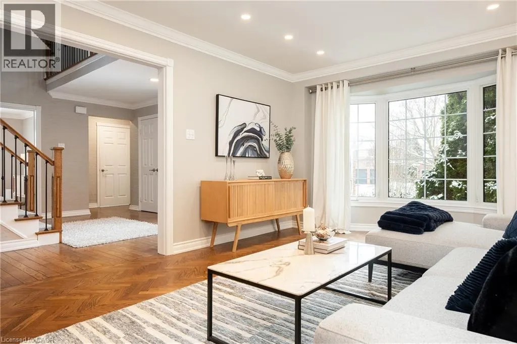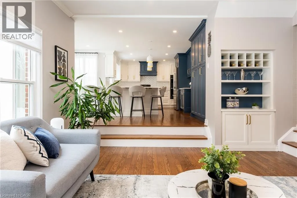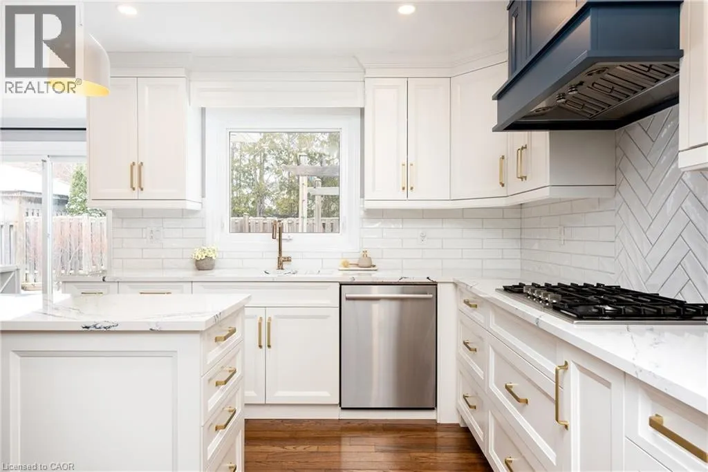 Monks Passage to Old Post Drive Welcome to 1225 Old Post Drive, a beautifully renovated family home on a mature, private lot in Glen Abbeyâs sought-after Abbey Park school district. Extensively updated inside and out, this 4+1 bedroom residence offers refined finishes, thoughtful upgrades, and a fully finished lower level with in-law potential. The custom kitchen, renovated in 2021, features Cambria quartz counters, brass hardware, custom cabinetry, a large L-shaped island with breakfast bar, and premium Bosch appliances. Open to the sunken great room with wood-burning fireplace and custom built-ins, it creates an inviting space for everyday living and entertaining. Separate formal living and dining rooms showcase site-finished oak hardwood, including elegant herringbone detailing. Upstairs, the spacious primary suite includes a sitting area, walk-in closet, and a renovated 5-piece ensuite with freestanding soaker tub, glass shower, skylight, and double vanity. Three additional bedrooms and a renovated main bath complete the level. The finished lower level offers a large recreation area, kitchenette, office, fifth bedroom, and 3-piece bath, ideal for extended family or guests. Professionally landscaped backyard with interlocking patio and custom pergola. Major updates include furnace, A/C and 60-gallon hot water tank (2020), roof (2014), 200 amp service, renovated baths, updated lighting, and more. A turnkey opportunity in one of Oakvilleâs most established neighbourhoods. (id:27476)