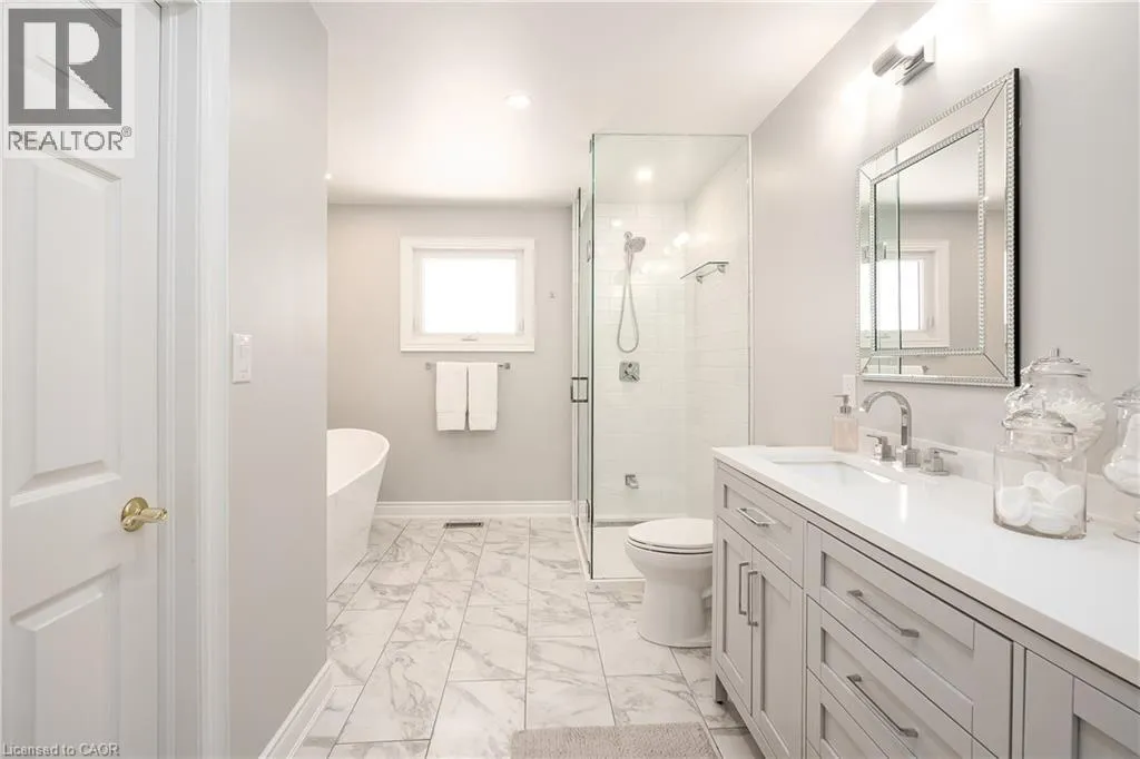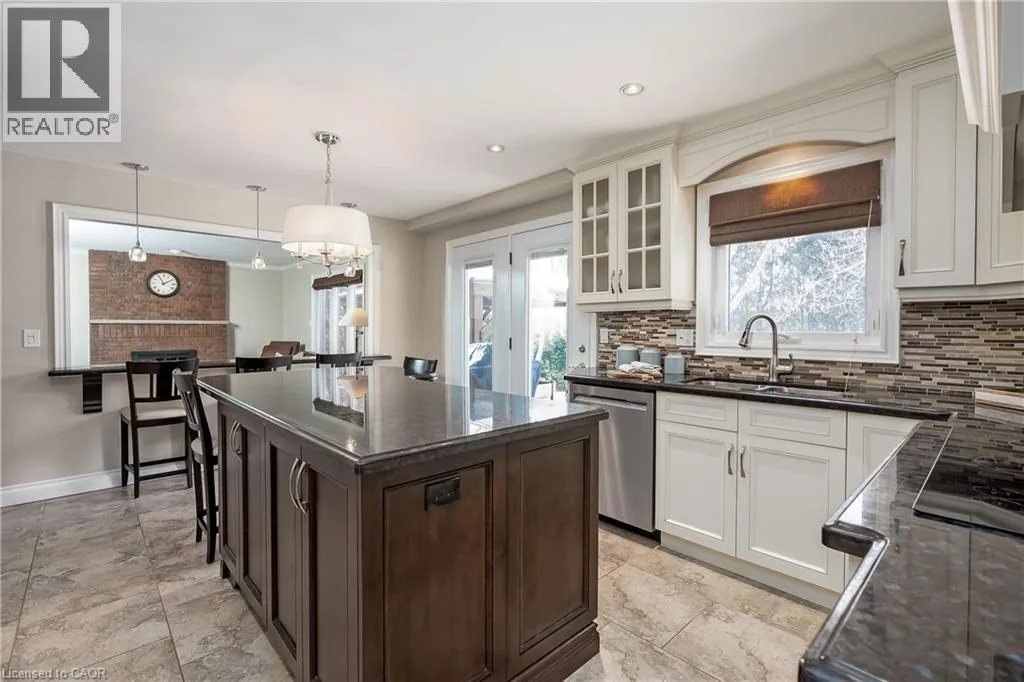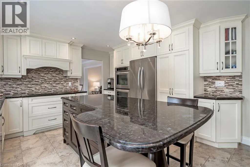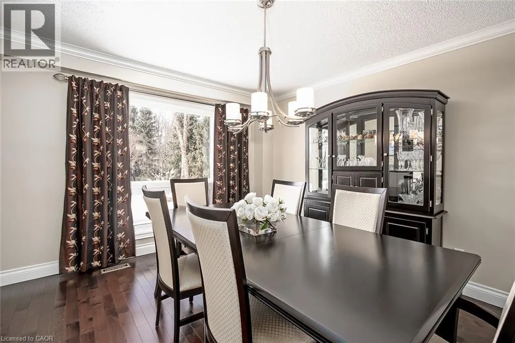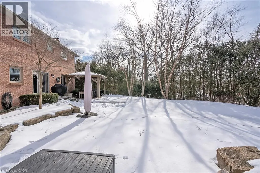 OLD UPPER MIDDLE-MCCRANEY-ROYAL ALBERT An outstanding and truly irreplaceable property backing onto 16 Mile Creek and the world-renowned Glen Abbey Golf Course. The gorgeous, private lot features an in-ground pool and charming cabanaâan ideal setting for outdoor entertaining and family gatherings. This impeccably maintained four-bedroom family home has been thoughtfully updated throughout. The stunning cream kitchen features stainless steel appliances, granite countertops, and an oversized island, seamlessly opening to a warm and inviting family room with a wood-burning fireplace. Maple hardwood flooring runs throughout. Elegant formal dining room, complemented by a bright living room with a charming bay window. The upper level offers four generously sized bedrooms, an updated main bath, and a delightful reading nook. The primary retreat includes a walk-in closet and a beautifully renovated, spa-inspired ensuite with a freestanding soaker tub and separate shower. The fully finished basement provides exceptional additional living space with a wood-burning fireplace, recreational area, and an additional three-piece bathroom. (id:27476)