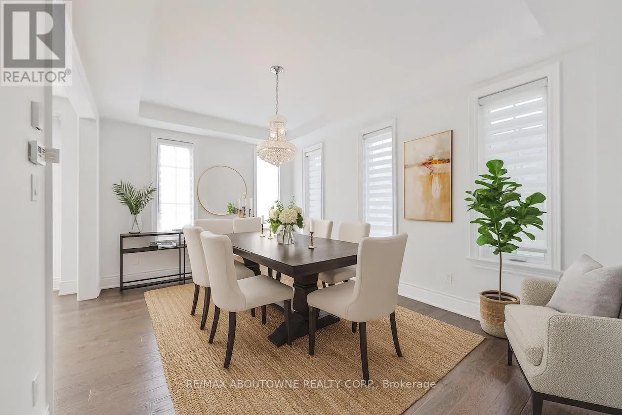 River Oaks Blvd E & Namron Gate Experience refined elegance in this stunning family home built by Biddington Homes, offering 5,001 sq. ft. of exquisitely finished living space across 3 levels. Nestled in the vibrant family friendly community of River Oaks in Oakville, this 6-bedroom (4+2), 5-bathroom (4+1) residence showcases quality craftsmanship and luxurious upgraded finishes throughout. With 3,409 sq. ft. above grade and 1,592 sq. ft. below, the bright, and spacious open concept layout features engineered hardwood floors and soaring min. 9-ft ceilings on all levels. The main floor impresses with elegant formal living and dining rooms, a cozy gas fireplace in the family room, and a gourmet eat-in kitchen with quartz counters, stainless steel appliances, and a large breakfast area with walkout to the rear deck. A stunning open circular staircase unites all three levels, while the main level laundry/mudroom adds everyday convenience. Upstairs, find 4 generously sized bedrooms including two with ensuite baths and two sharing a semi-ensuite. The private primary retreat offers a vaulted 13' ceiling, sumptuous spa-like 5-piece ensuite and a spacious dressing room. The fully finished lower-level features 9-ft ceilings, a large recreation room with fireplace, a stylish bar or kitchenette ideal for multi-generational living, 2 bedrooms, a full bath, and ample storage. Pride of ownership by the original owners is evident with the freshly painted interiors throughout and a new roof. Set on a private, fully fenced corner lot with an irrigation system, this home is close to top-rated schools, trails, parks, shopping, highways 403 & 407, and Sheridan College. A true gem and a rare opportunity not to be missed in one of Oakville's most sought-after neighbourhoods. (id:27476)