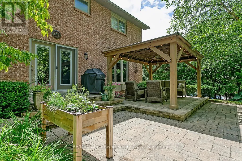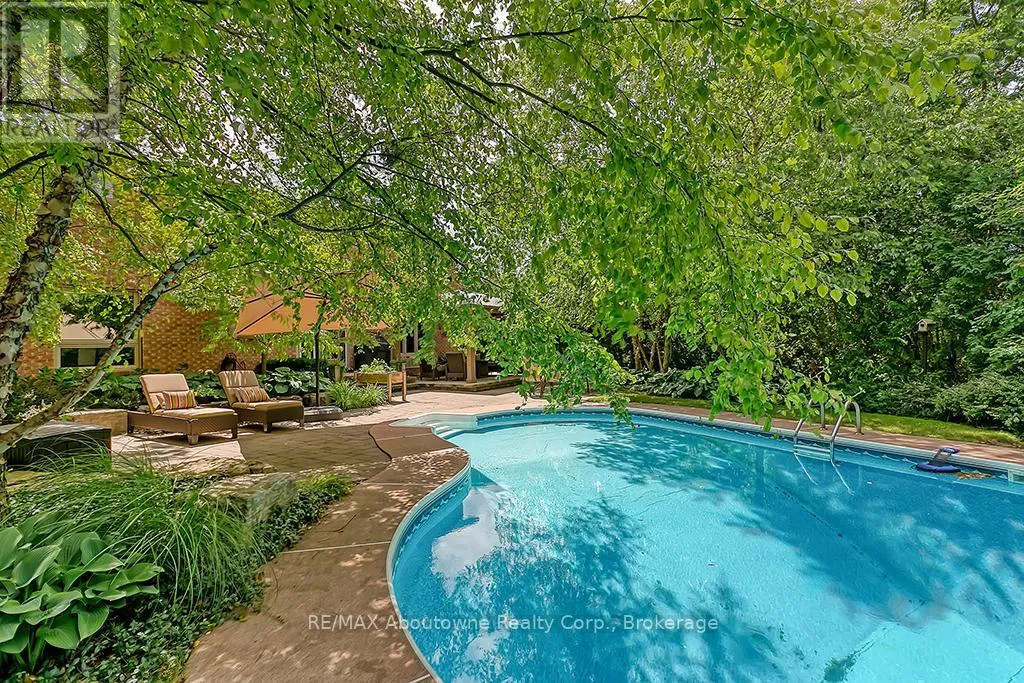 Cross Streets: MCCRANEY. ** Directions: OLD UPPER MIDDLE-MCCRANEY-ROYAL ALBERT. An outstanding and truly irreplaceable property backing onto 16 Mile Creek and the world-renowned Glen Abbey Golf Course. The gorgeous, private lot features an in-ground pool and charming cabana-an ideal setting for outdoor entertaining and family gatherings. This impeccably maintained four-bedroom family home has been thoughtfully updated throughout. The stunning cream kitchen features stainless steel appliances, granite countertops, and an oversized island, seamlessly opening to a warm and inviting family room with a wood-burning fireplace. Maple hardwood flooring runs throughout. Elegant formal dining room, complemented by a bright living room with a charming bay window. The upper level offers four generously sized bedrooms, an updated main bath, and a delightful reading nook. The primary retreat includes a walk-in closet and a beautifully renovated, spa-inspired ensuite with a freestanding soaker tub and separate shower. The fully finished basement provides exceptional additional living space with a wood-burning fireplace, games room, and an additional three-piece bathroom. (id:27476)