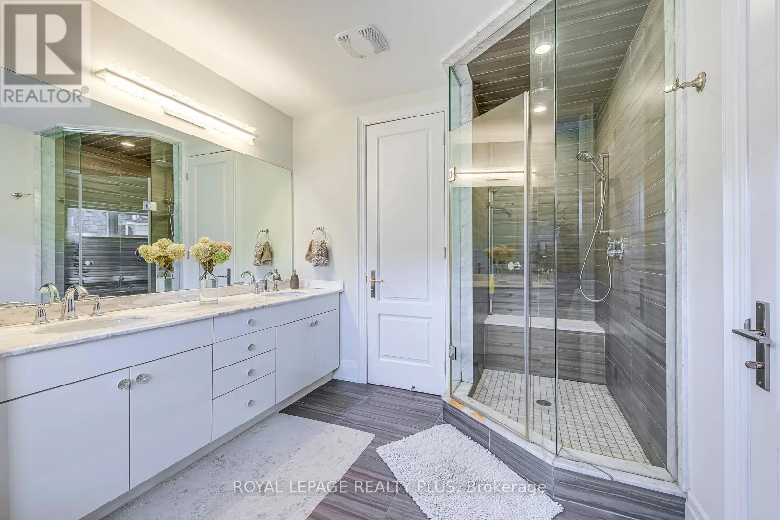 Dorval & Rebecca Discover refined luxury at the Royal Oakville Club, where elegance and modern comfort define an exceptional lifestyle. Set on a premium, park-facing lot, this residence offers upscale living with the ease of no-maintenance grounds. Ideally located in West Oakville, you are steps from Lake Ontario and historic downtown, surrounded by boutique shops, fine dining, and the pictures que waterfront. The prestigious Lyndhurst model by Fernbrook, offering approximately 3,236 sq. ft., showcases exceptional craftsmanship. This 4-bedroom, 3+2(1/2)-bath home features soaring 10 and 9'ceilings, eight-foot solid-core doors on all levels, hand-scraped hardwood floors, custom cabinetry, designer tiles, pot lighting, and elevated fixtures. An elevator serves every level-from the lower floor to the expansive rooftop terrace-ensuring seamless convenience. The elegant formal living room is ideal for sophisticated entertaining, while the gourmet kitchen boasts quartz waterfall counters, custom cabinetry, an extended centre island, Wolf and Sub-Zero appliances, and a bright breakfast area opening to an east-facing balcony that welcomes beautiful morning sun. The upper level offers three spacious bedrooms, a full laundry room, and two spa-inspired bathrooms. The primary suite features a private balcony and a luxurious ensuite with a freestanding tub and glass-enclosed shower. The ground level provides a versatile media room, a4-piece bathroom, a well-designed mudroom, and direct access to the double garage. A fully finished basement with a 2-piece washroom adds exceptional flexibility-perfect as an additional living area, guest room, entertainment zone, or workout space. The expansive rooftop terrace offers outstanding outdoor living with all-day sun, ideal for relaxing or entertaining. With superior construction, thoughtful upgrades, and an unbeatable Oakville address, this exceptional Fernbrook townhome delivers an elevated lifestyle in one of the city's most coveted communities. (id:27476)