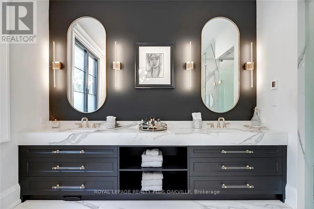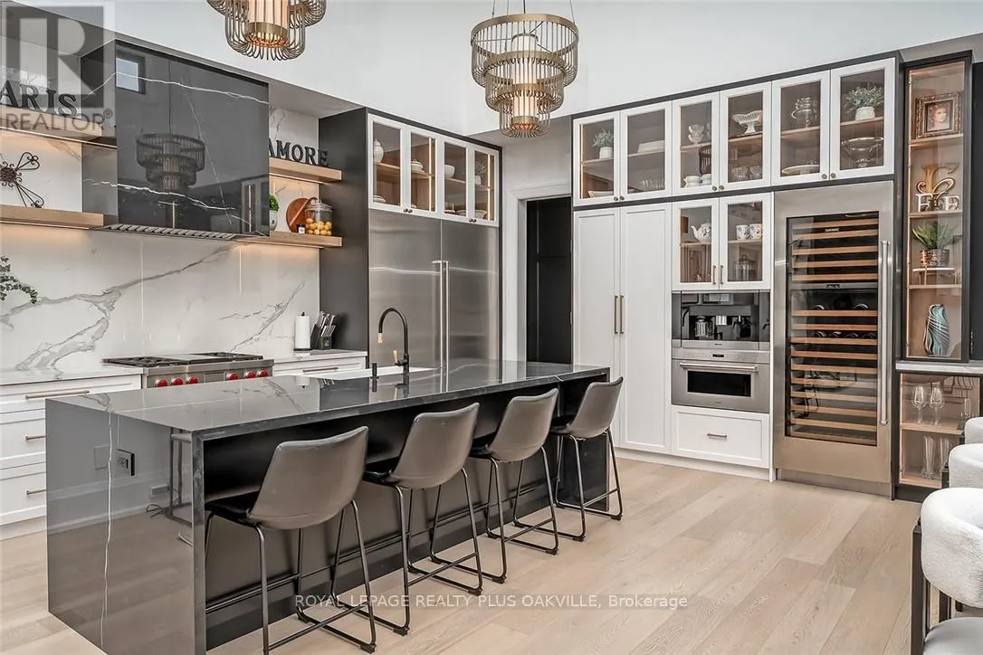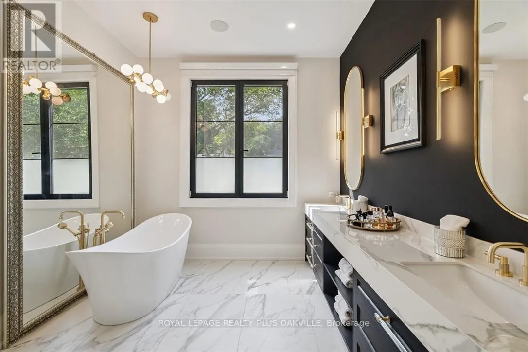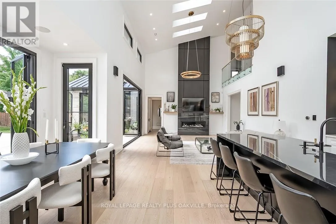 Hixon - Tracina - Seagram - Walby Designed to be enjoyed in all seasons, this decadently appointed custom built executive home in prime Coronation Park delivers exceptional warmth, comfort and luxury especially in the winter months. Featuring heated flooring throughout tiled areas, the garage and even the concrete driveway and walkway ensuring effortless comfort all season long. This unique, spacious open-concept layout is both inviting and functional with four beautifully appointed bedrooms each with a private ensuite for convenience and privacy. The MAIN FLOOR PRIMARY SUITE is a winter sanctuary with vaulted ceilings, fireplace and tranquil views. The luxurious 5pc ensuite with heated floors invites you to unwind with a deep soaker tub, double vanities, huge shower and water closet. Perfect escape after a long winter day. The chef's kitchen is designed for gathering, featuring an instagram-worthy walk-in pantry. Natural light pours in through massive windows, six skylights and double bi-fold doors creating a warm and welcoming atmosphere on even the coldest days. Soaring 20ft ceilings, cozy gas fireplaces, custom cabinetry and lighting, warm wood finishes and an abundance of European double-glazed low-E argon windows and doors, delivering exceptional insulation energy efficiency and year round comfort. An emergency generator adds peace of mind during winter storms, while over $200k in smart-home technology allows seamless control of heating, lighting, appliances and security at the touch of a button. Outside the backyard transforms with seasons, offering a heated saltwater pool, double-sided gas fireplace, extensive patio, b/i kitchen and a private 2 pc bathroom. Perfect for both summer entertaining and cozy winter evenings by the fire. Located in one of Oakville's most desirable neighbourhoods, steps to the lake, schools and Bronte Village this exceptional home offers pure luxury in every season. Escape the ordinary. This is what you deserve. (id:27476)