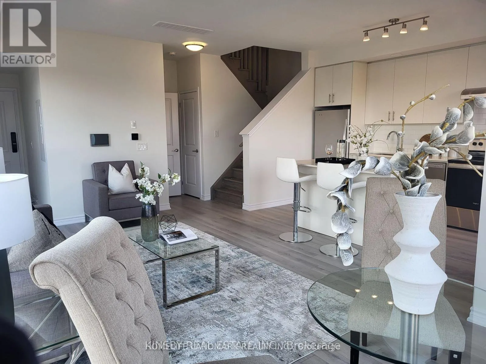 Cross Streets: Trafalgar Rd And Dundas St E. ** Directions: Trafalgar Rd and Wheat Boom Dr. Welcome to this new 2+1 Bdrm, 2.5 bathroom Corner End Unit with SW exposure.Very Bright. It is a truly remarkable overlooking greenspace. Open concept main floor! Kitchen with stainless steel appliances, granite countertops and backsplash. The unique unit has a balcony off the kitchen and a 318 sqft roof top terrace to enjoy! There are over 10K in upgrades, which includes engineered hardwood floor throughout the unit, granite countertops in the stylish kitchen and in all washrooms. The main floor has 9 feet ceiling with floor to ceiling windows that brings warmth, light and beauty into the unit. 2nd floor features the large primary bedroom with a walk in closet and ensuite, the 2nd bedroom and the other full bathroom. All bedrooms O/L the greenspace. Laundry and a linen closet convenient located on this floor.3rd floor features the mechanical room with room for additional storage, plus a den for your home office and access to the roof top terrace.Parking is directly below the unit. Photos were taken prior to current tenancy. (id:27476)