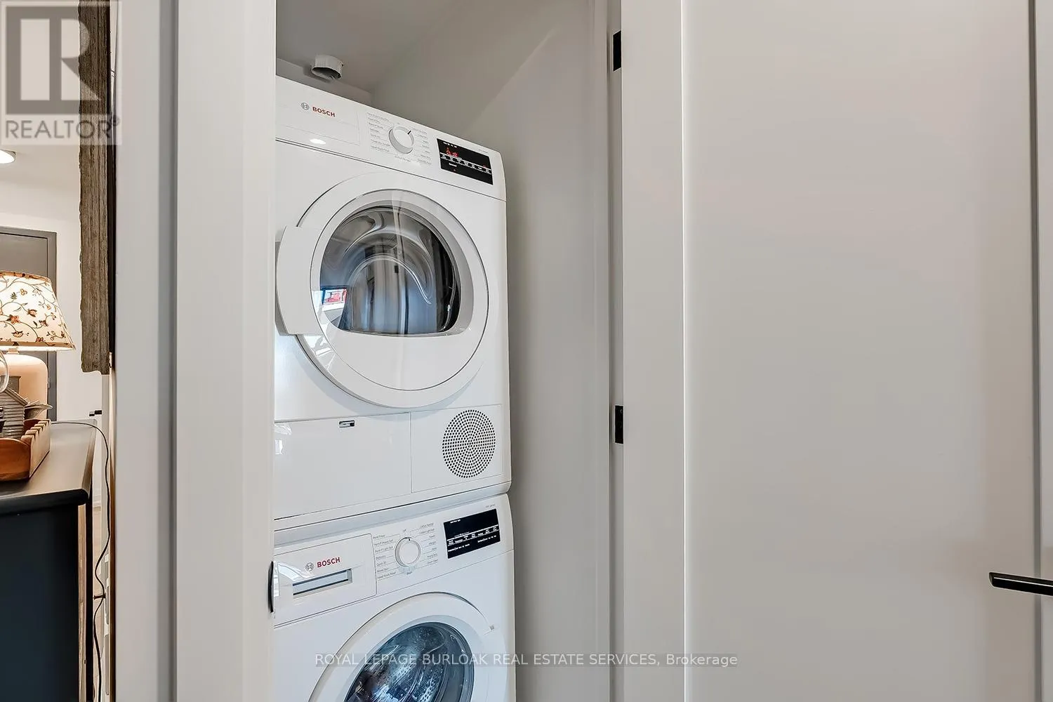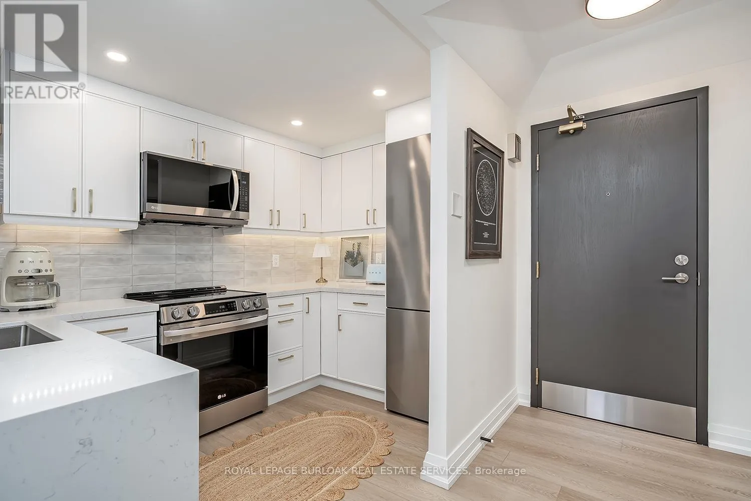 Cross Streets: Lakeshore Road W. ** Directions: South of Lakeshore Road W. Gorgeous 1 bed 1 bath fully renovated unit with chic finishes in Bronte's boutique Pier 12 condo in the heart of Bronte Village. The updated kitchen features stainless appliances, quartz counters, pot lights and undermount sink. The bright living room/dining room faces east and features engineered flooring, and the beautiful bathroom has a glass step in shower with gold accents. You can access your balcony from the living room or bedroom. Enjoy stunning sunsets and outstanding views of the harbor, lake, historic boat yard, and the main strip, and enjoy sunrises, sunsets and BBQs with guests from the updated roof top terrace with 360-degree views. Fantastic amenities include a roof top library and party room, indoor pool, sauna, and exercise room. Steps to the lake, marina, restaurants, and shops and all Bronte has to offer. Includes two underground parking garages. Lockers are available to rent for $20/Month. (id:27476)