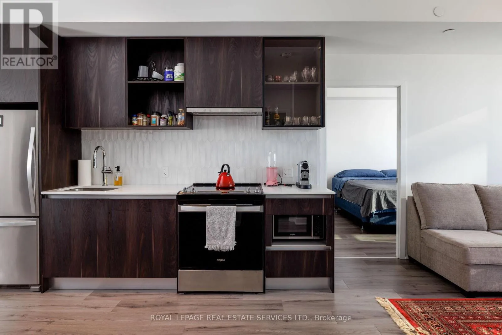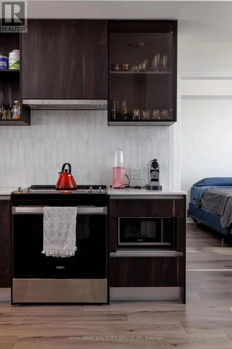 Cross Streets: Dundas & Trailside. ** Directions: Neyagawa- Dundas. Experience luxury condo living at Distrikt Trailside in this stunning 2-bedroom plus den, 2-bath suite offering approx. 937 sq. ft. of bright, modern living space plus a private balcony with amazing East views! This upscale Oakville condo features a grand 2-storey lobby with a 24-hour concierge, a state-of-the-art fitness centre, a rooftop patio, fireside lounges, a billiards room, innovative mechanical and automation systems, ground floor lifestyle retail, and an on-site property management office. The suite showcases 9-foot smooth ceilings, wide-plank laminate flooring, designer tiles, quartz countertops, imported Italian cabinetry, Energy Star appliances, Decora switches, fibre-optic Internet, a digital wall pad for seamless interaction with home and community systems, and a weatherproof balcony electrical receptacle. The open-concept living area offers a wall of windows and a walkout to the balcony. A chef-inspired kitchen includes sleek cabinetry, quartz counters, tile backsplash, stainless steel and integrated appliances, and a spacious dining area. The primary bedroom features a walk-in closet and a spa-like 3-piece ensuite with Italian cabinetry, a quartz countertop, and an oversized glass shower. A second bedroom, 4-piece bathroom, in-suite laundry, one underground parking space and a storage locker add convenience. Ideally located in Oakville's sought-after Preserve community, you're steps to Fortino's, restaurants, services, North Park, the public library, and the Sixteen Mile Sports Complex, and just minutes to the Uptown Core, Oakville Trafalgar Hospital, and the 407 ETR-perfect for commuters and lifestyle seekers alike. (id:27476)