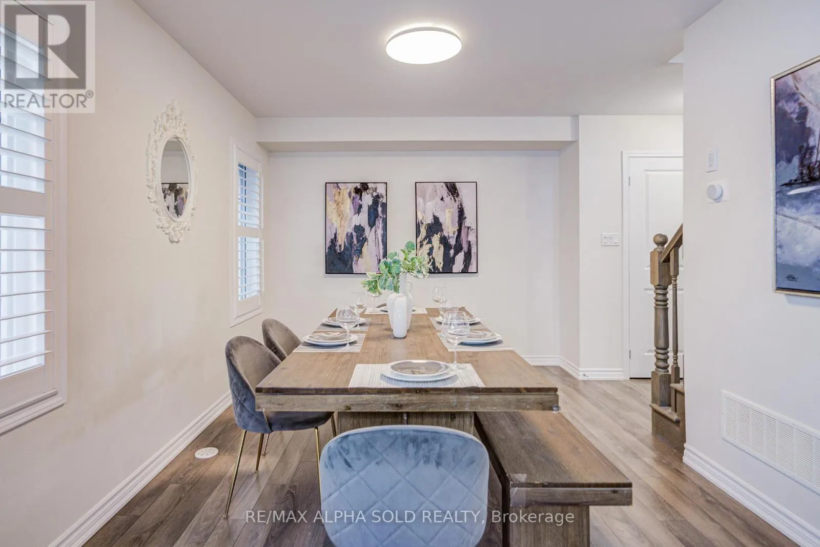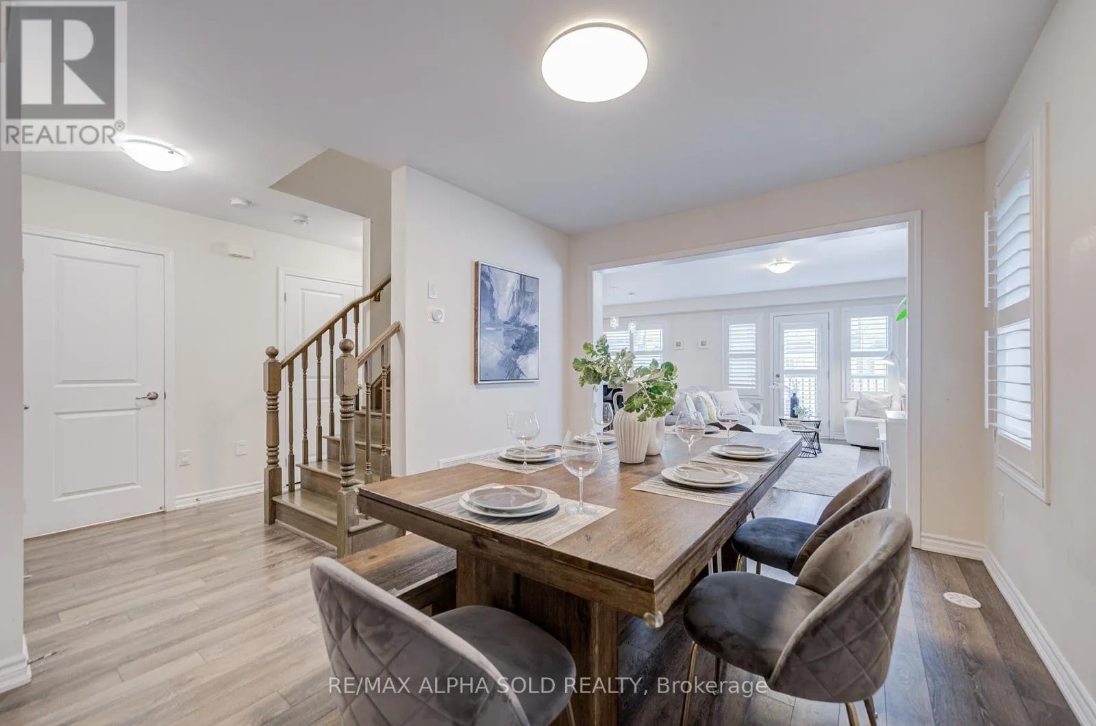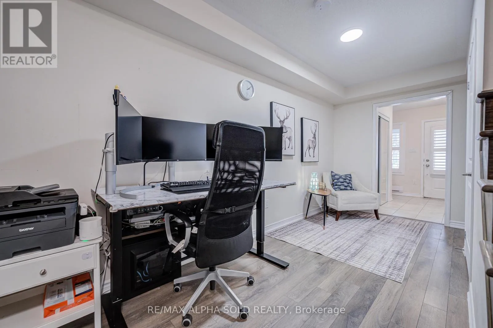 Cross Streets: Dundas St W/Neyagawa. ** Directions: Timberland Gate/Harebell Gate. Welcome to this stunning Mattamy-built executive freehold end-unit townhome in Oakville's highly sought-after Preserve community. Thoughtfully designed living space, showcasing contemporary style and premium upgrades throughout. The bright open-concept main level is perfect for both everyday living and entertaining, featuring a modern kitchen with quartz countertops, stainless steel appliances, a spacious centre island, and sleek cabinetry that complements the home's refined design. Hardwood staircases and laminate flooring flow seamlessly across the main and second levels, creating a cohesive and elegant feel throughout. Upstairs, you will find three generously sized bedrooms and three well-appointed bathrooms, including a luxurious primary retreat complete with a large walk-in closet and a 3 piece ensuite offering both style and functionality. The ground level provides direct garage access, abundant storage space, and a dedicated office area ideal for working from home or study. Situated in one of Oakville's most desirable neighbourhoods, this home offers the perfect balance of upscale finishes and practical living, just minutes from parks, top-rated schools, shopping, and convenient access to Highways 407 and 401. Don't Miss out! (id:27476)