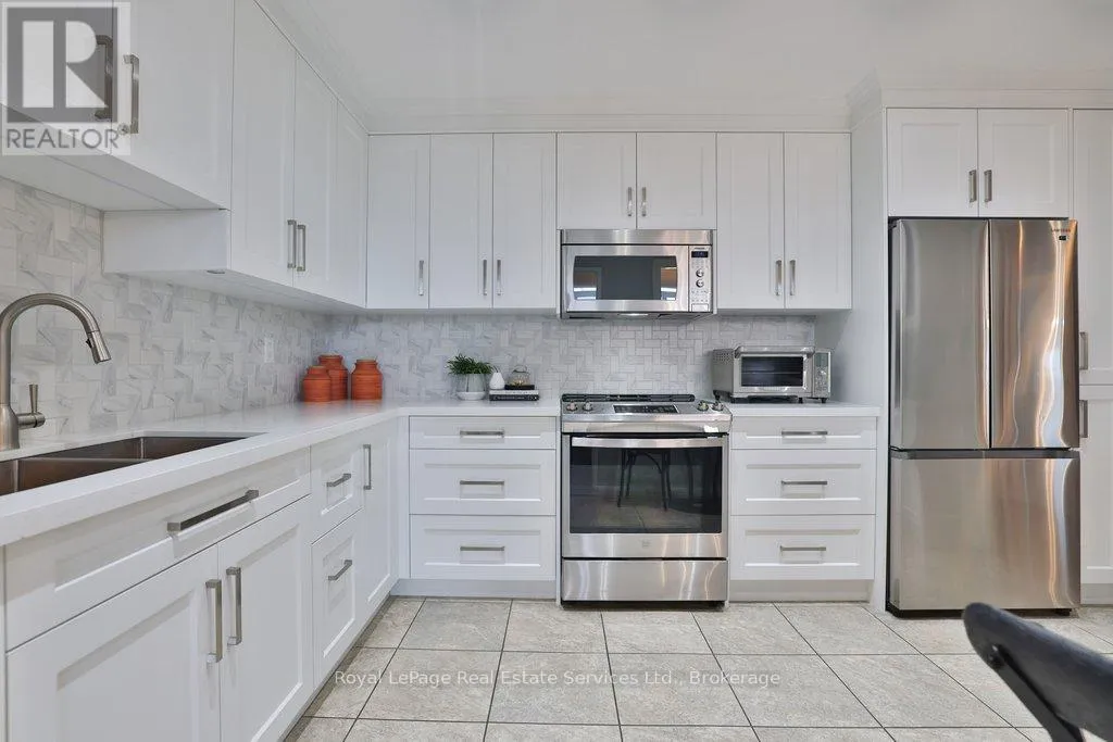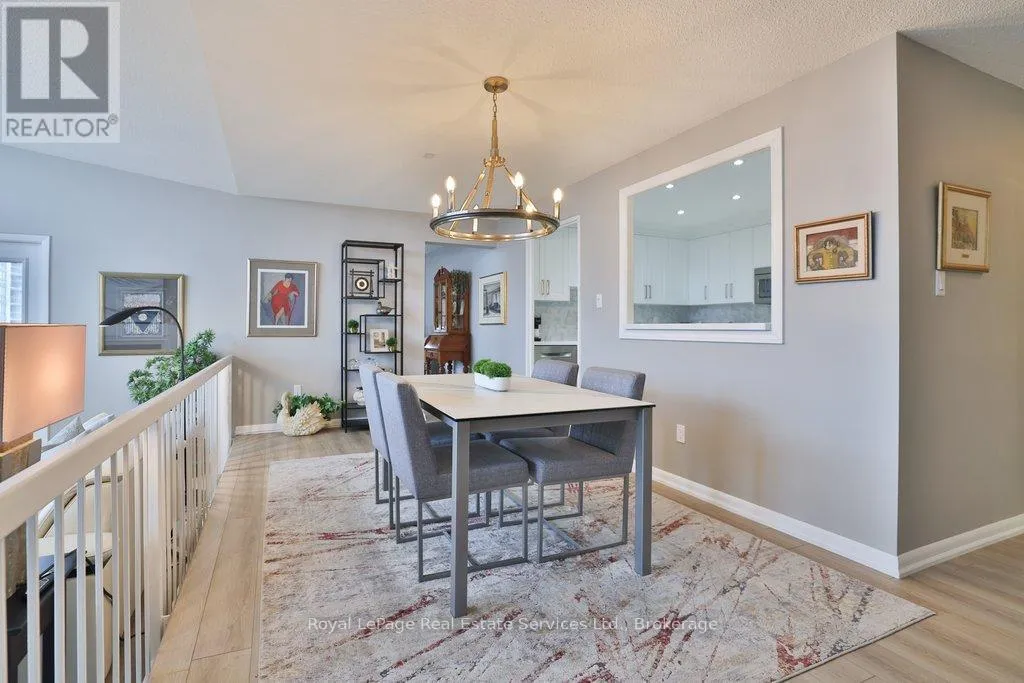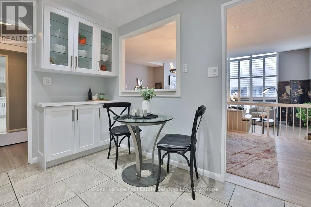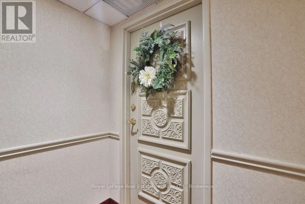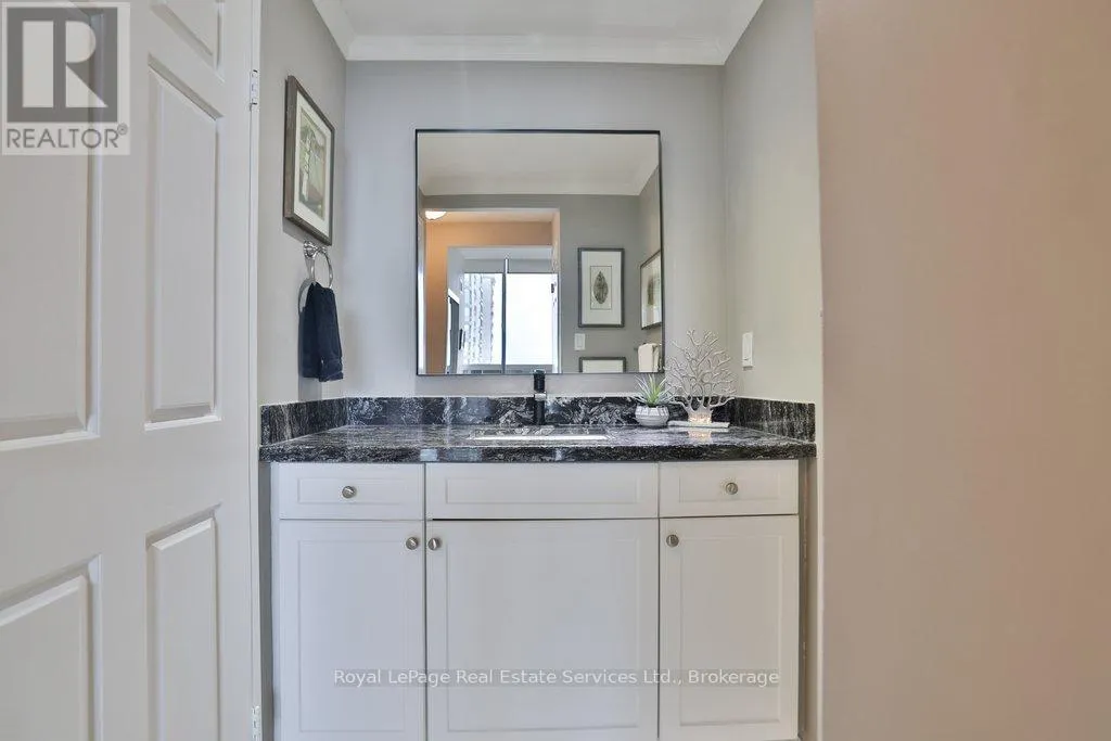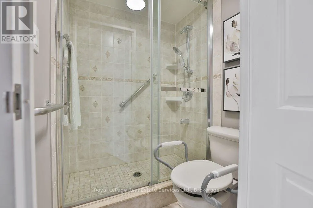 Cross Streets: Lakeshore & Bronte. ** Directions: Lakeshore-Bronte-Marine. Corner penthouse with east & south lakeviews in the highly sought after Ennisclare on the Lake. 1600sqft of renovated space, 2 bed + proper den, and 2 full bathrooms. 2 parking spots & locker. 3 walkouts to a large balcony! A great fit for those looking to downsize without compromising on space. Not only is the unit a turnkey home, Ennisclare on the Lake offers an active lifestyle, with like-minded neighbours, easy access to the lake, marina, community centre and downtown Bronte. Enjoy fantastic restaurants, shopping & recreation at your fingertips. With an enviable range of amenities including indoor pool, poolside lounge, party room, gym, billiards room, golf practice room, outdoor tennis & more! Spacious foyer welcomes you to the unit with 2 double coat closets & single storage closet, leading to the modern kitchen. Updated kitchen with stainless steel appliances, quartz counters & custom cabinets opens to dining room & sunken living room. The living room boasts vaulted ceilings, electric fireplace, California shutters, walkout to large balcony with lakeviews. Adjacent proper den with walkout & lakeviews! Expansive primary bedroom with large closet space, walkout & 3pc ensuite. Spacious 2nd bedroom, full bathroom, and separate laundry room. Everything you could need! Perfect! Improvements include but are not limited to kitchen reno (new cabinets, stainless steel appliances, counters) ('23) front hallway closet doors & flooring ('23), solar control film (east facing living rm windows & den window) ('23), shower door (2022), electric fireplace ('22), bathroom mirrors (2022), premium vinyl flooring (2021) (id:27476)
