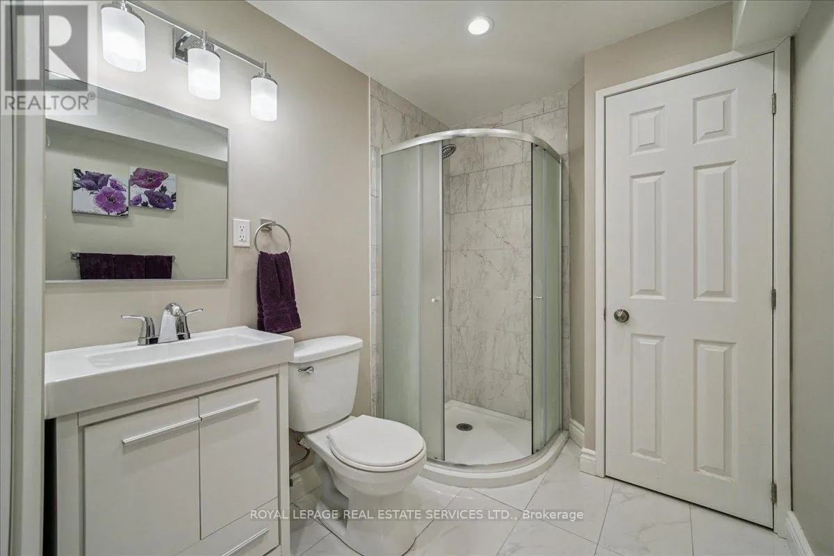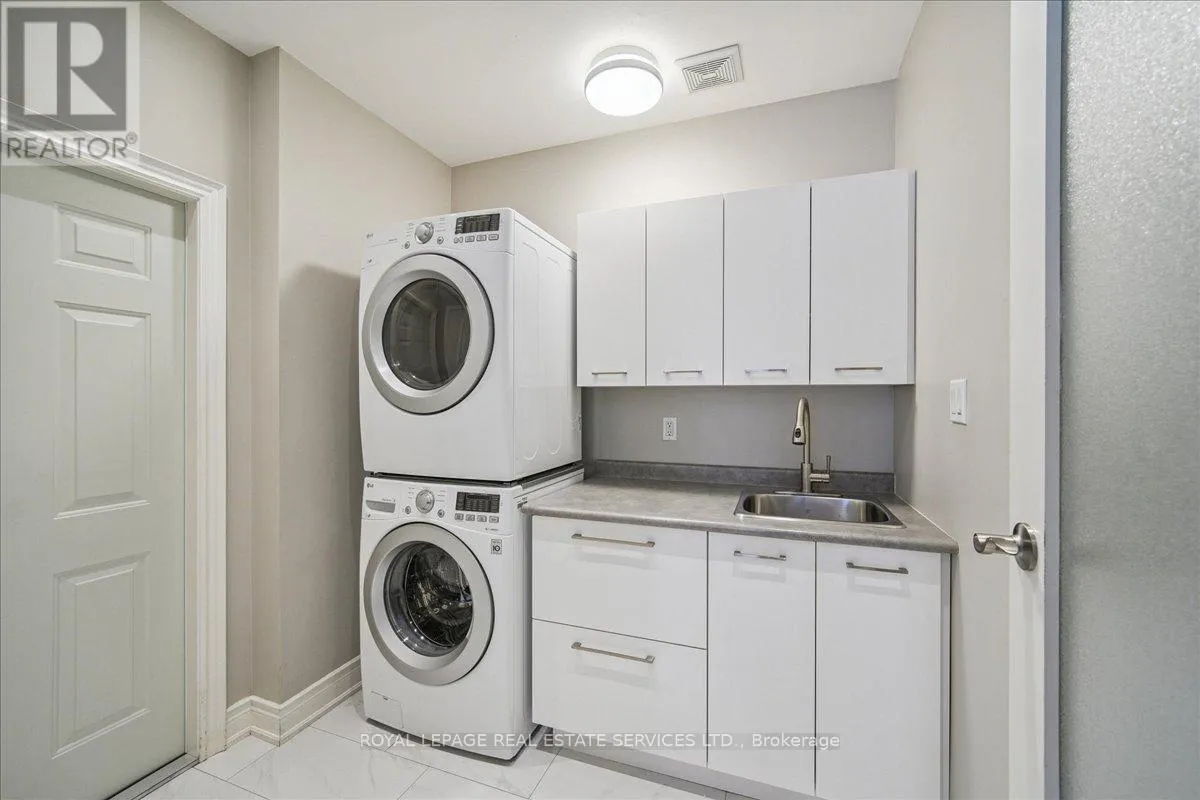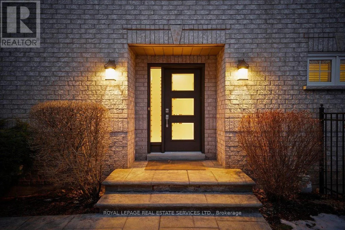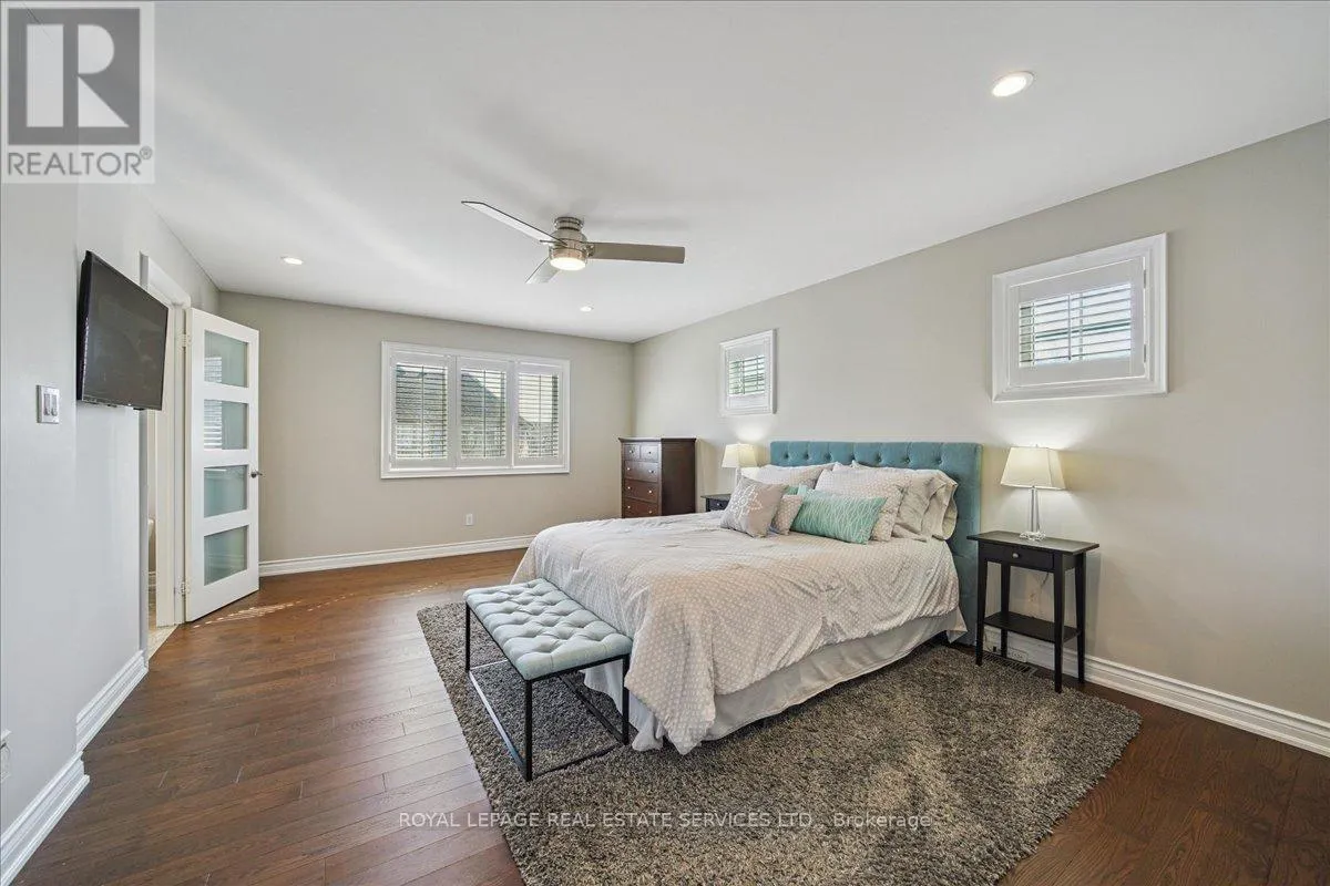 Fourth Line & Westoak Trails Blvd This exceptional freehold end-unit townhome lives like a semi-detached and sits on a rare oversized pie-shaped lot framed by mature trees, offering remarkable outdoor space seldom found in this style of home. Complete with a double car garage and a driveway accommodating up to four vehicles, the property combines space, privacy, and convenience. Designed with 3 bedrooms and 3+1 bathrooms, the home features a bright open-concept layout ideal for both entertaining and everyday living, with hardwood flooring throughout. The main level showcases spacious living and dining areas filled with natural light, pot lights throughout, and a gas fireplace with a classic white mantel and wall-mounted TV above. The designer kitchen, renovated in 2018, features custom cabinetry, quartz countertops, and a large peninsula with an undermount sink and breakfast bar seating beneath modern pendant lighting. Premium stainless steel KitchenAid appliances include a refrigerator, induction range, custom panel dishwasher, and sleek range hood, complemented by a stylish tile backsplash and built-in wine storage with glass display cabinets. A convenient laundry room with cabinetry, laundry sink, and inside access to the double car garage completes the main level. Upstairs, three spacious bedrooms include a beautiful primary retreat with a spa-inspired 5-piece ensuite featuring a freestanding soaker tub, oversized glass walk-in shower with rainfall showerhead, and double vanity with quartz countertop. A well-appointed 4-piece bathroom serves the additional bedrooms. The finished lower level offers a large recreation room with pot lights, a 3-piece bathroom, and generous storage. Outside, the expansive pie-shaped backyard features a patterned concrete patio and walkway, gas BBQ hookup, and custom garden shed. Ideally located just moments from scenic trails along 16 Mile Creek and within walking distance to both public and Catholic elementary schools. (id:27476)